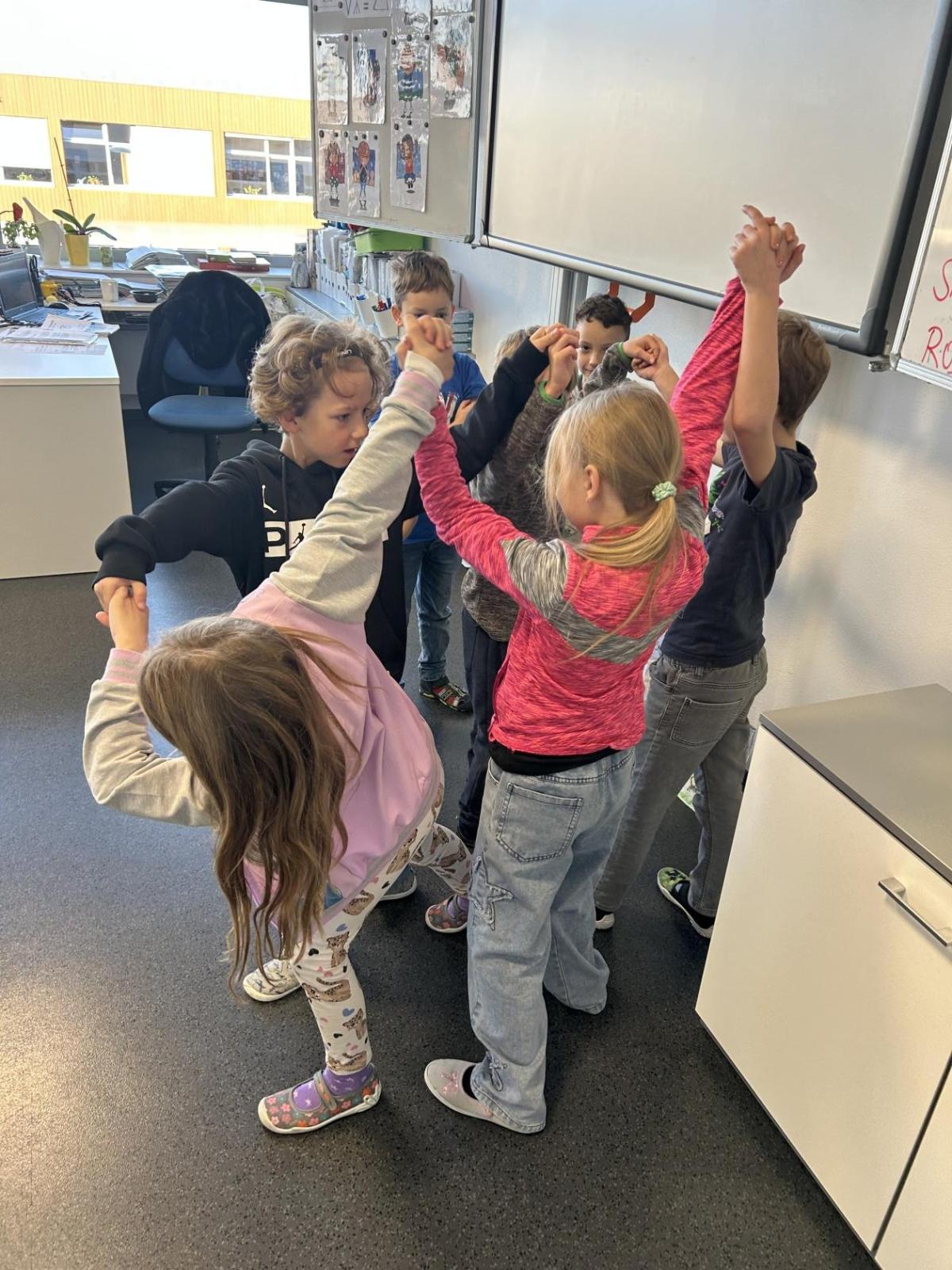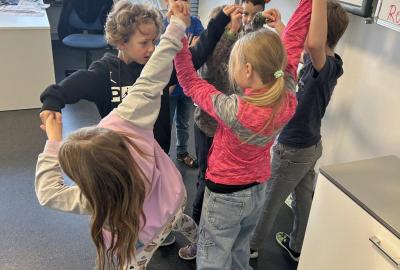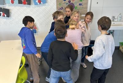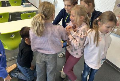 Fungování v kolektivu jsme si pak vyzkoušeli v aktivitě „Uzel“. Část dětí měla za úkol se zaplést. Úkolem dětí - rozplétačů - bylo uzle společně rozmotat. Aktivitu jsme ukončili závěrem, že bez spolupráce to nejde, někdy musíme ustoupit a není důležité být vždy nejrychlejší, ale být ohleduplný k ostatním.