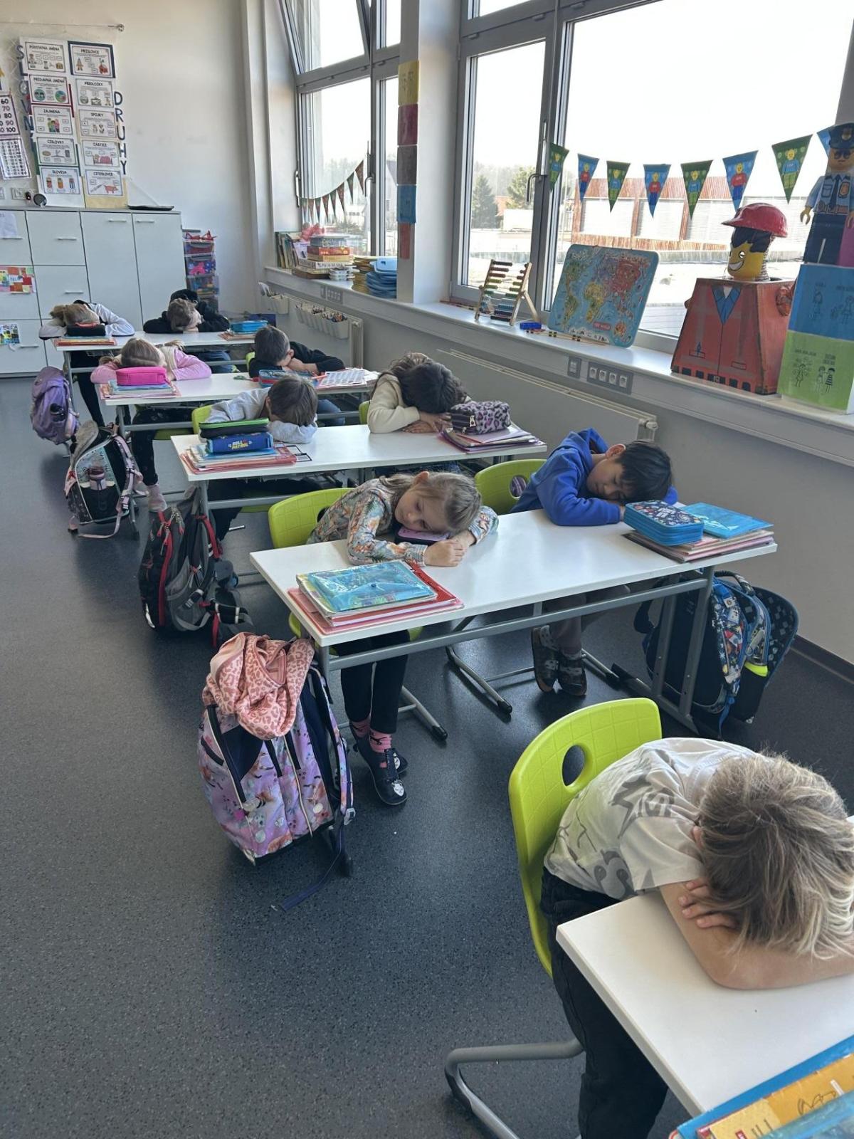 Na závěr jsme položili hlavičky na stůl, zavřeli oči a představili si přátelskou třídu, kde se každý cítí bezpečně, přijatě a vítaně.