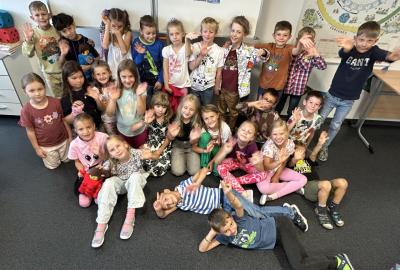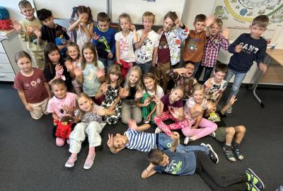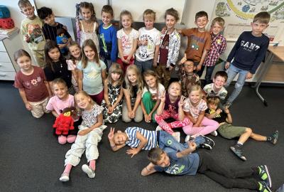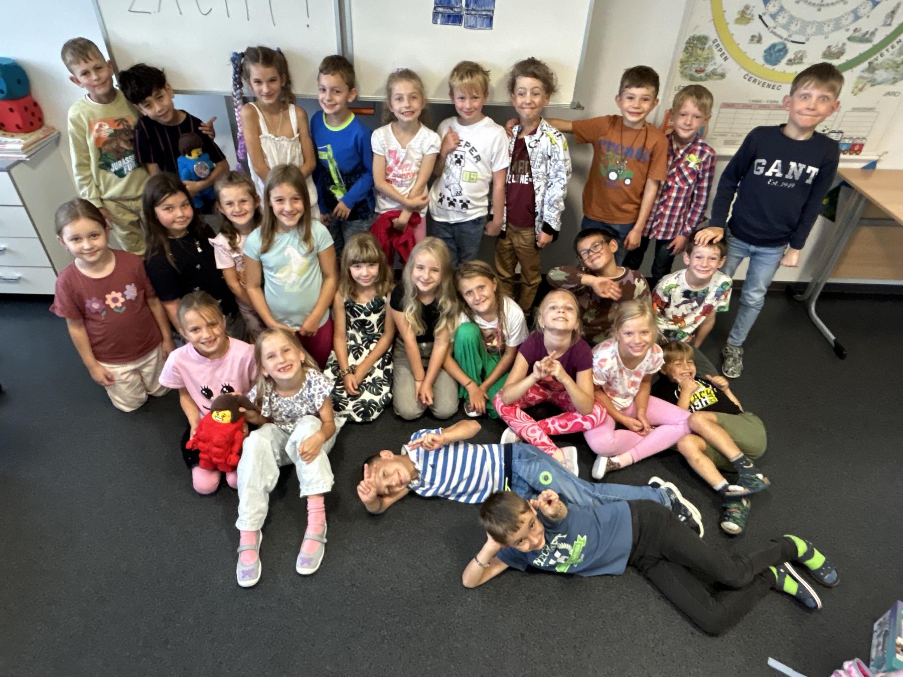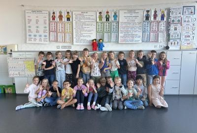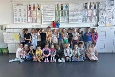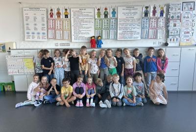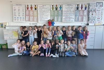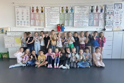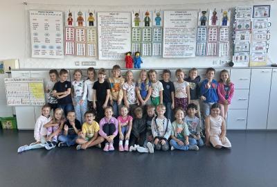Velkou novinkou je, že se k nám připojili dva noví spolužáci – Felix a Sofinka. Oba mezi nás krásně zapadli a dnes už je naše třída 2.A v plném složení: 27 dětí, dva maskoti a paní učitelky.