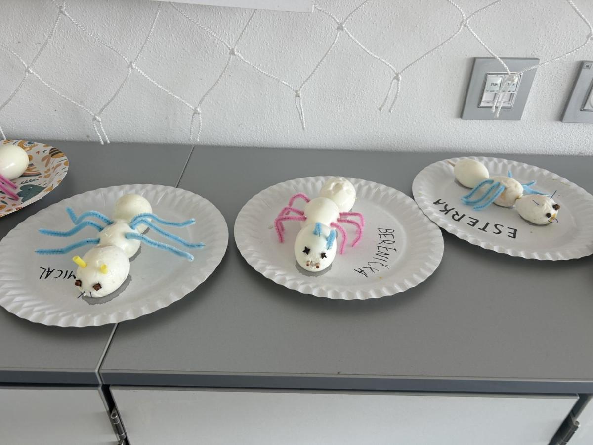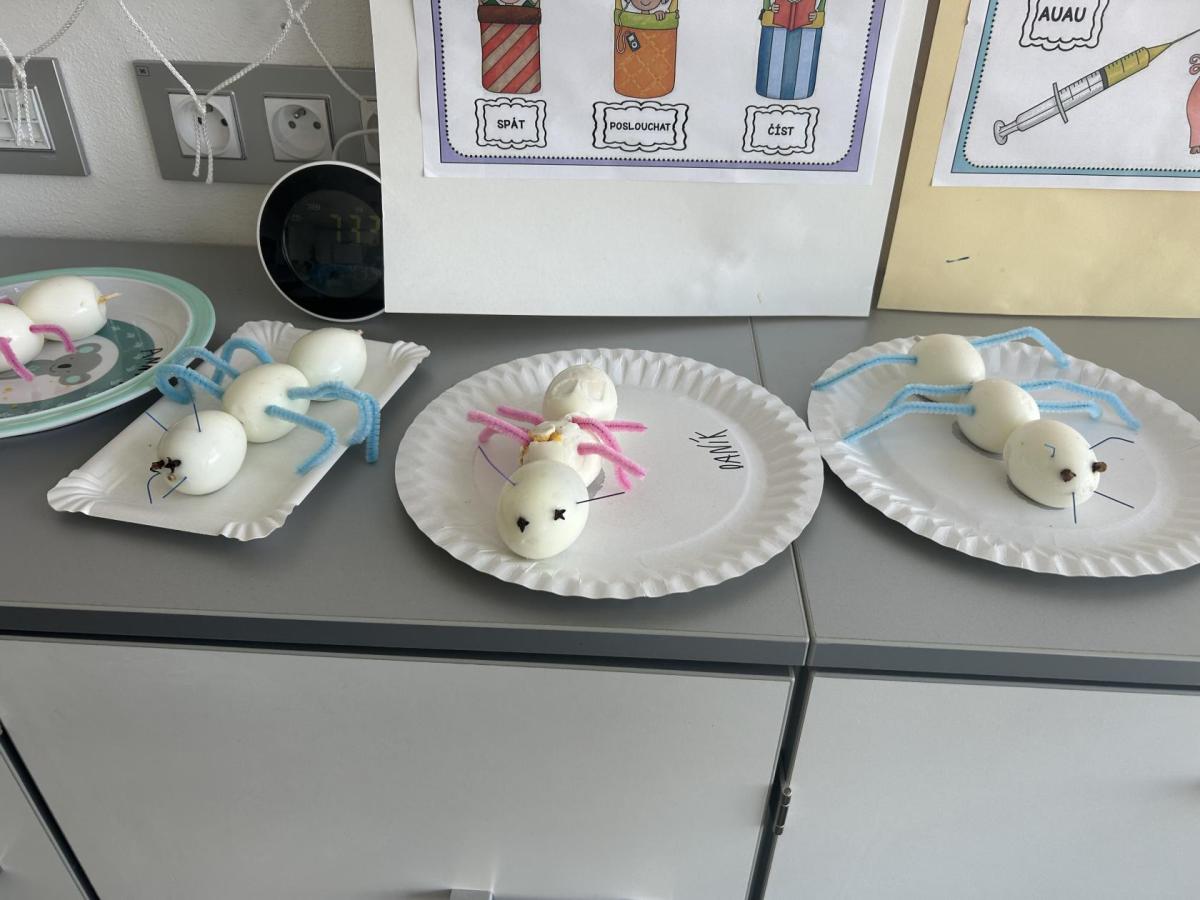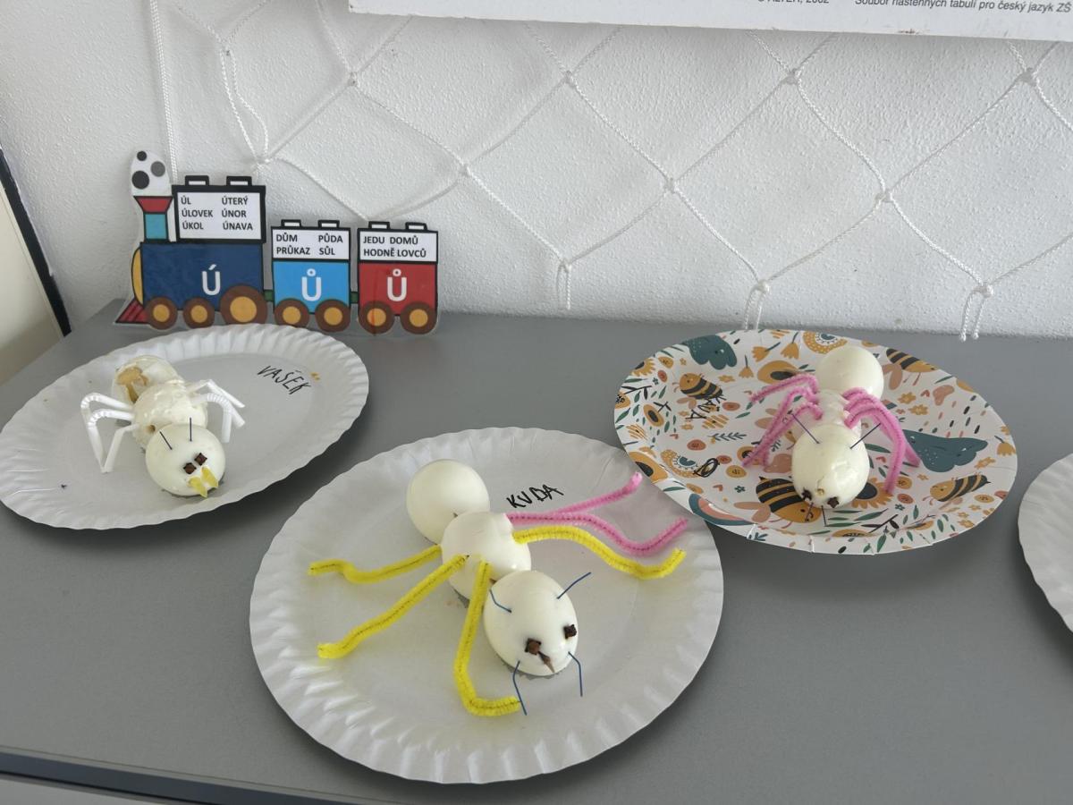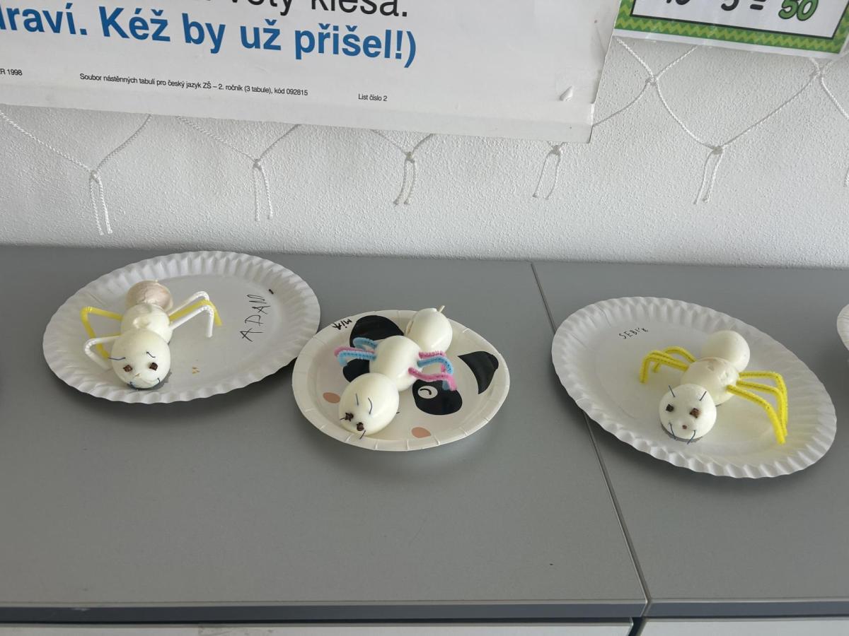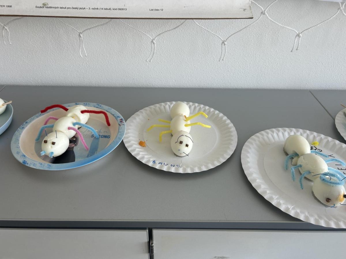 Novinky máme i mezi dospělými: angličtinu nás učí paní učitelka Zuzana Štambachová, na plavání chodíme i s paní učitelkou Ingrid Hubáček a vědecké projekty nás opět čekají s paní učitelkou Janou Hubovou. První projekt byl hned o mravencích – povídali jsme si o jejich životě v lese a nakonec jsme si vyrobili vlastního mravenečka ze tří vařených vajíček. Z vajíček jsme si pak doma mohli připravit i vajíčkovou pomazánku podle přiloženého receptu. ??