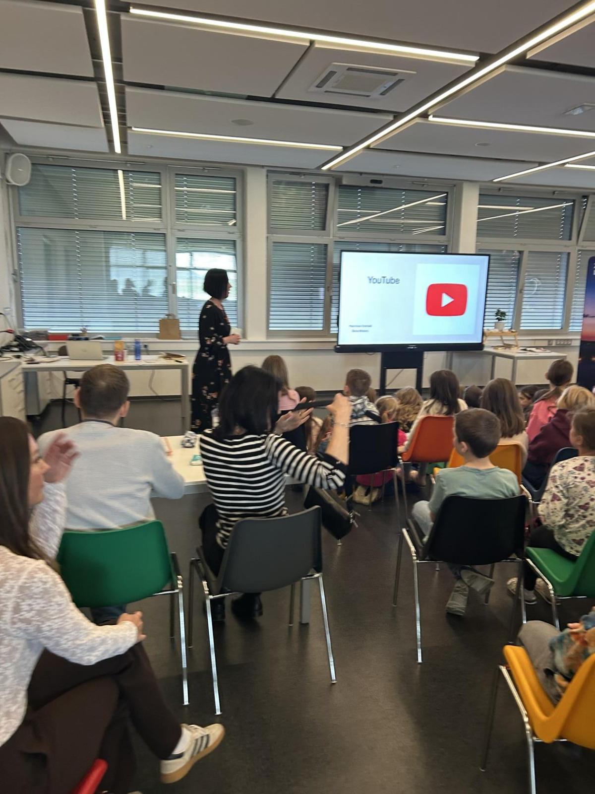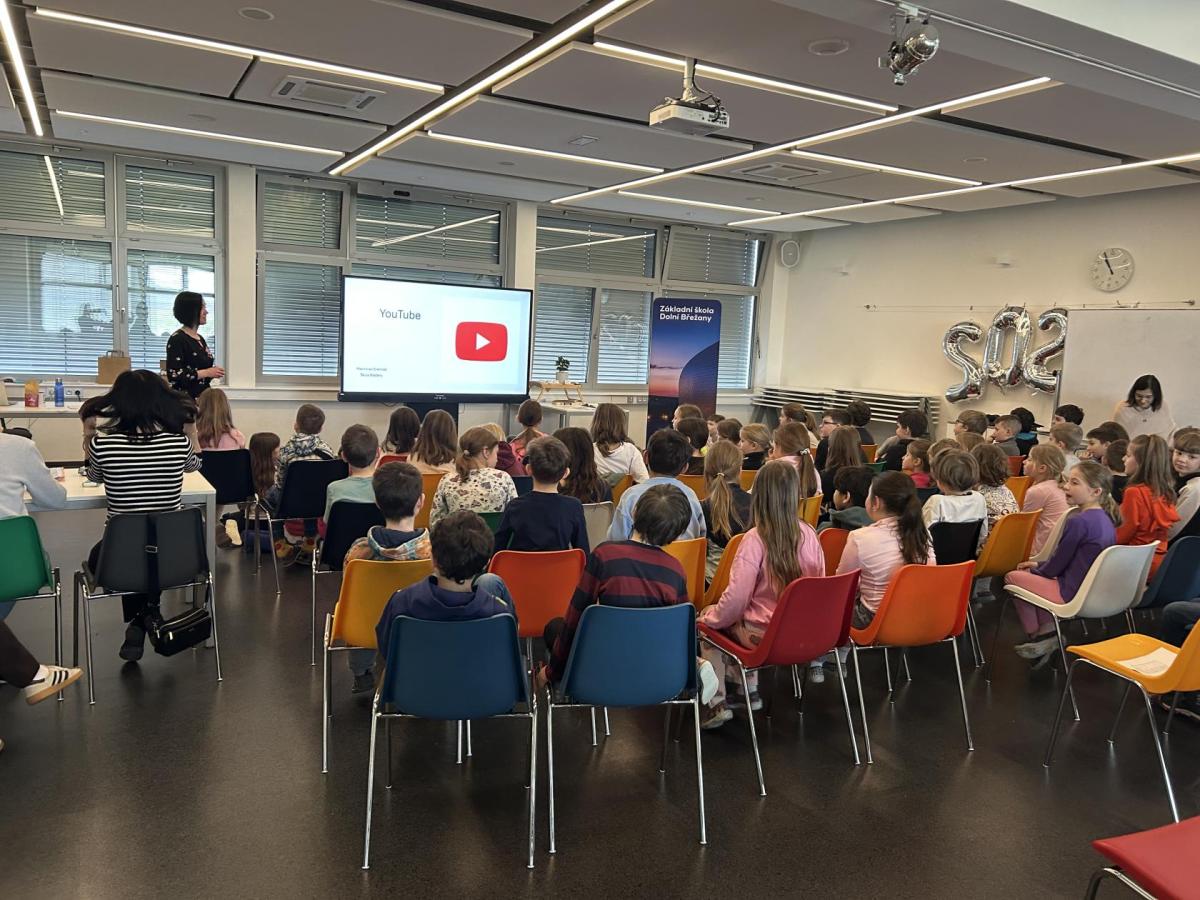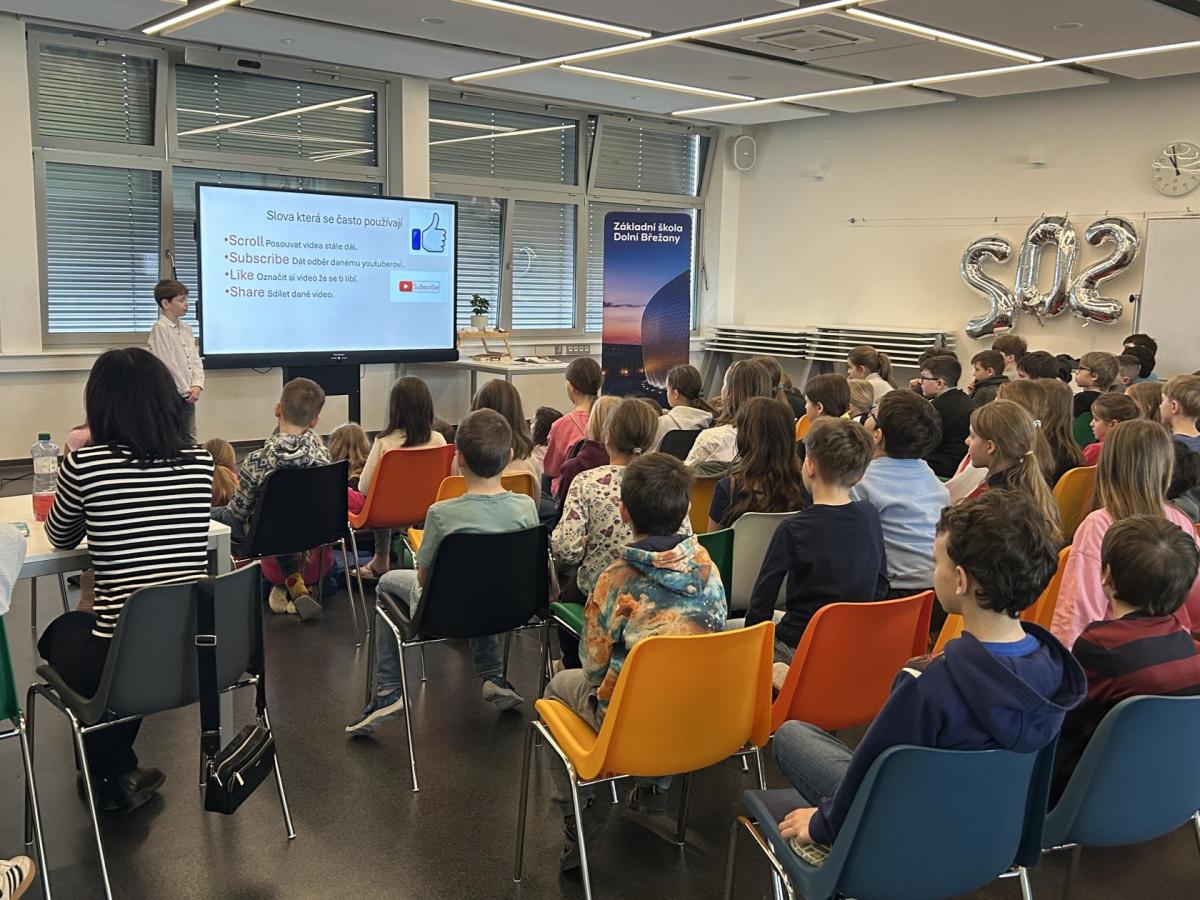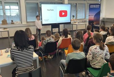 První prezentace byla věnovaná YouTube. Dozvěděli jsme se, jak tato platforma funguje, co znamená sledovanost a jak vznikají videa, zejména ta herní, která jsou mezi dětmi velmi oblíbená.