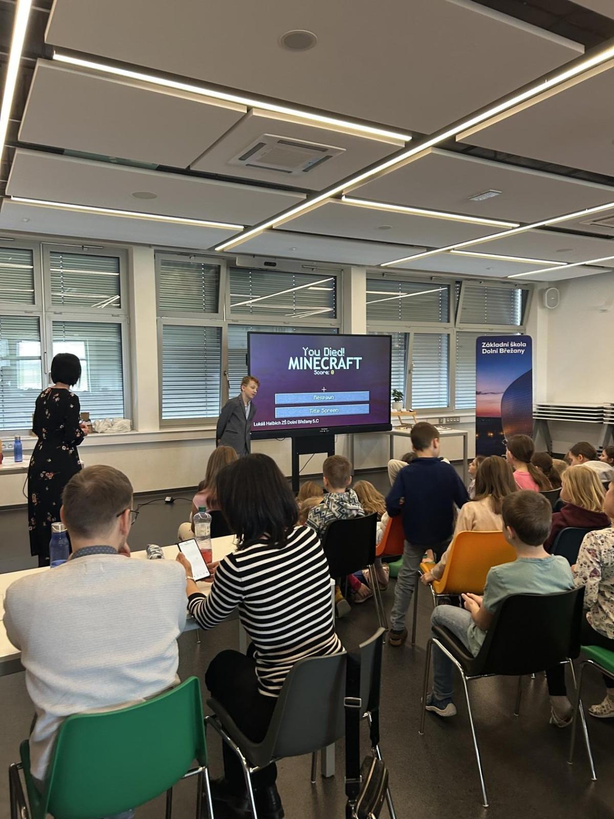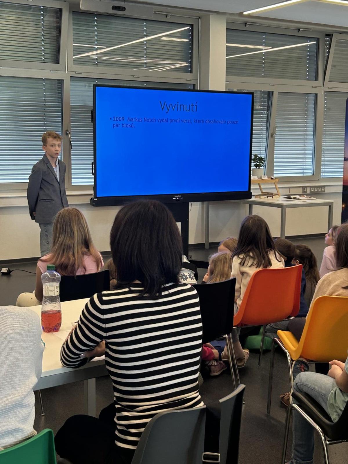 Druhé téma patřilo hře Minecraft. Děti se zaujetím sledovaly vysvětlení, jak hra funguje, jaké postavy se v ní objevují a co všechno v jejím světě lze zažít.