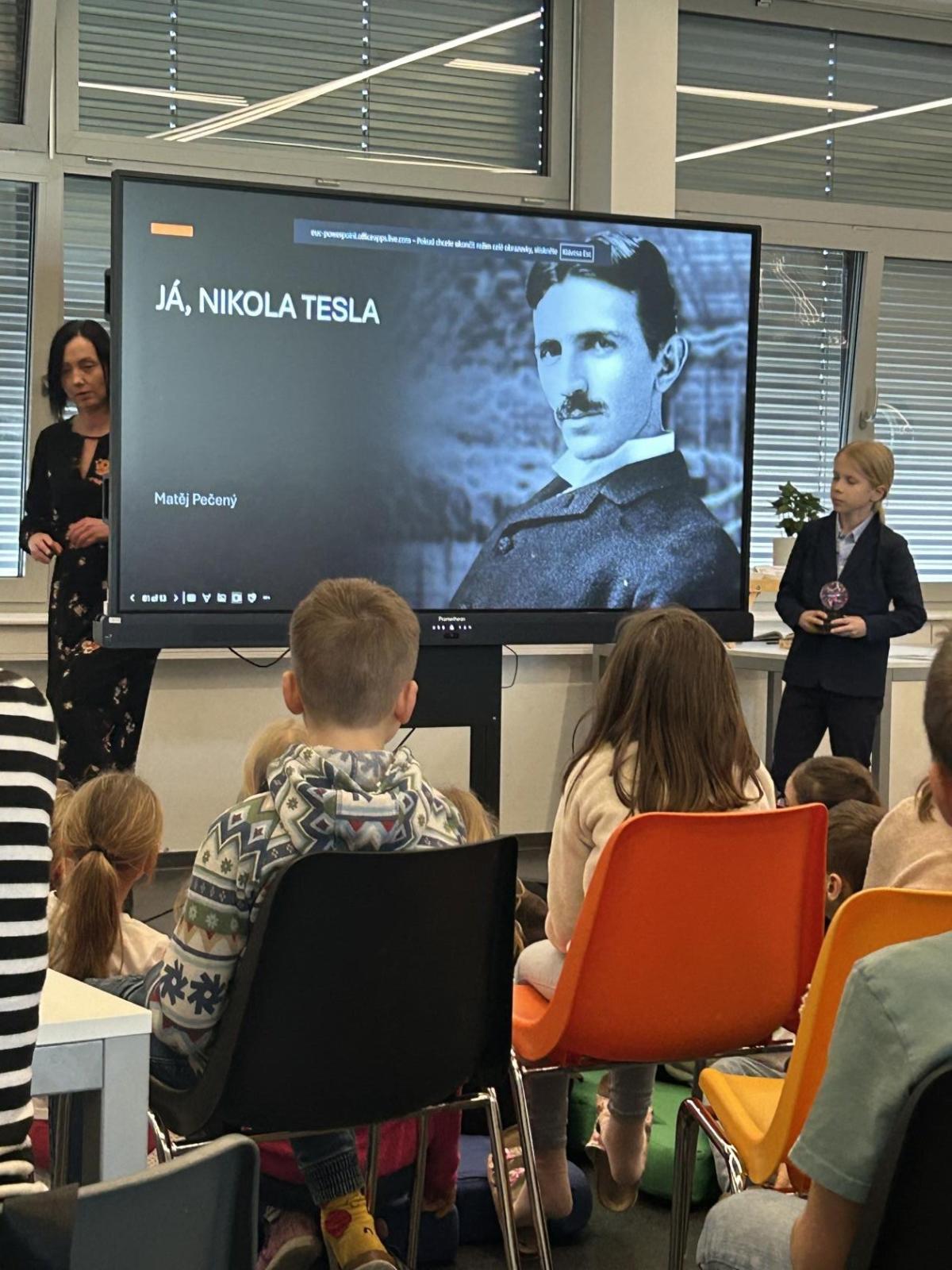 Třetí prezentace byla opravdu výjimečná. Chlapec si vybral známého vědce Nikolu Teslu a celou prezentaci pojal velmi originálně – mluvil, jako by byl přímo on sám. Vyprávěl o svém životě, objevech i o rozdílu mezi střídavým a stejnosměrným proudem. Na dotazy odpovídal pohotově a s velkým přehledem, čímž zaujal nejen děti, ale i dospělé.