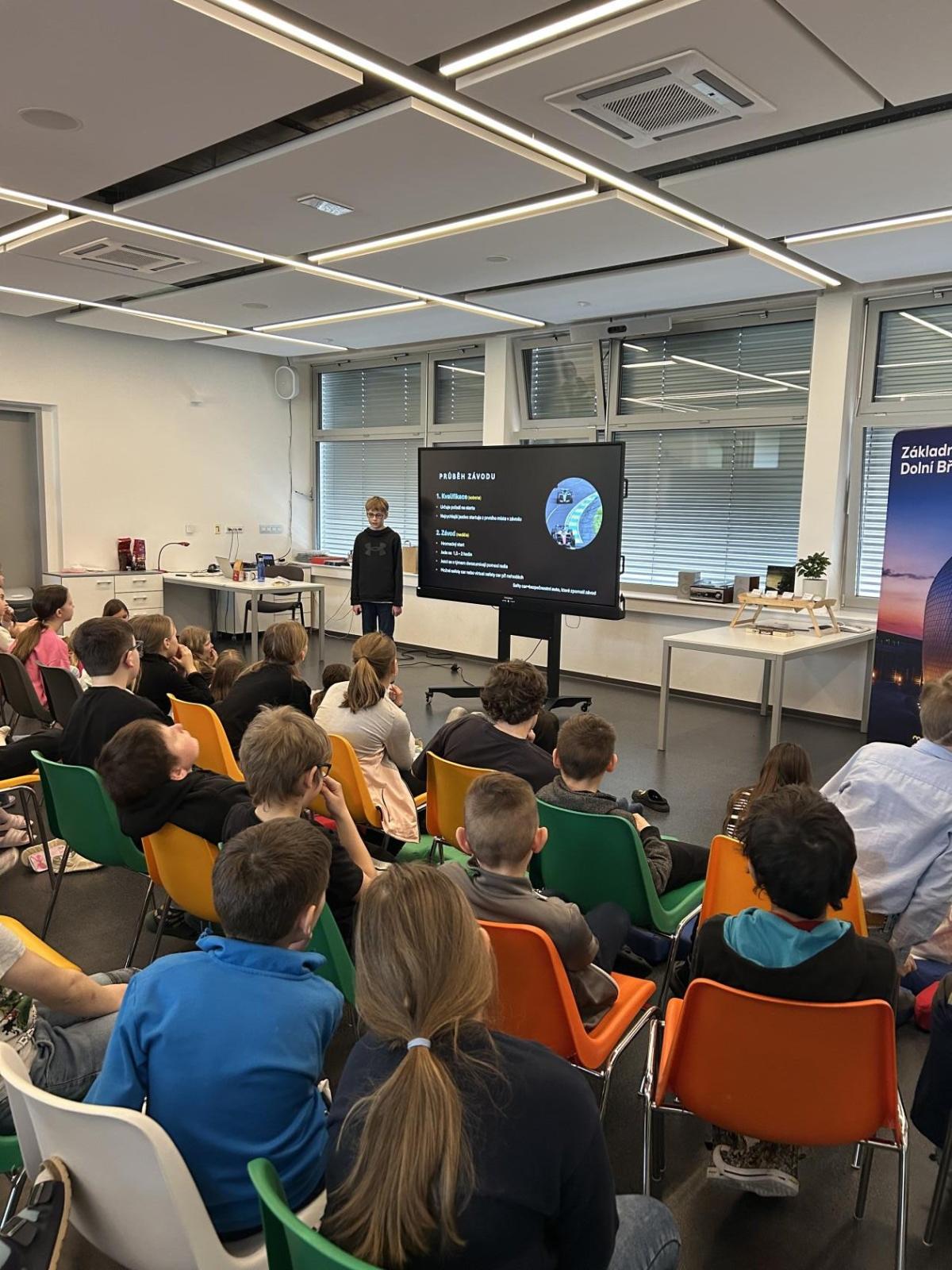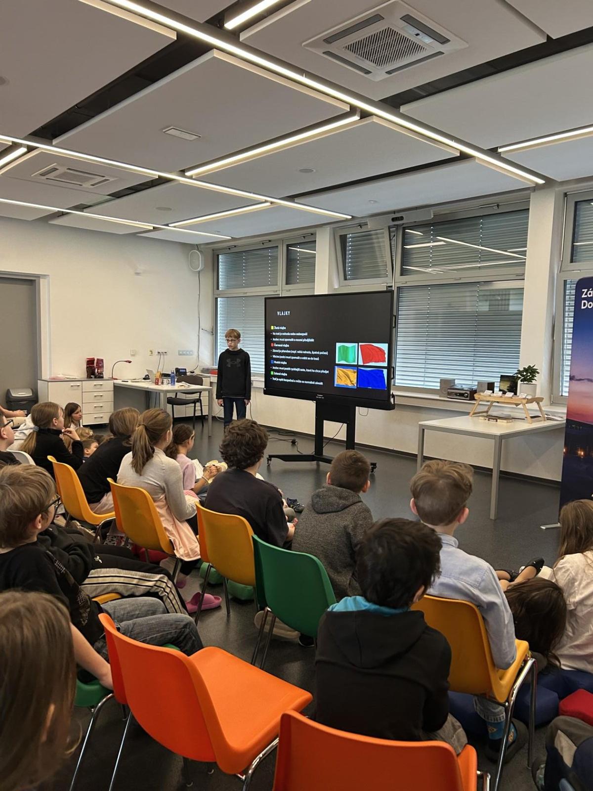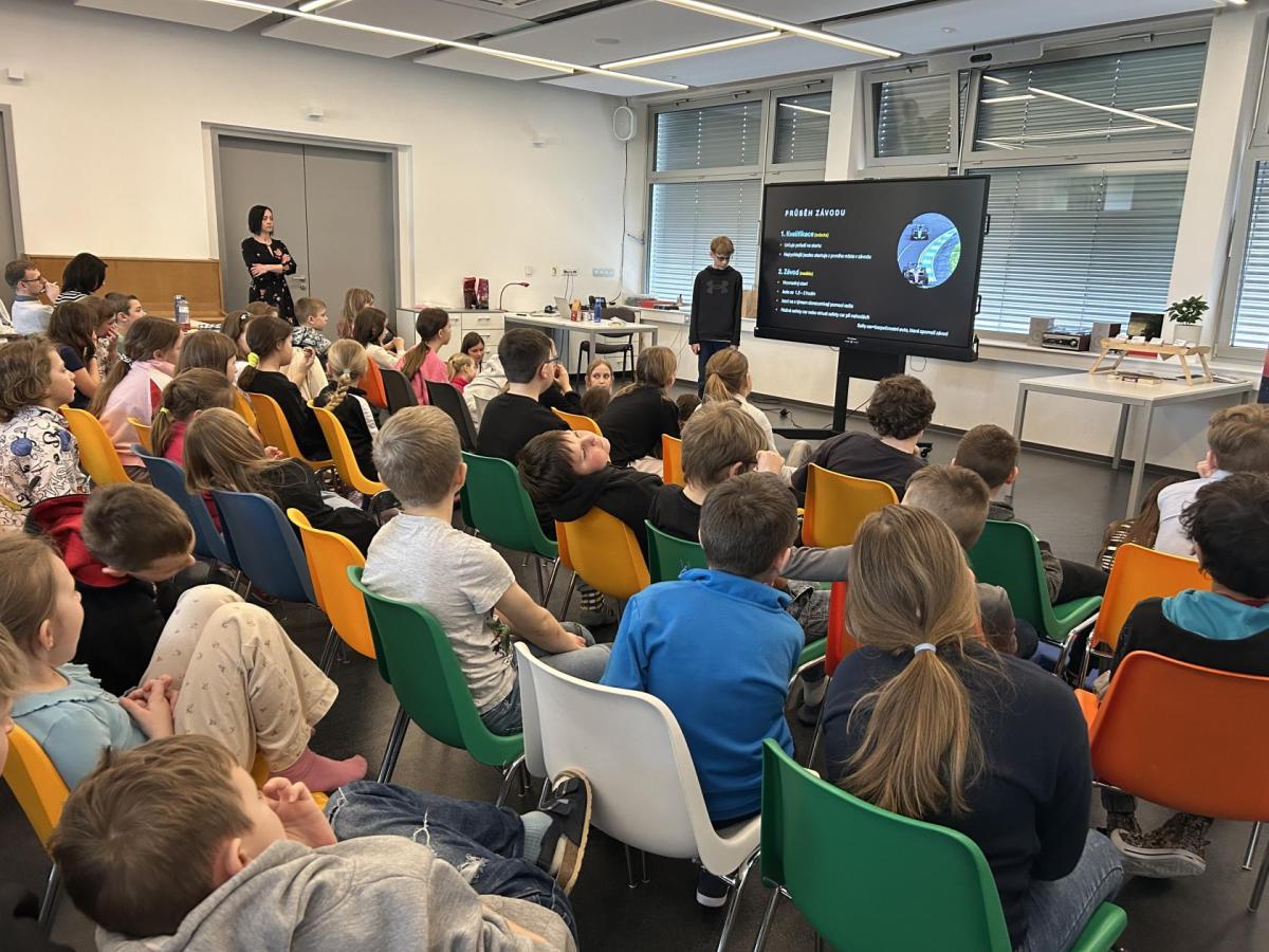 Vyrazili jsme se podívat na projektovou olympiádu starších žáků. Čekaly nás zajímavé prezentace na různá témata – od her až po vědu.