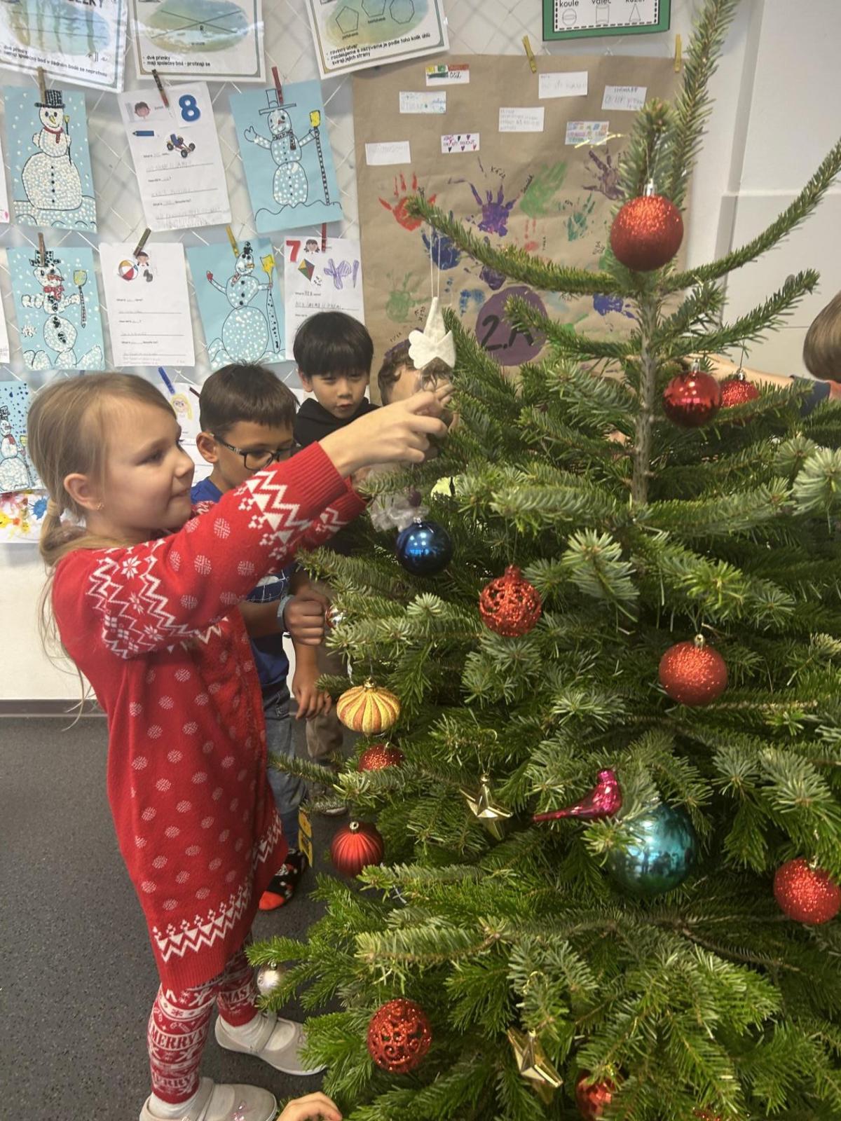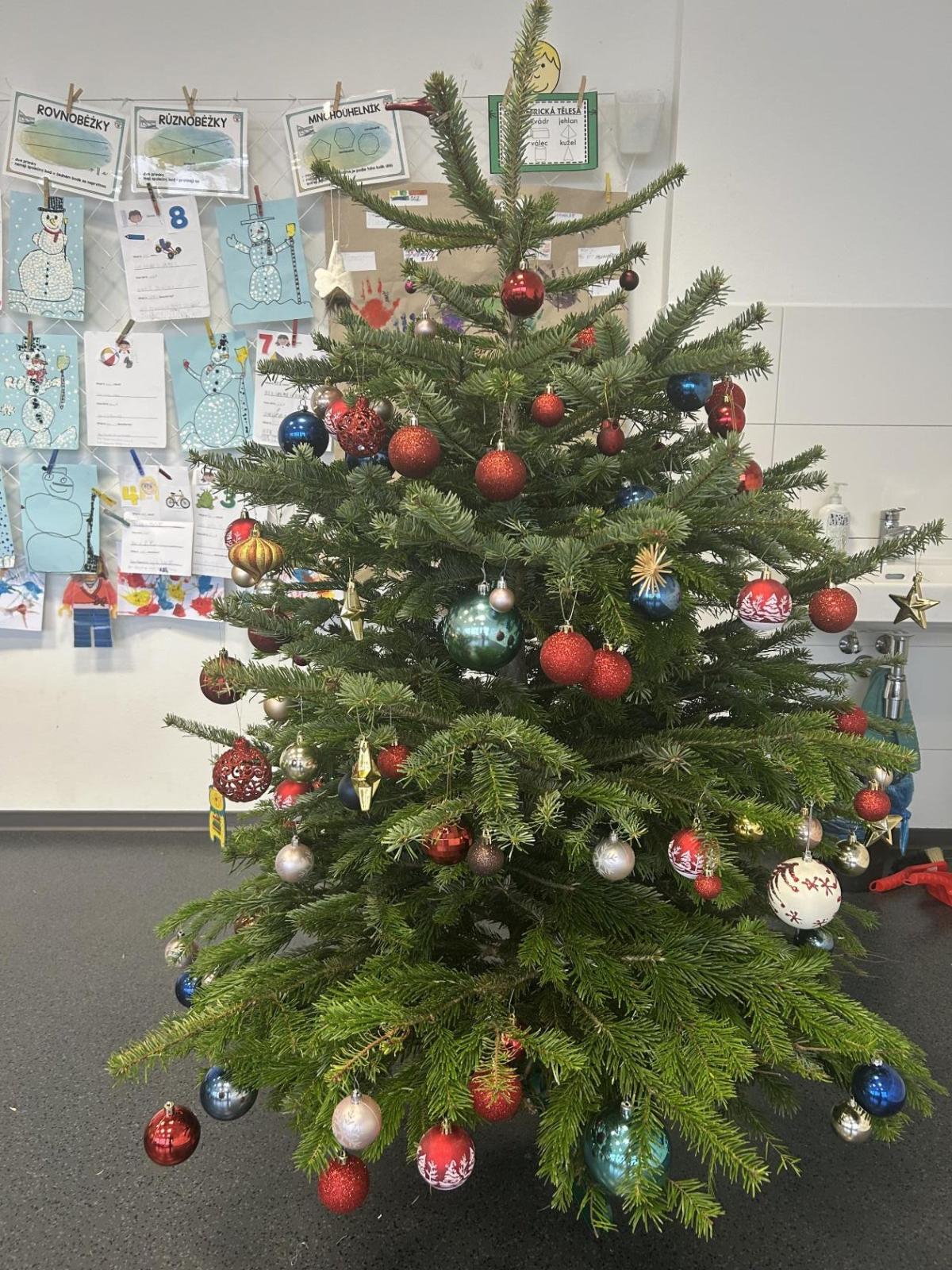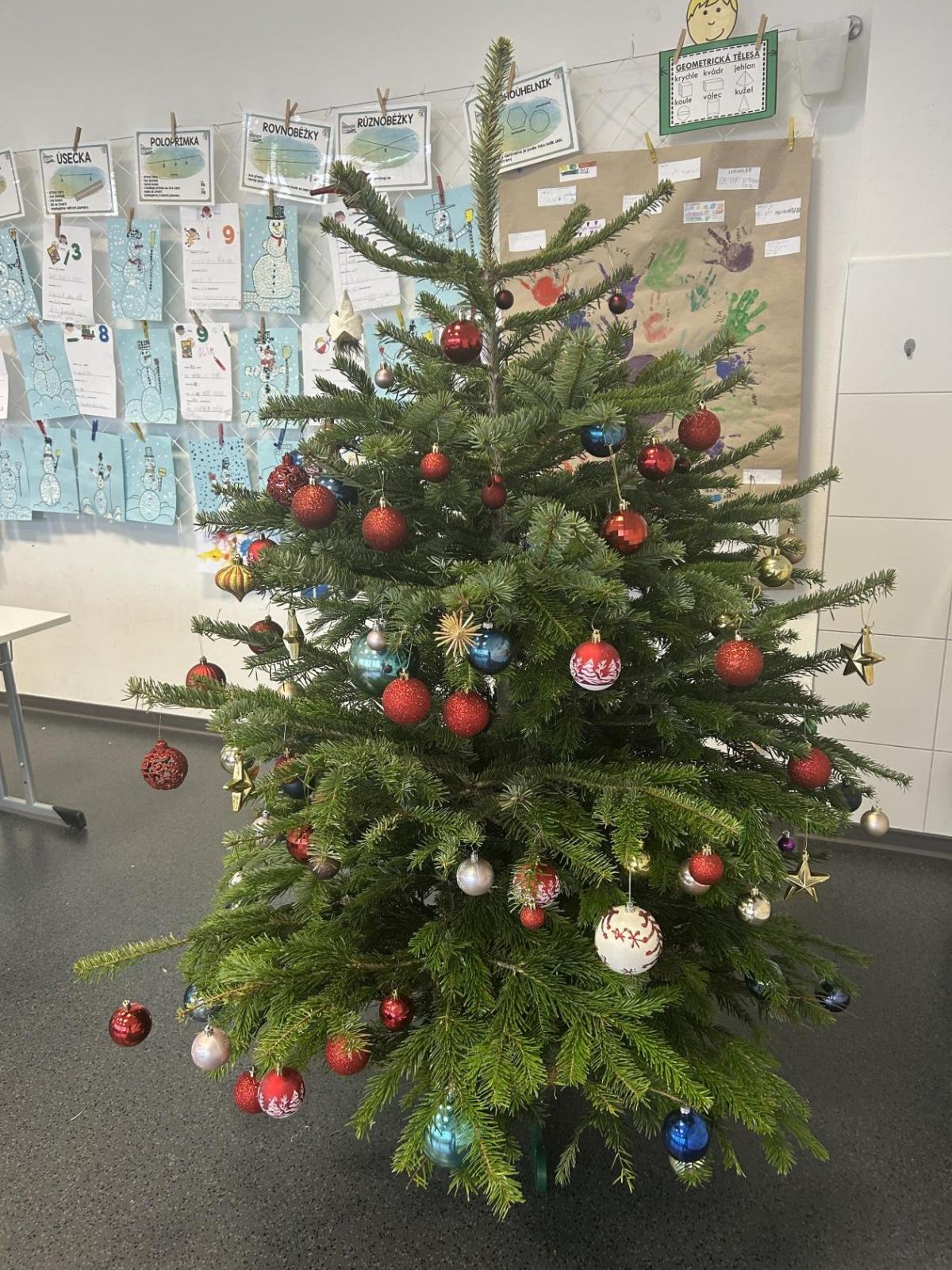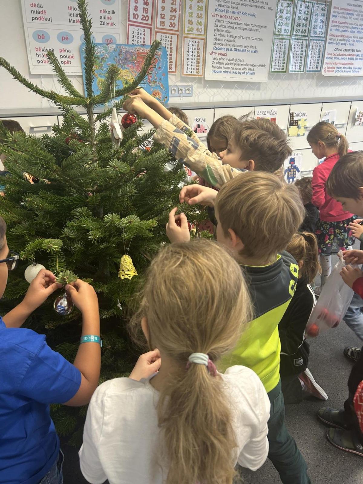 Ve škole nám pan školník usadil stromeček do stojánku. Poté přišla ta nejhezčí část – zdobení. Druháčci si přinesli vánoční ozdoby, společně si vyrobili papírový řetěz a paní učitelka přinesla bezdrátové barevné svíčky. Pak už u nás ve třídě svítil nádherně ozdobený vánoční stromek a hned bylo znát, že Vánoce se opravdu blíží.