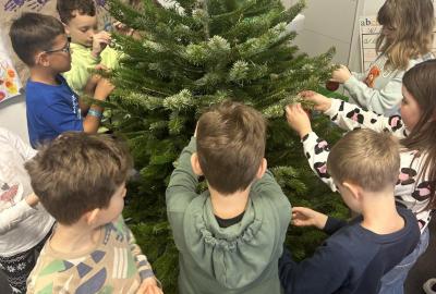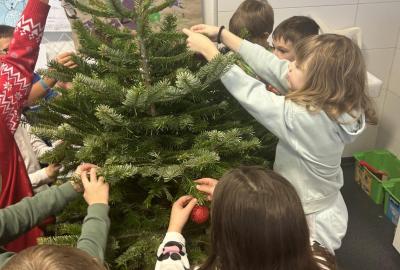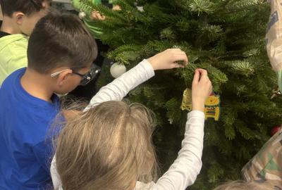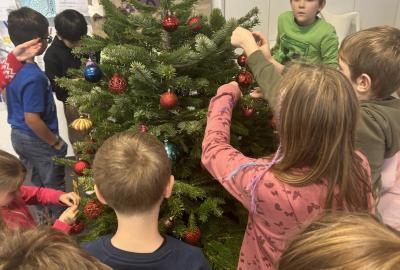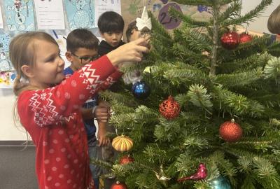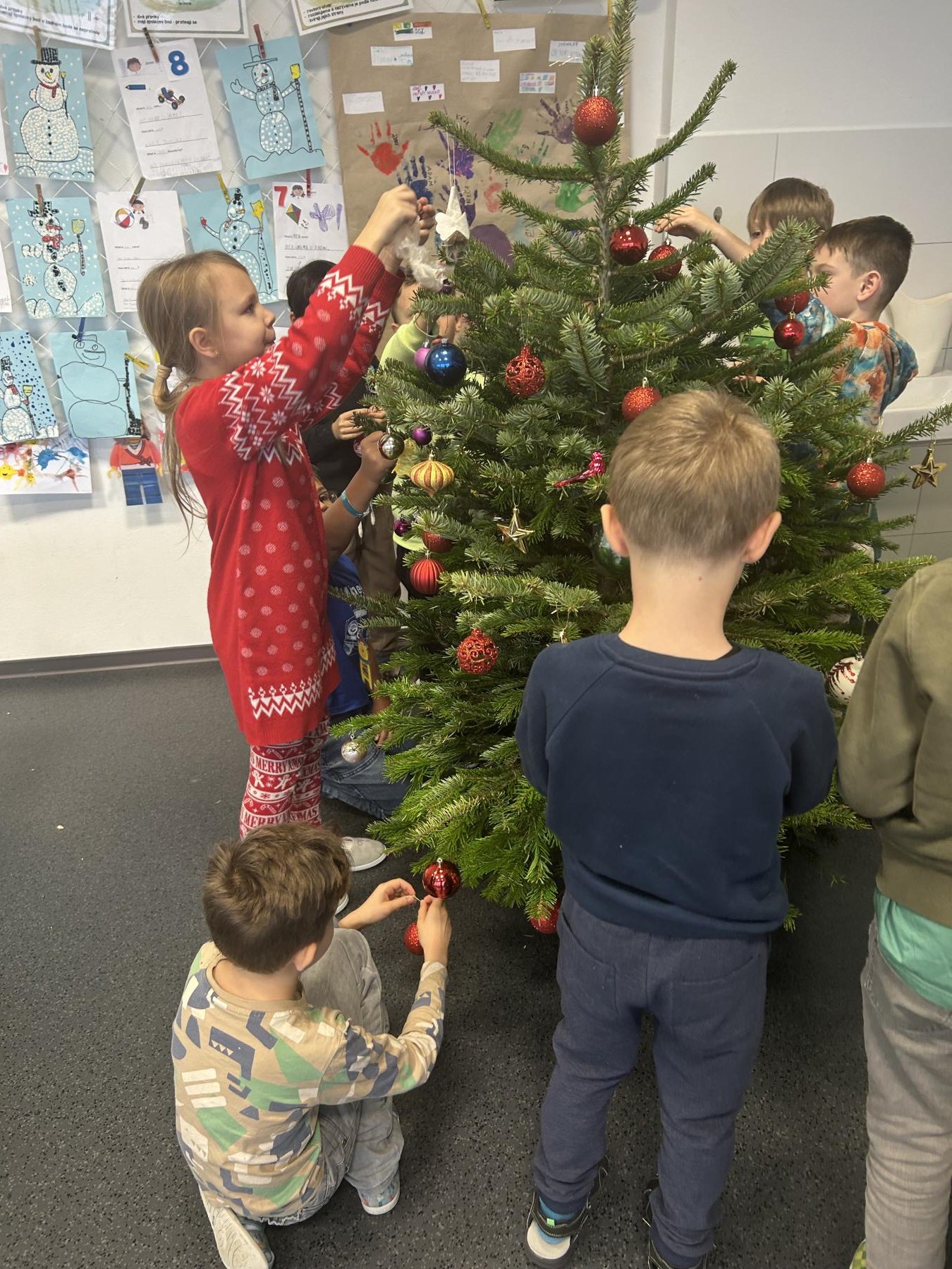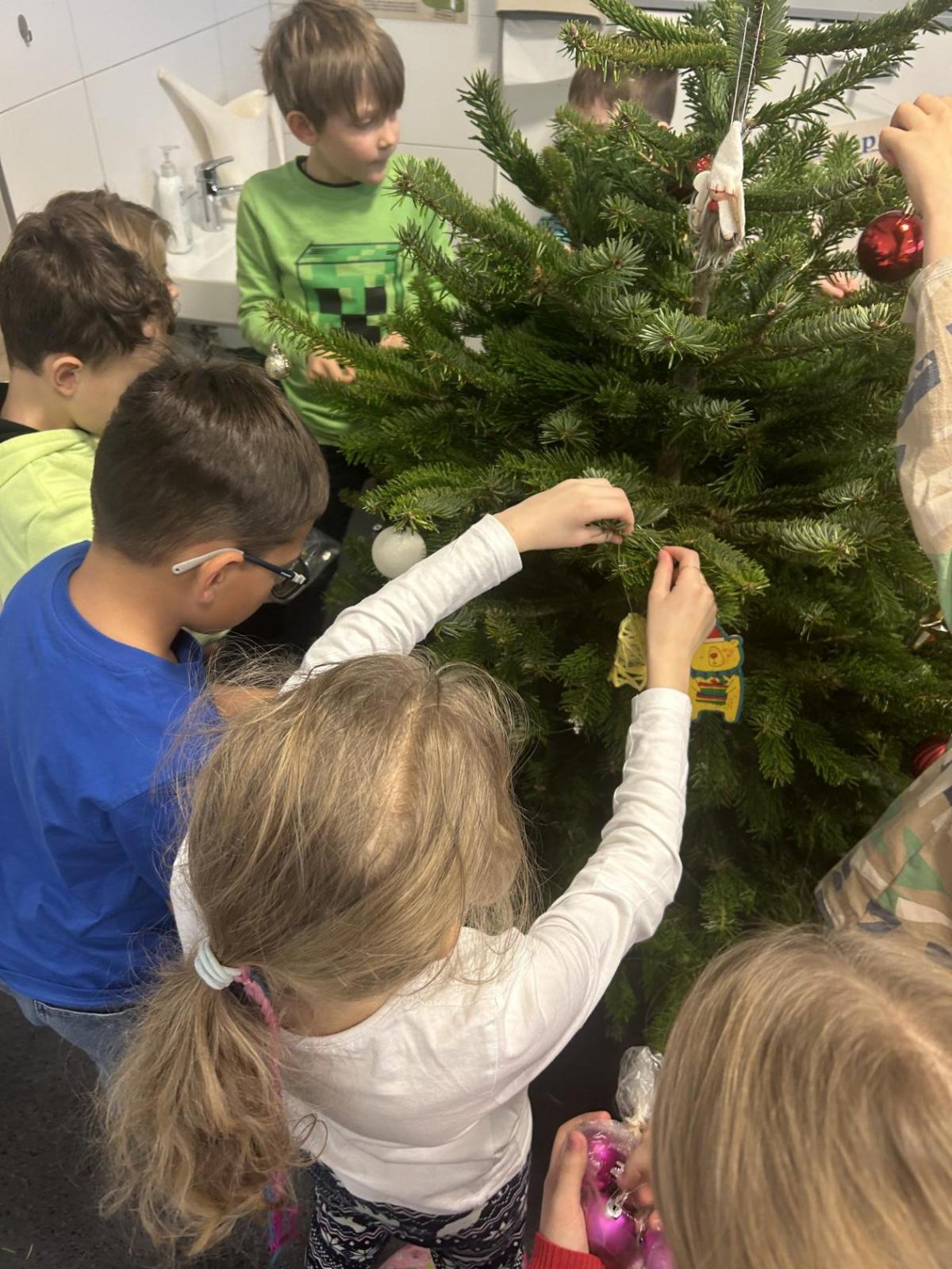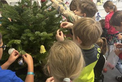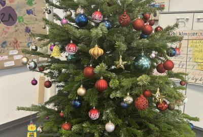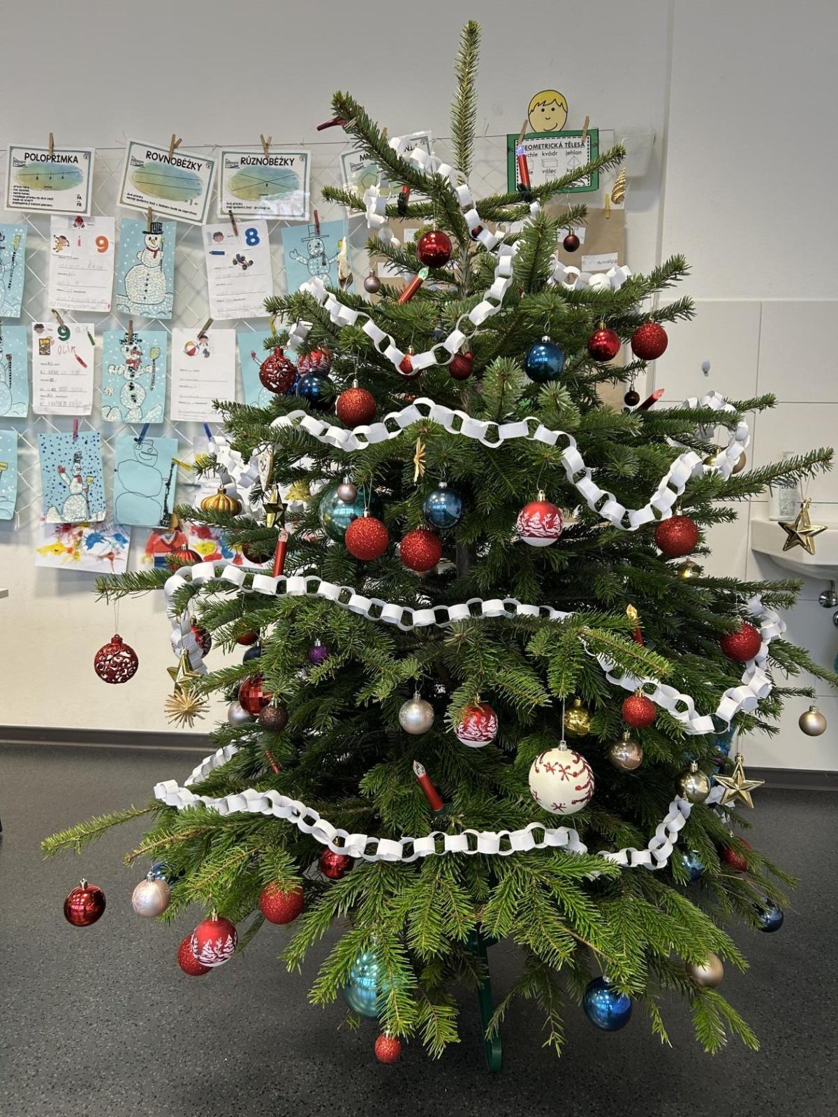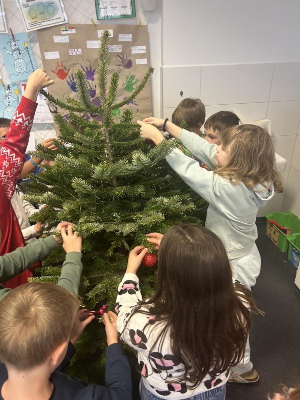 Ve škole nám pan školník usadil stromeček do stojánku. Poté přišla ta nejhezčí část – zdobení. Druháčci si přinesli vánoční ozdoby, společně si vyrobili papírový řetěz a paní učitelka přinesla bezdrátové barevné svíčky. Pak už u nás ve třídě svítil nádherně ozdobený vánoční stromek a hned bylo znát, že Vánoce se opravdu blíží.