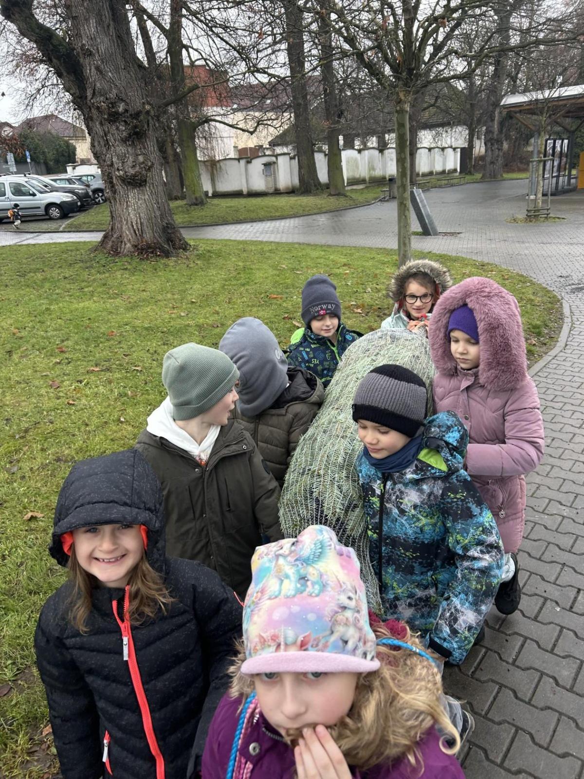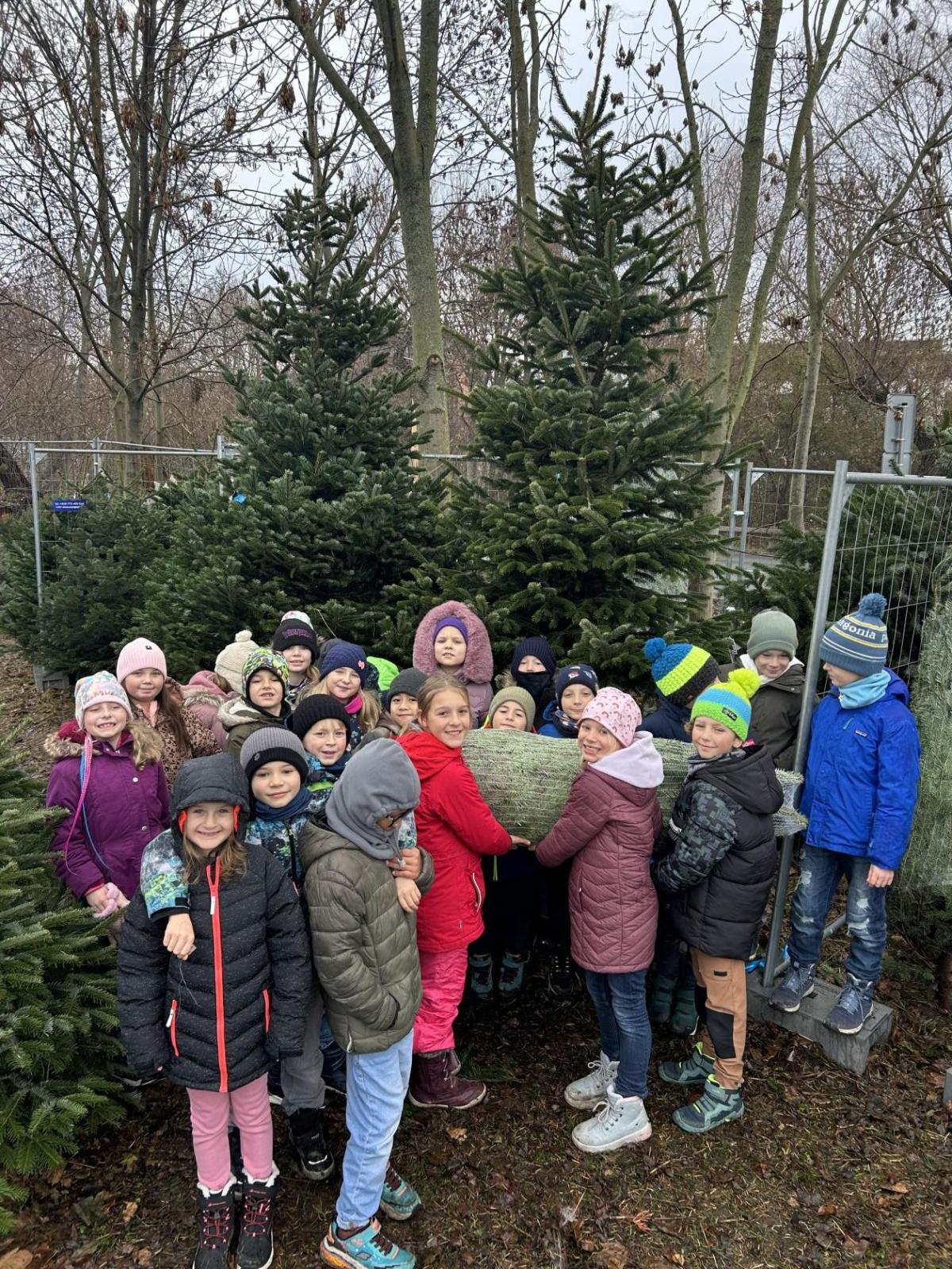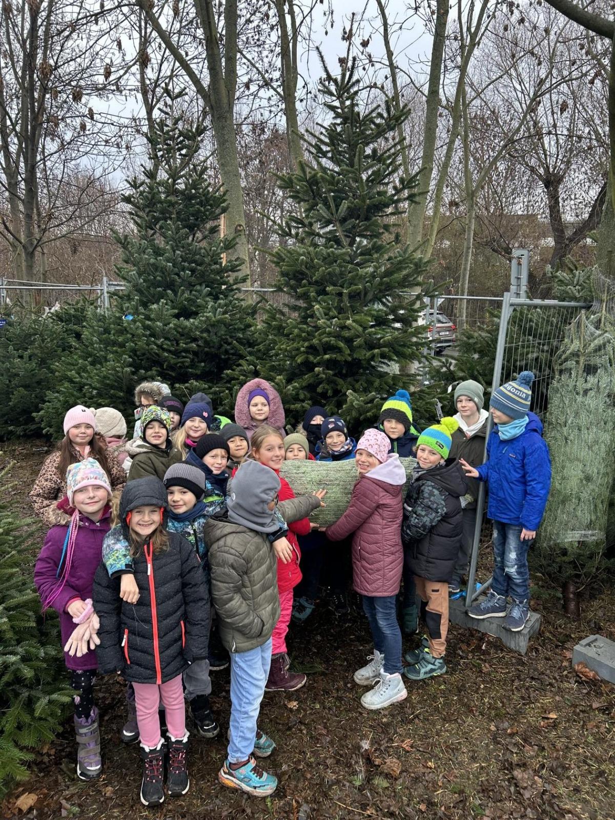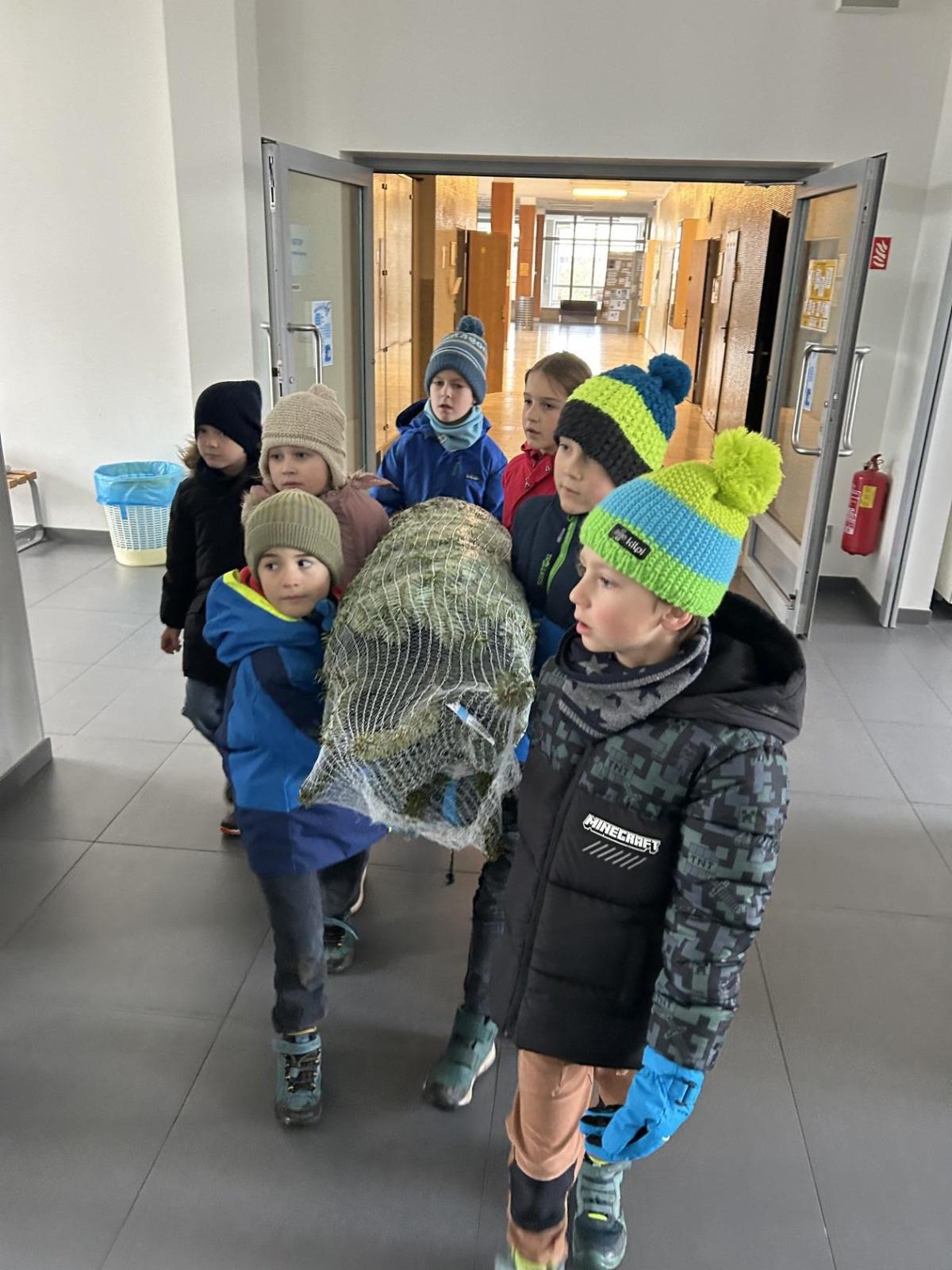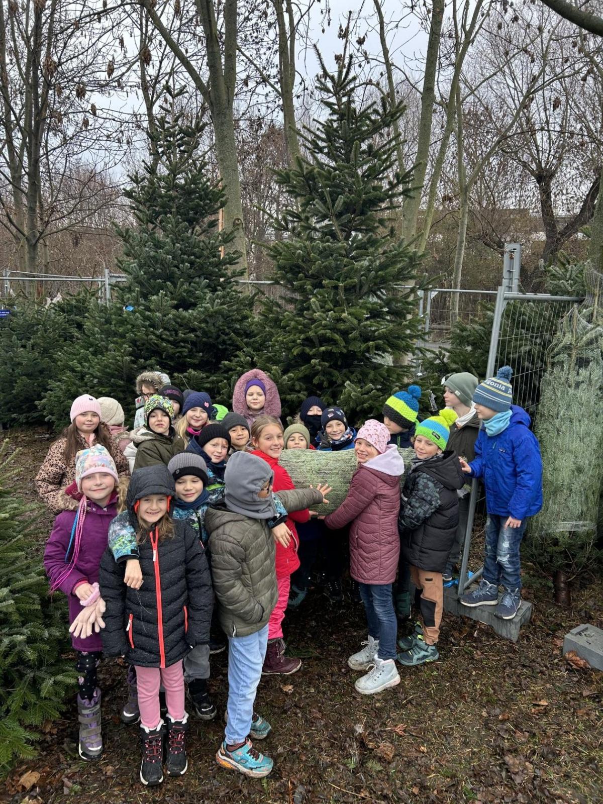 Pondělí 1. prosince jsme si s žáčky zpříjemnili procházkou po Dolních Břežanech, během které jsme se vydali pro náš třídní živý vánoční stromeček. U velmi milých prodejců, kteří nás přivítali úsměvem a malou čokoládkou pro každého, jsme si vybrali krásný, velký stromek. Jakmile byl zabalený, vyfotili jsme se v obležení dalších jehličnanů. Cestou zpět si děti ve skupinkách hrdě náš náklad a s nadšením nesly.