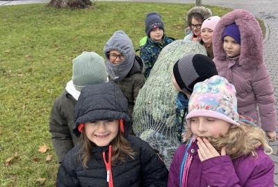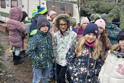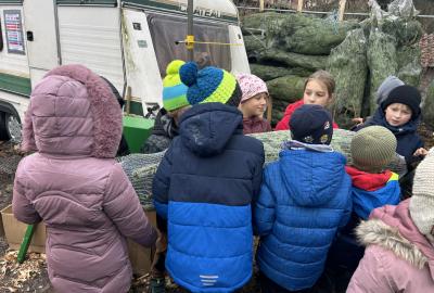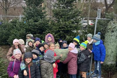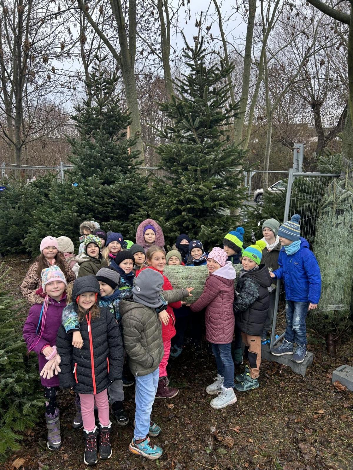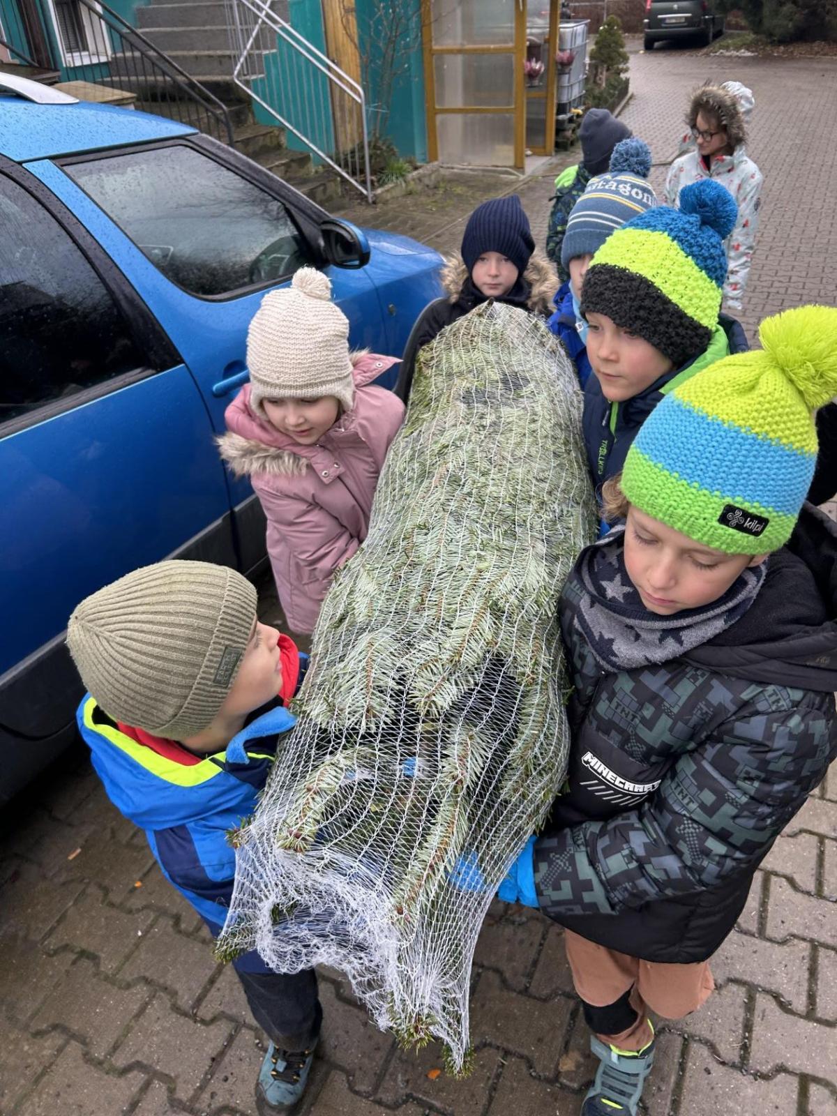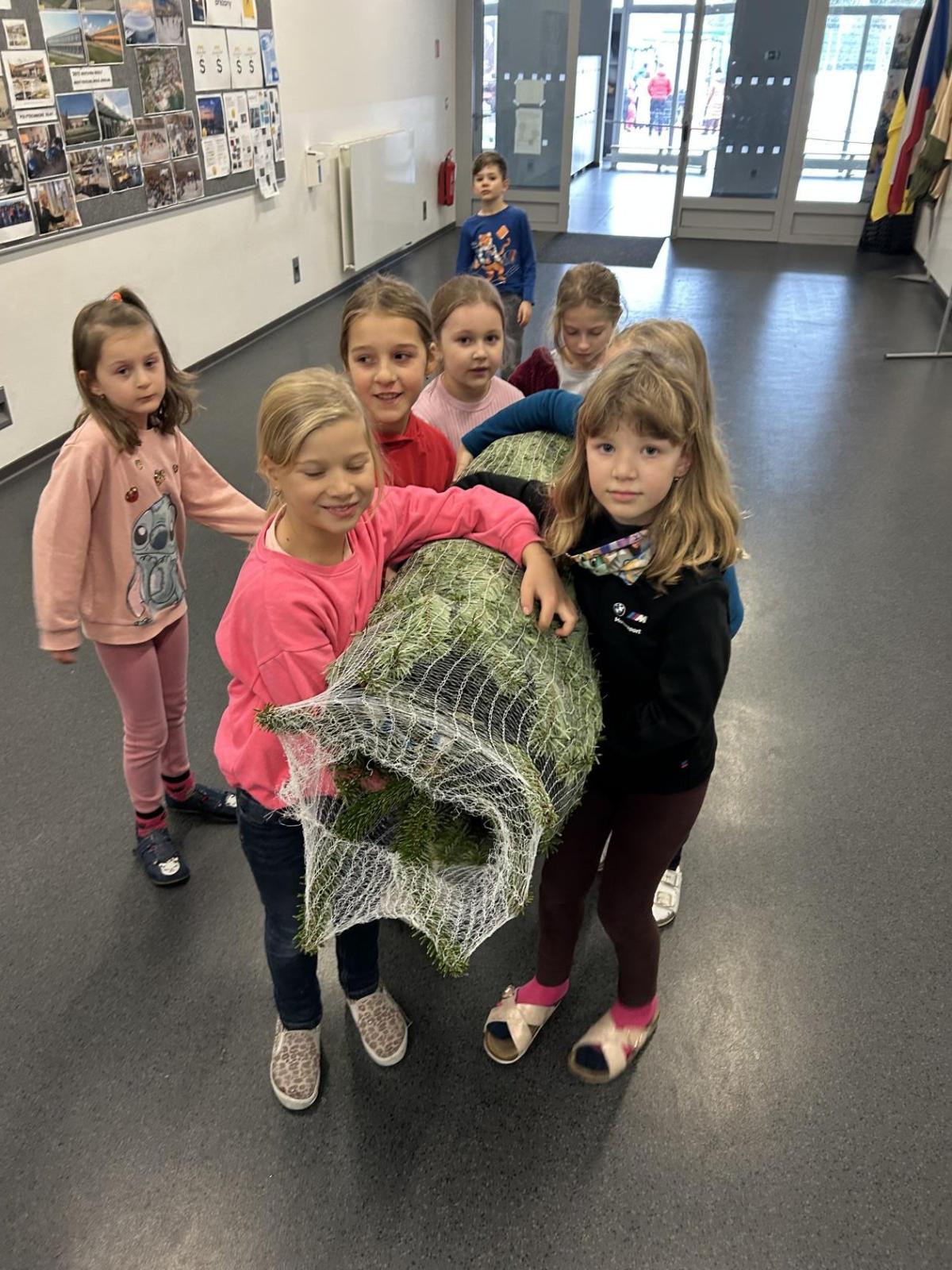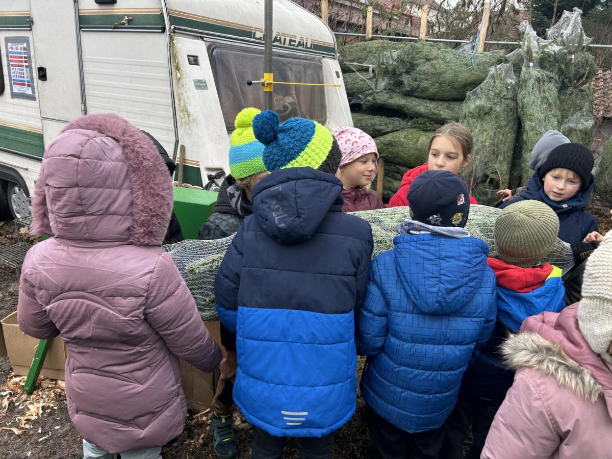 Pondělí 1. prosince jsme si s žáčky zpříjemnili procházkou po Dolních Břežanech, během které jsme se vydali pro náš třídní živý vánoční stromeček. U velmi milých prodejců, kteří nás přivítali úsměvem a malou čokoládkou pro každého, jsme si vybrali krásný, velký stromek. Jakmile byl zabalený, vyfotili jsme se v obležení dalších jehličnanů. Cestou zpět si děti ve skupinkách hrdě náš náklad a s nadšením nesly.