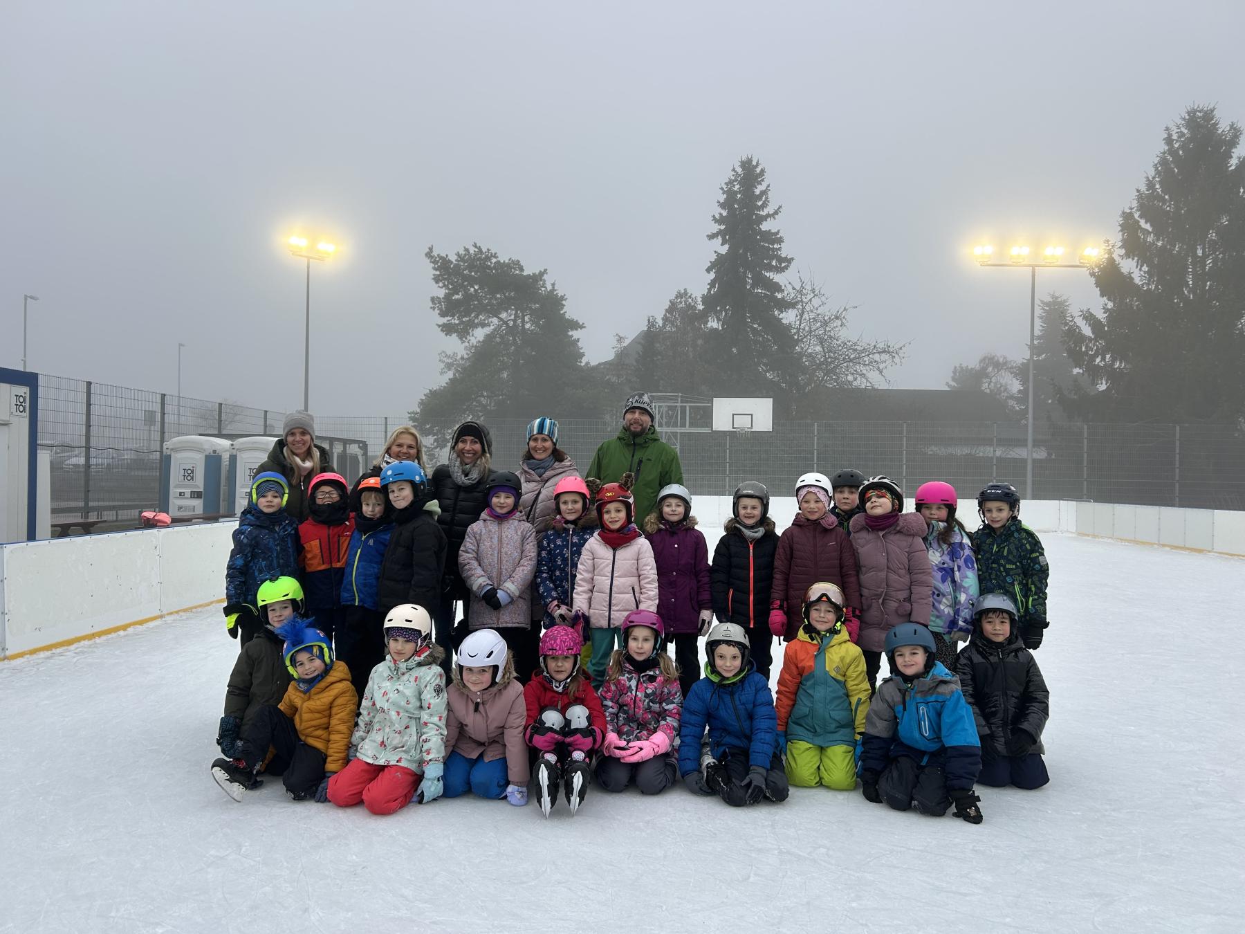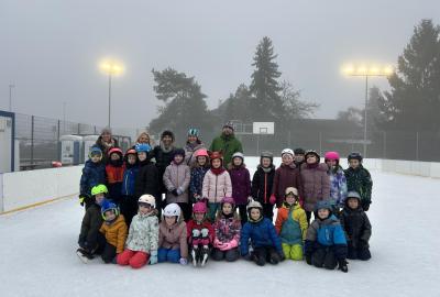 Velké poděkování patří také paní vychovatelce z družiny, která nám ráno přišla pomoci a byla dětem velkou oporou. Na závěr prvního bruslení jsme se všichni společně vyfotili – děti, rodiče i paní učitelky – a odcházeli jsme s pocitem, že se nám podařilo něco opravdu hezkého a společného.