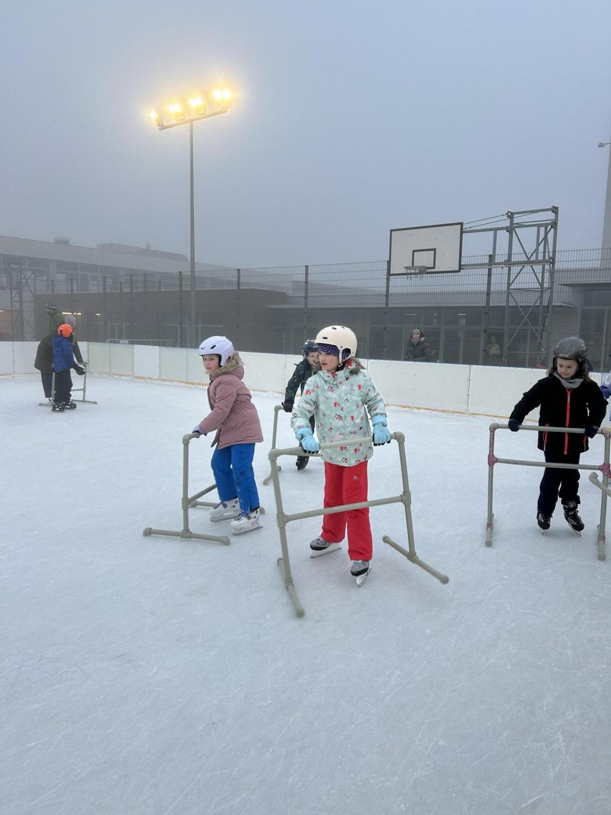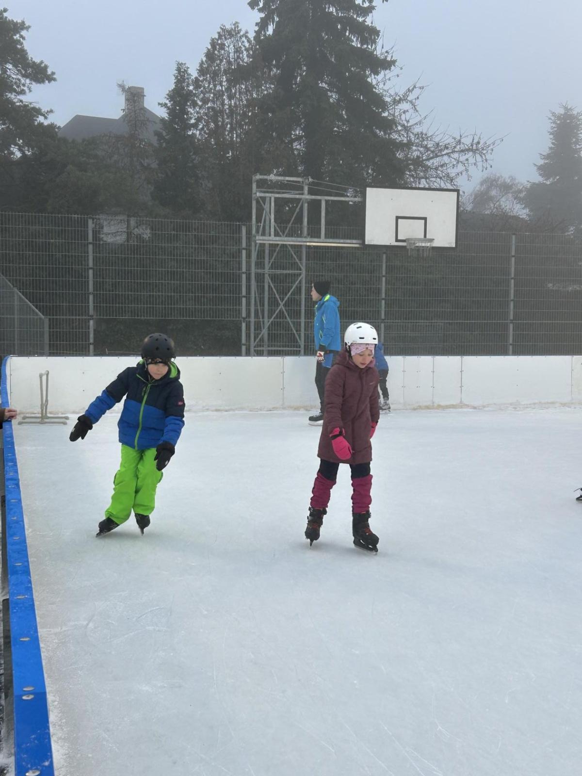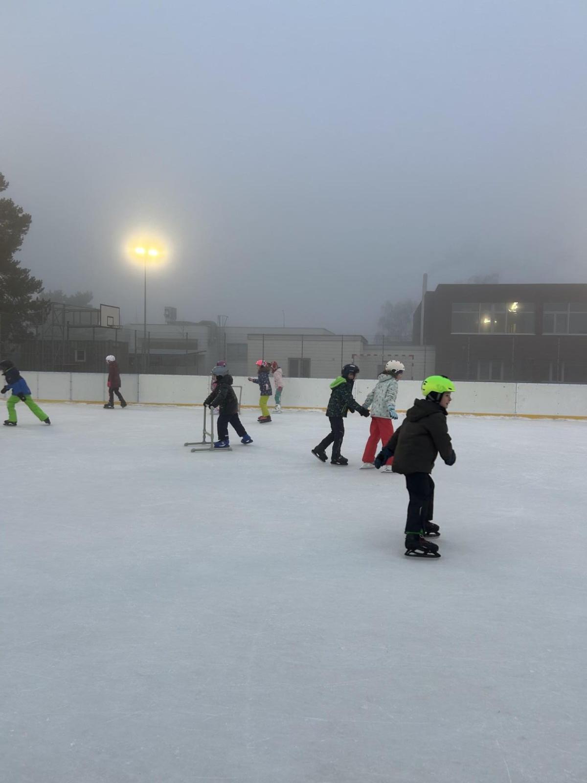 V prosinci se nám před školou objevila krásná novinka – přímo na školním hřišti vznikla ledová plocha, která je dopoledne vyhrazená dětem naší školy a odpoledne otevřená veřejnosti. Přestože mají druháci letos v rámci tělesné výchovy plavání, domluvili jsme se, že si bruslení rozhodně nenecháme ujít a několikrát si ho společně vyzkoušíme.