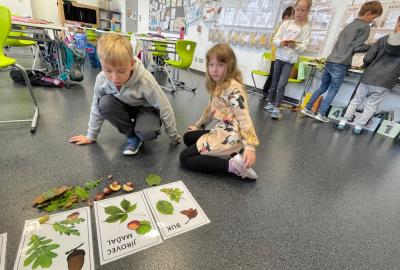 Věnovali jsme se také poznávání podzimní přírody. Děti přinesly různé podzimní poklady – listy, podzimní plody, šišky a větvičky jehličnatých stromů. Tyto ukázky nám pomohly lépe poznat různé druhy stromů.