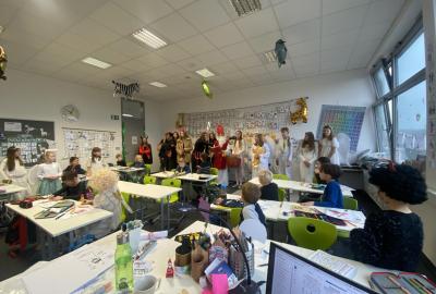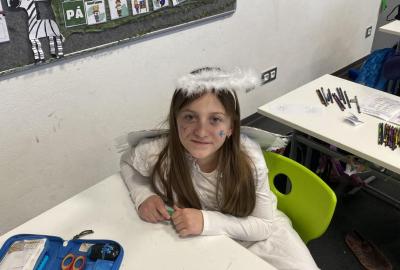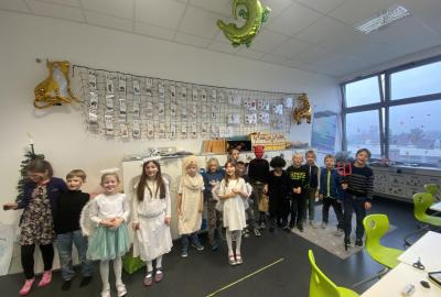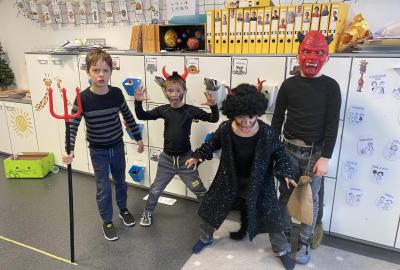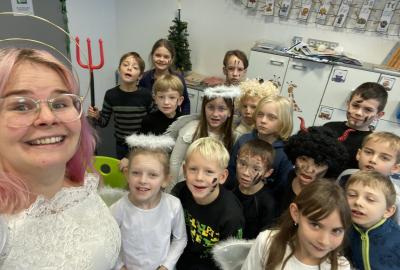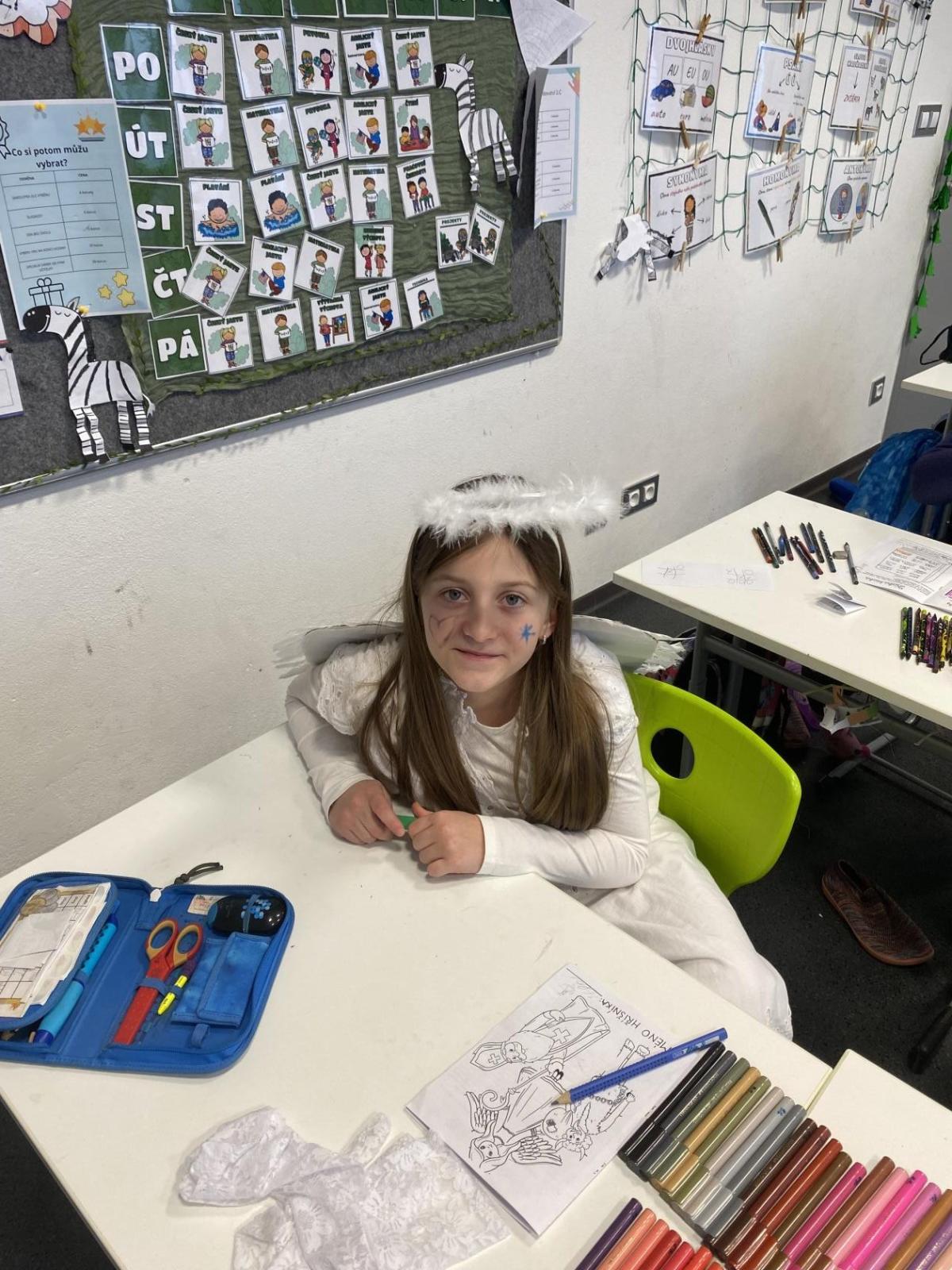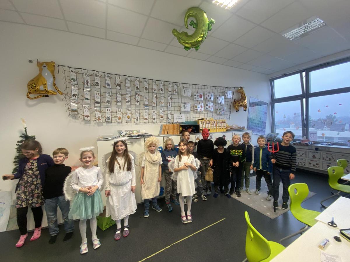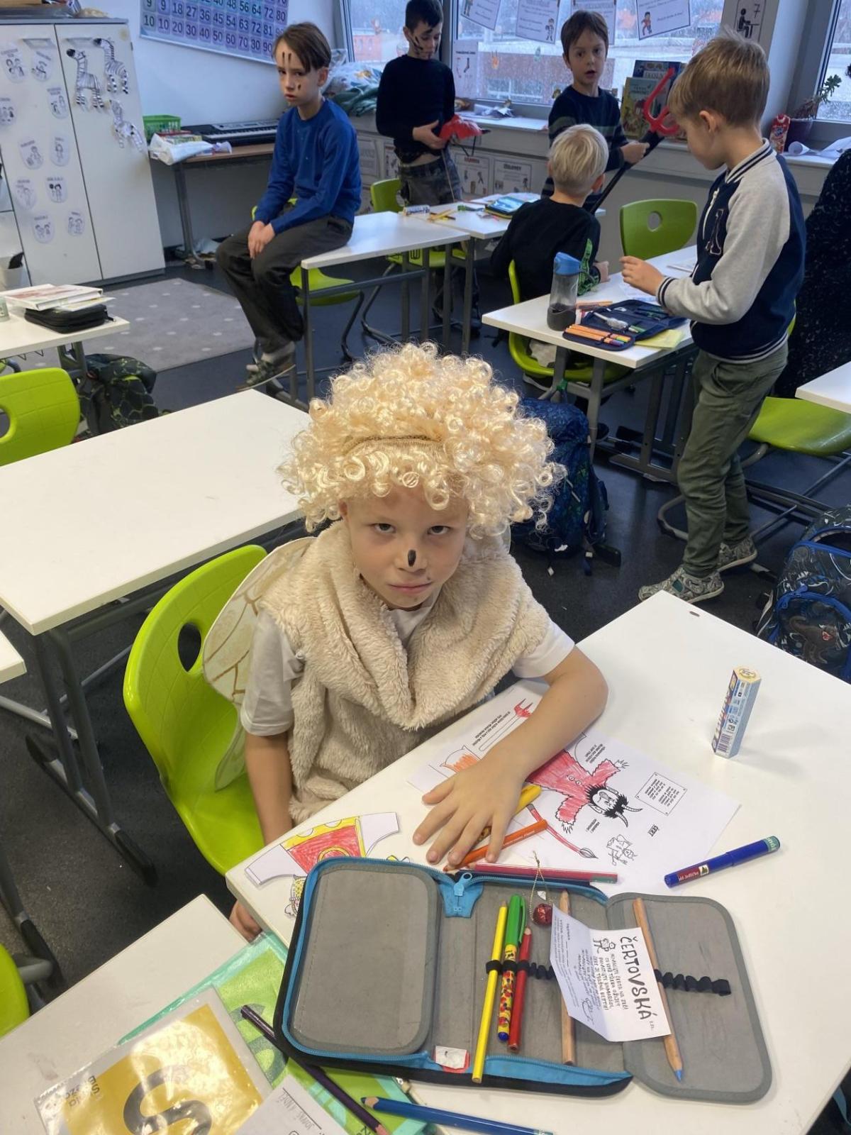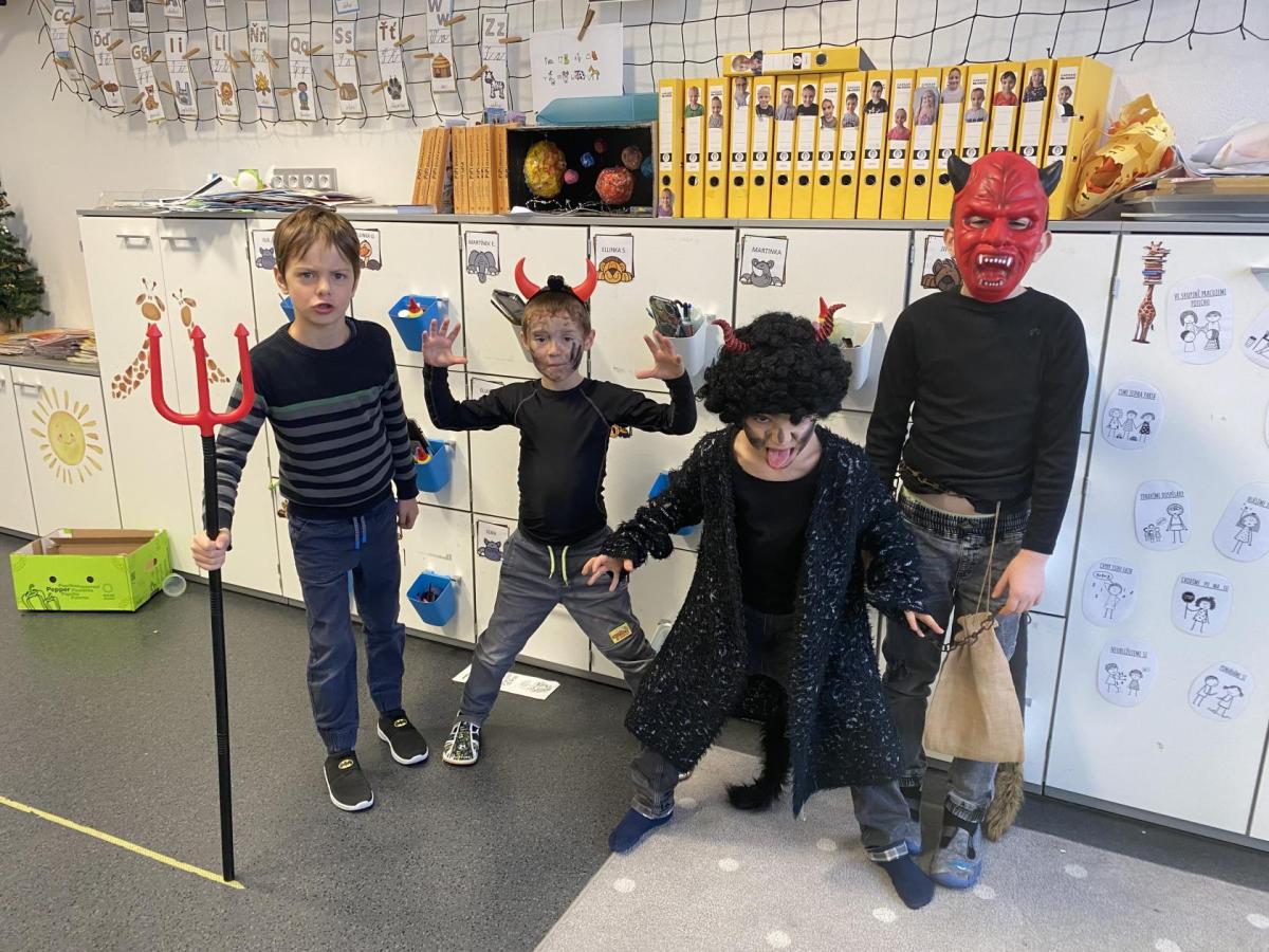Dneska u nás bylo spoustu čertů a andělů! A třetí hodinu jich přišlo ještě víc, s Mikulášem v čele.