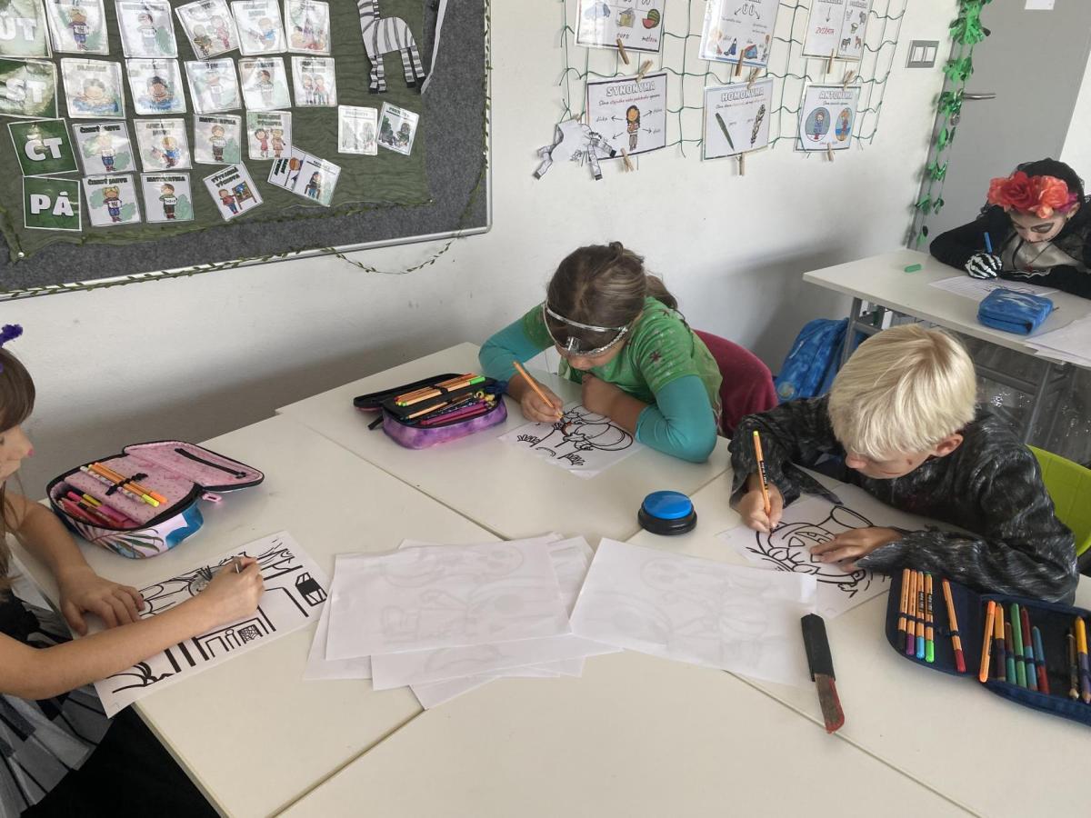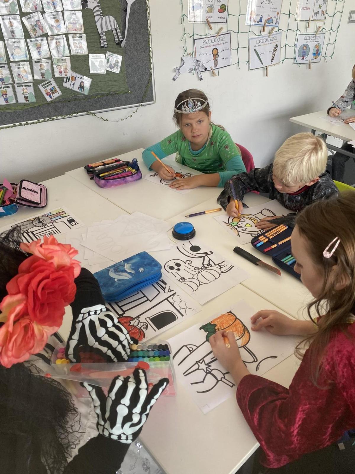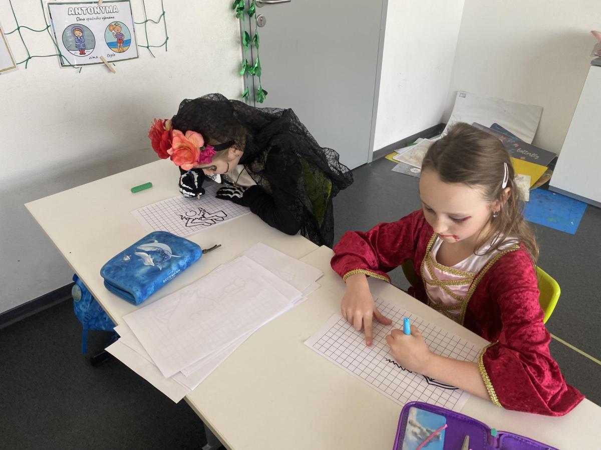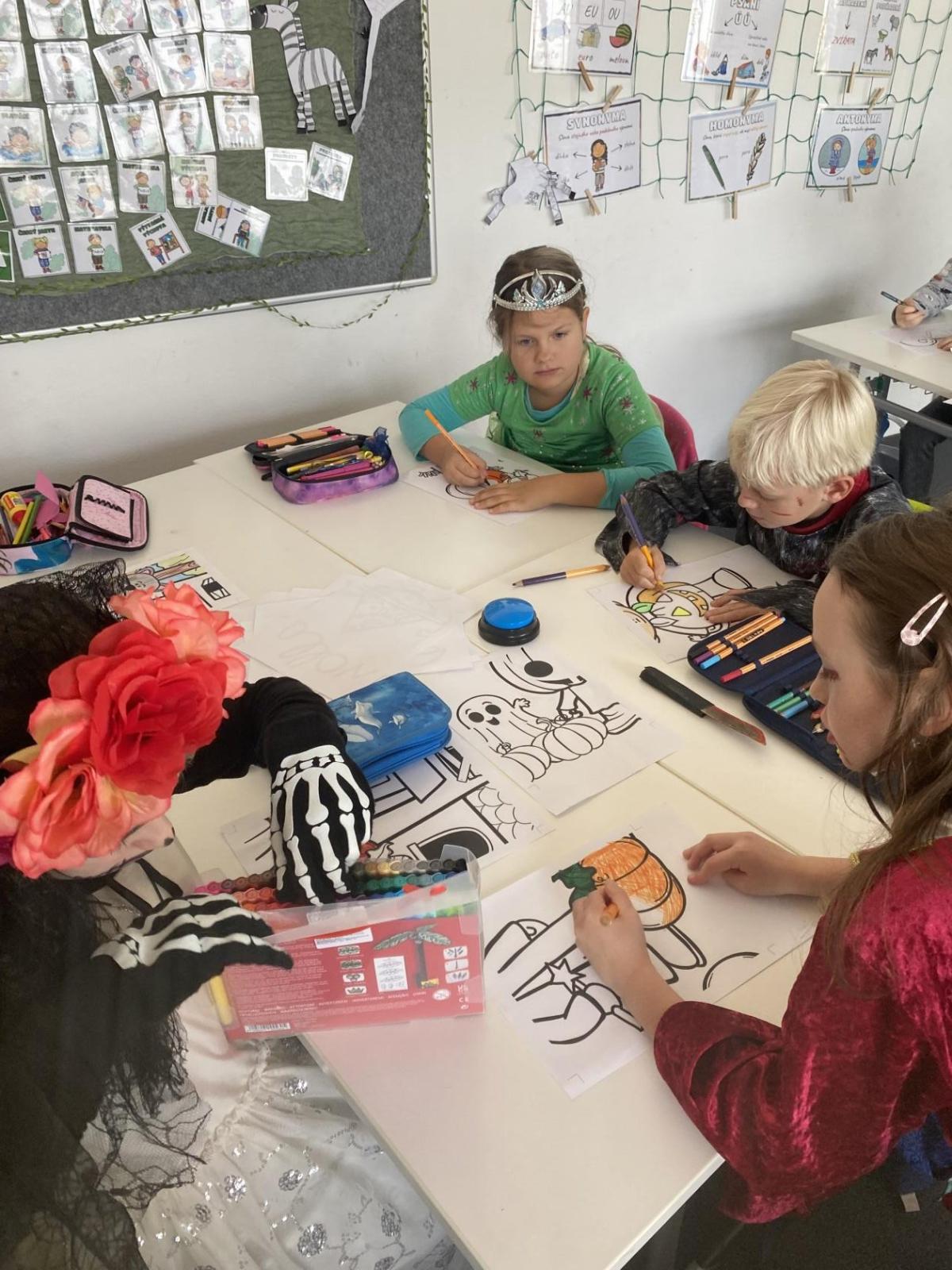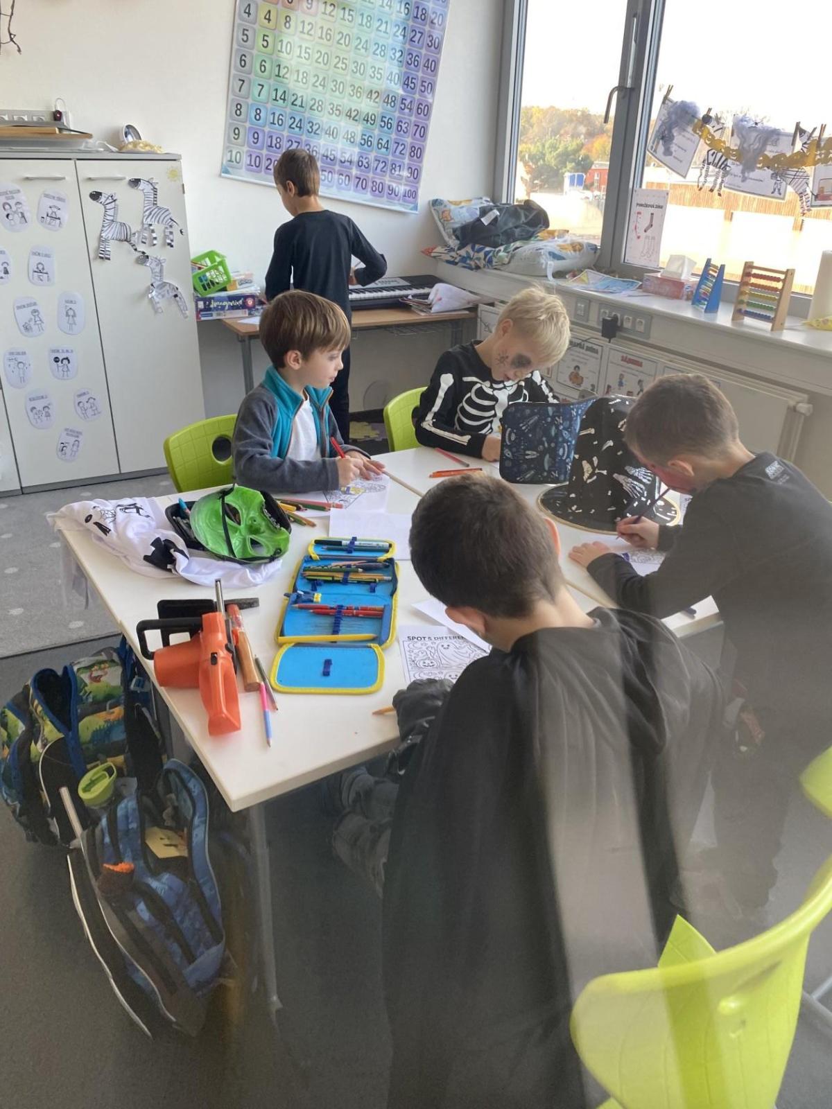 Dnešní den se nesl v duchu Halloweenu! Celá třída ožila strašidelnou výzdobou, kostýmy a úžasnou náladou. Po celé třídě jsme měli připravená různá stanoviště, kde si děti mohly vyzkoušet zábavné úkoly, soutěže a hry. Nechyběly ani strašidelné pochoutky, které jsme si společně vychutnali – od sladkostí až po tematické dobroty.