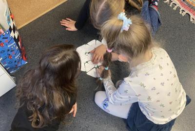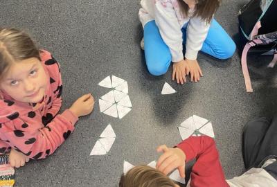 Poslední týdny se učíme násobit. Zkoušíme i trimino. Jde nám to výborně.