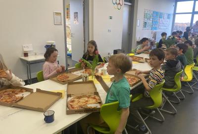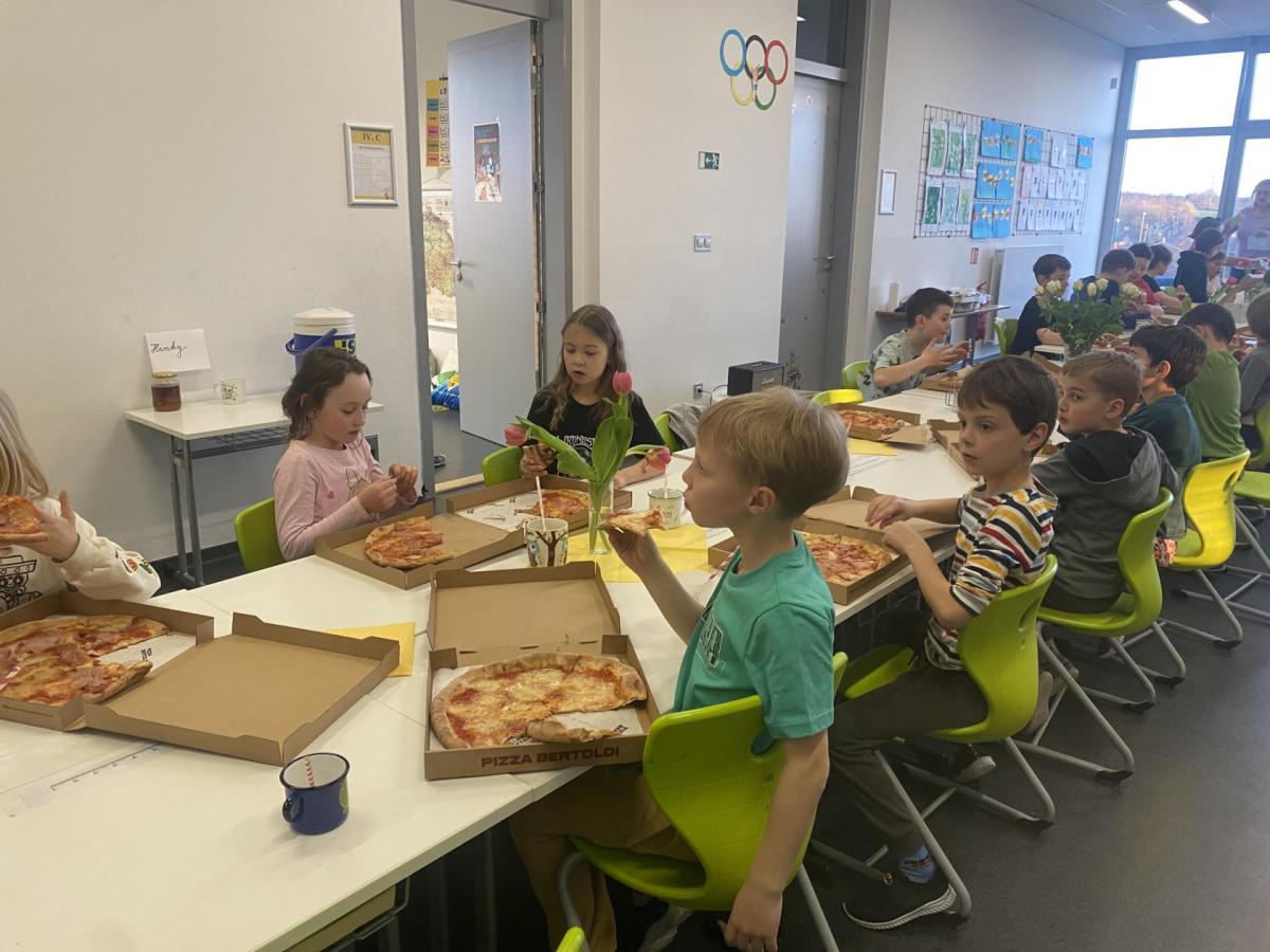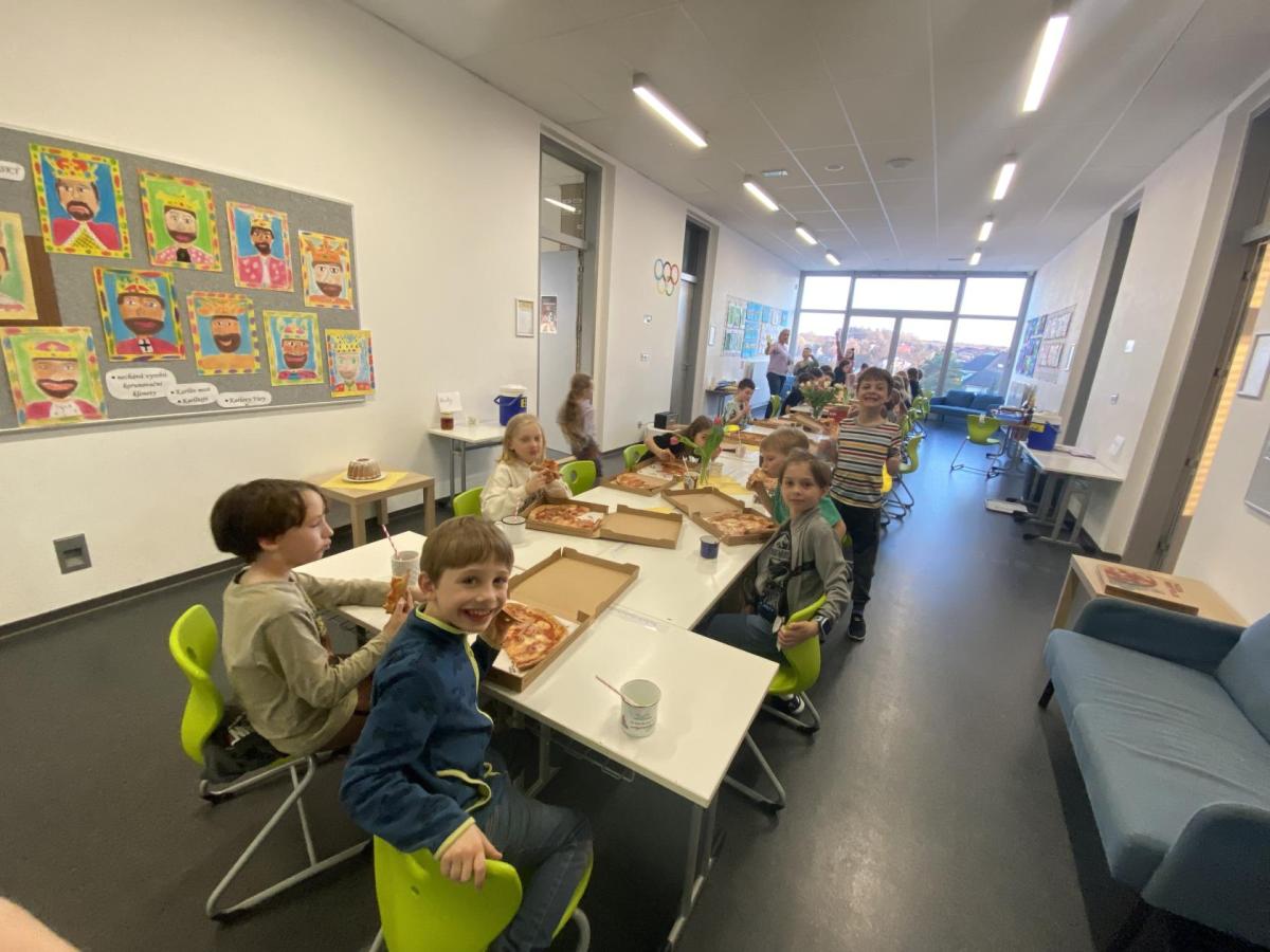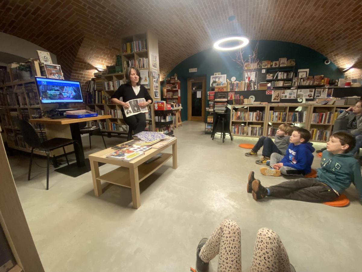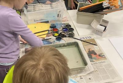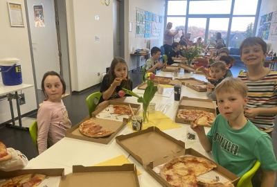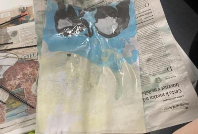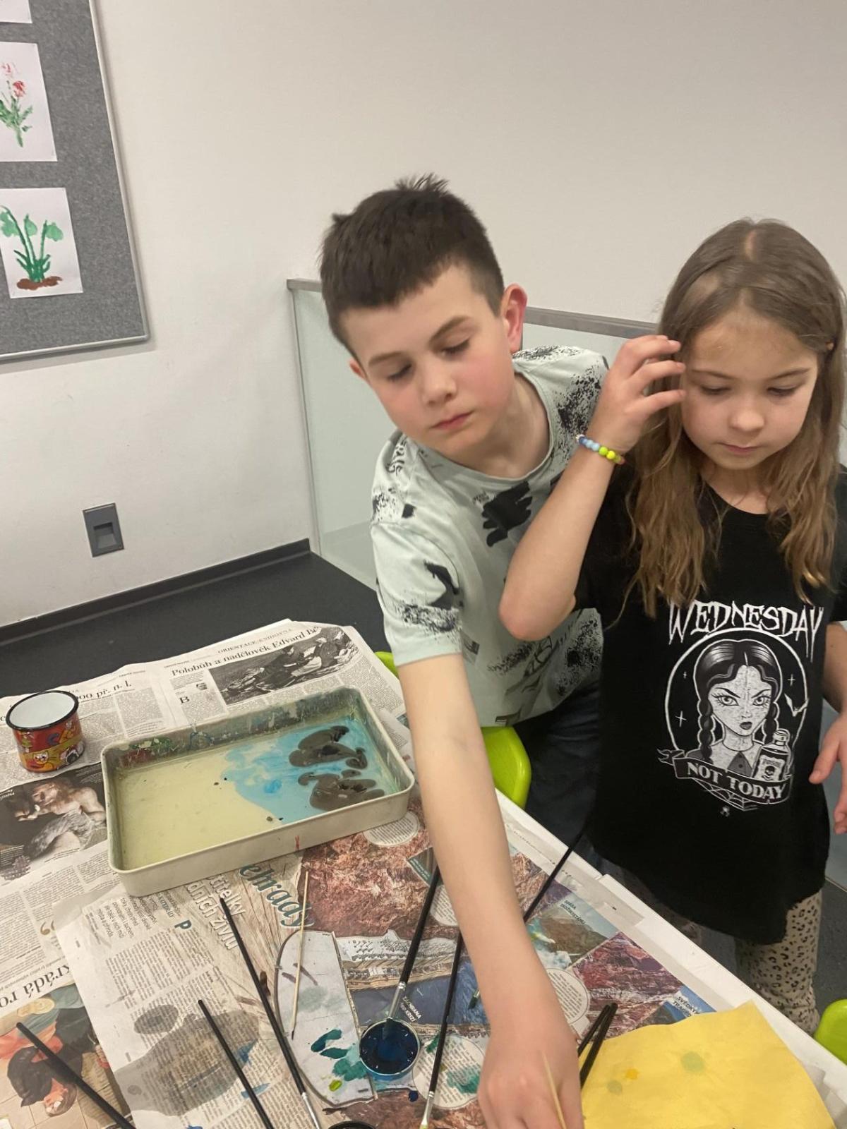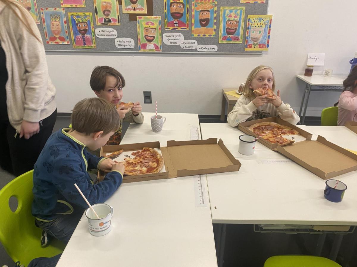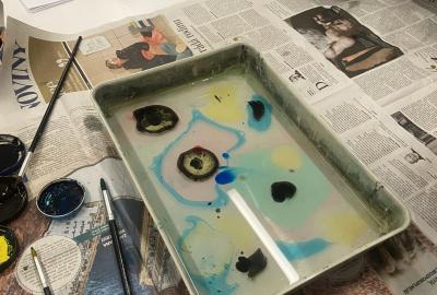 Měli jsme pizzu, tvořili jsme metodou suminagashi, hodně blbli, měli jsme večerní program v knihovně, BOJOVKU!