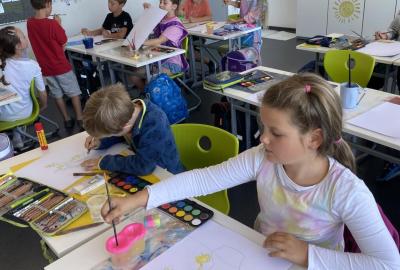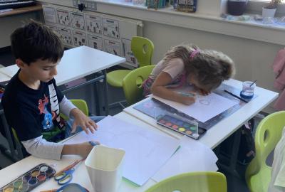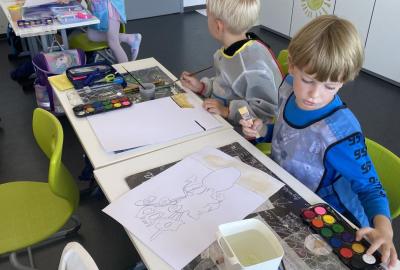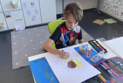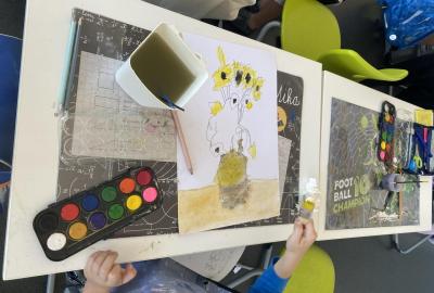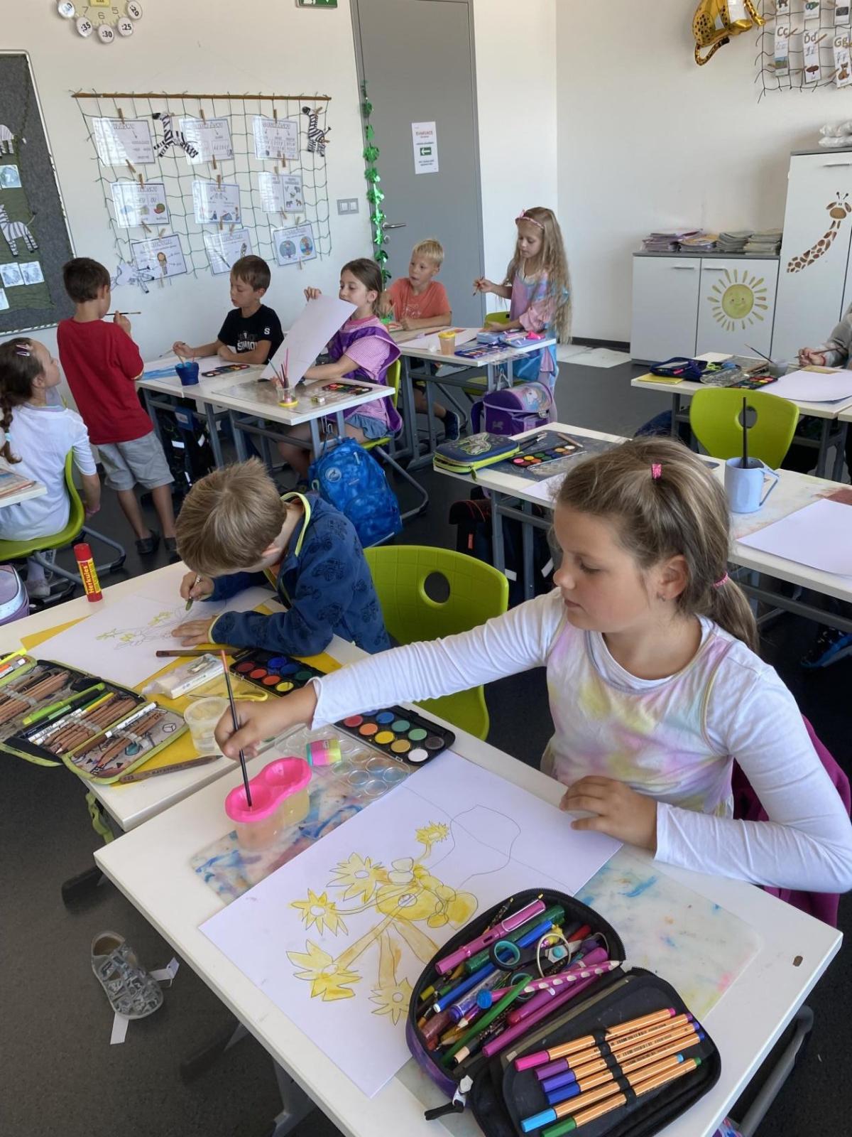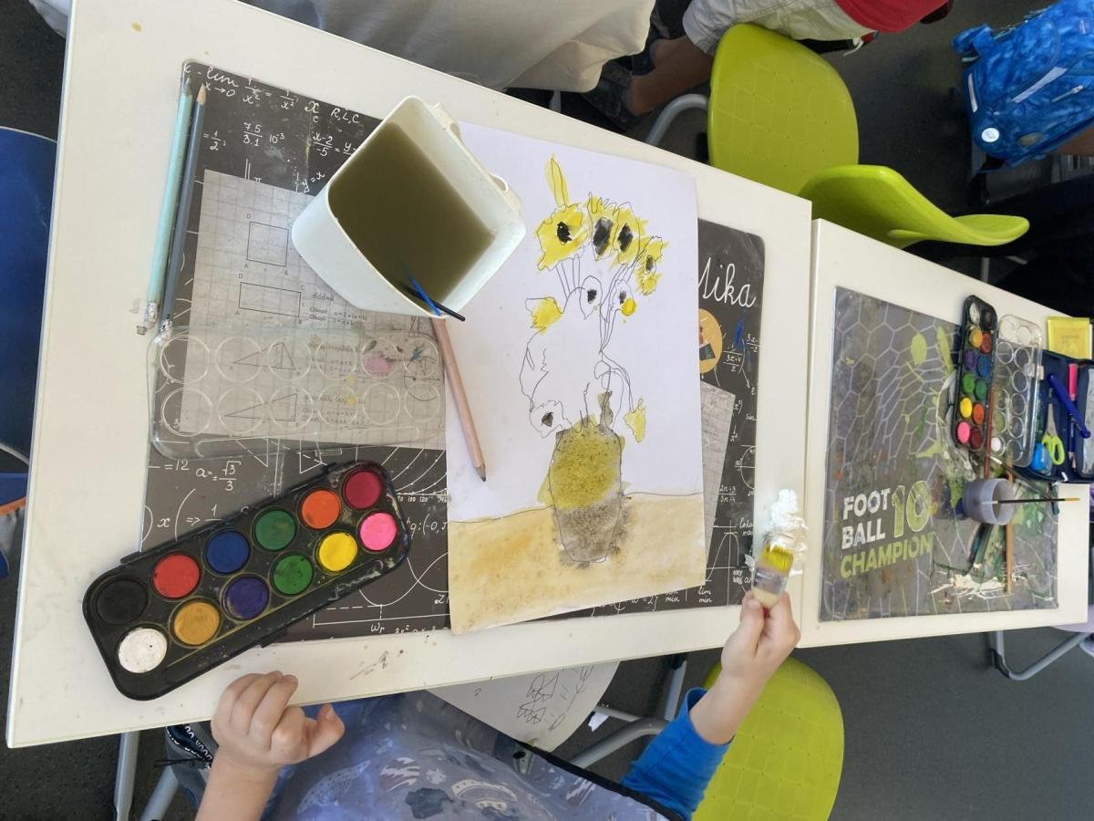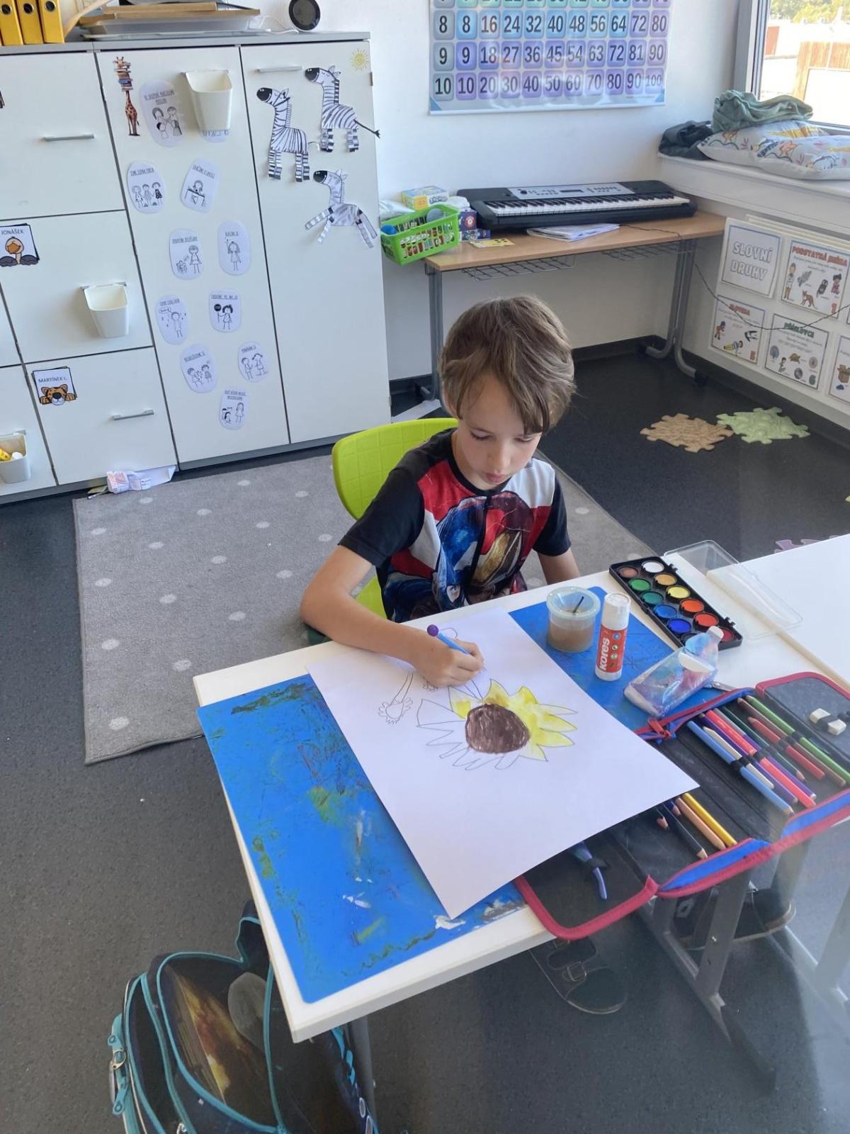 Na výtvarné výchovy je jsme malovali slunečnice dle Van Gogha, výsledek si ale necháme do příštího týdne. :)