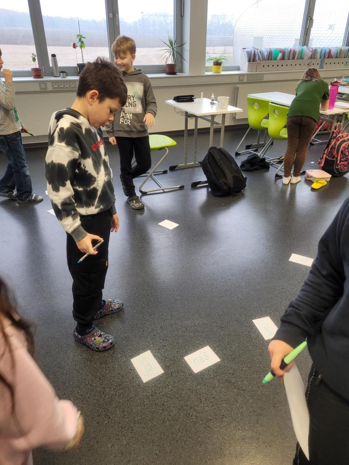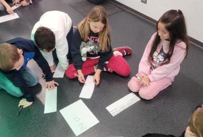 Začátek roku jsme si zpestřili celoměsíční hrou. Děti si každý den během procvičování vyjmenovaných slov vyluštily jedno slovo, které jim pak poslední den 1. pololetí pomohlo k vyluštění tajenky, díky níž se dozvěděly, kam se schovalo vysvědčení. Musely zapojit také své matematické dovednosti - bez vyřešení zadaných příkladů by nikdy nezjistily, kde mají vysvědčení hledat. Nakonec se všichni žáci dobrali výsledku a s velkým nadšením se vypravili do školní knihovny, kde na ně čekalo zhodnocení jejich práce za celé pololetí.