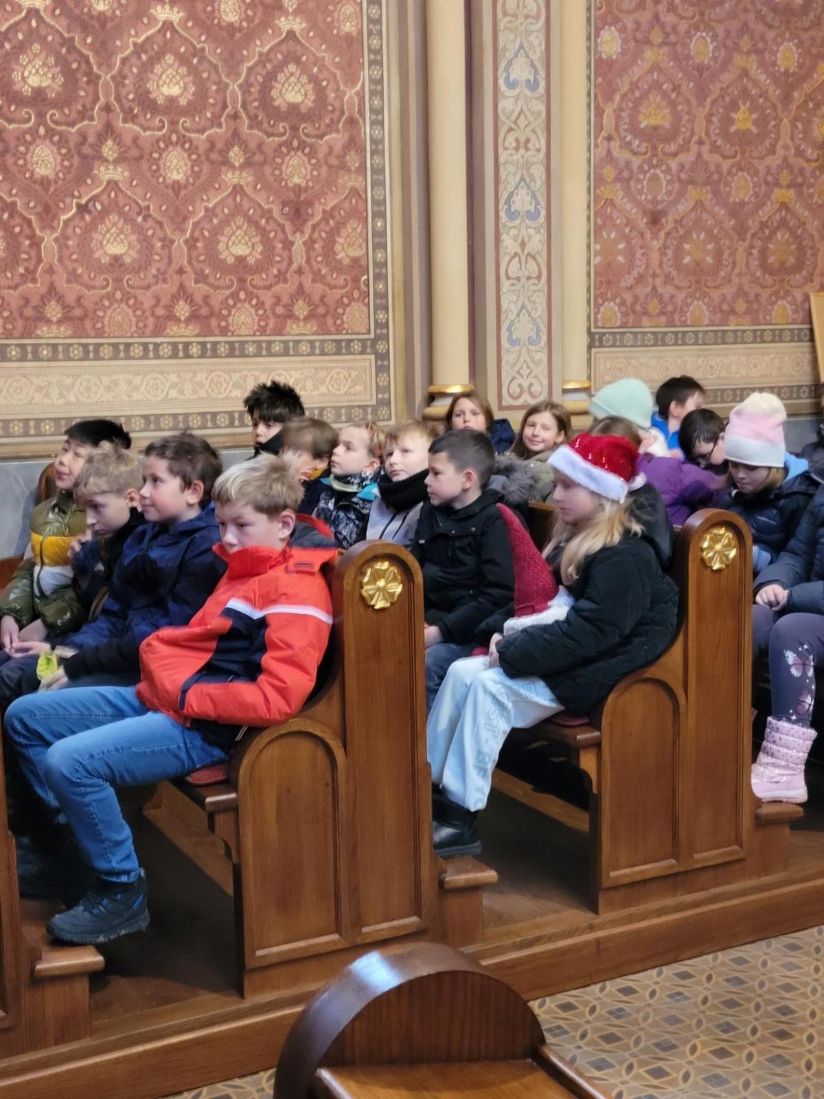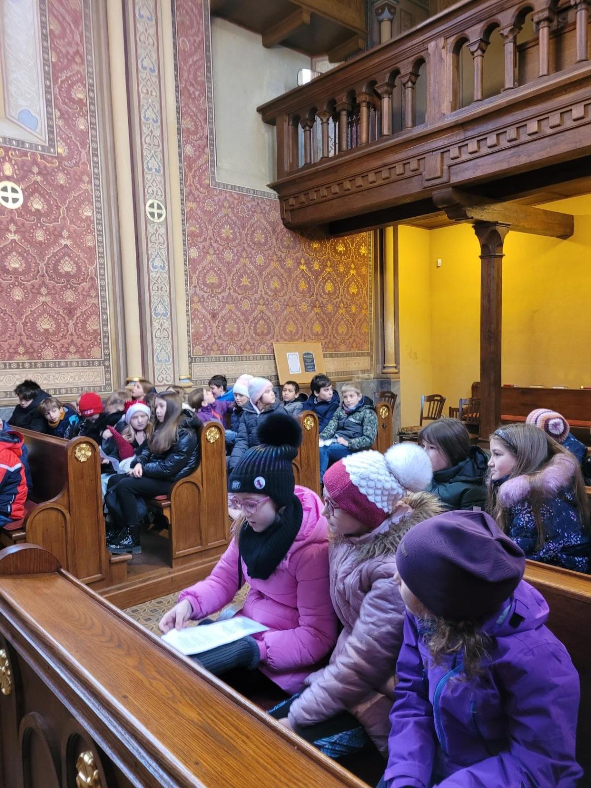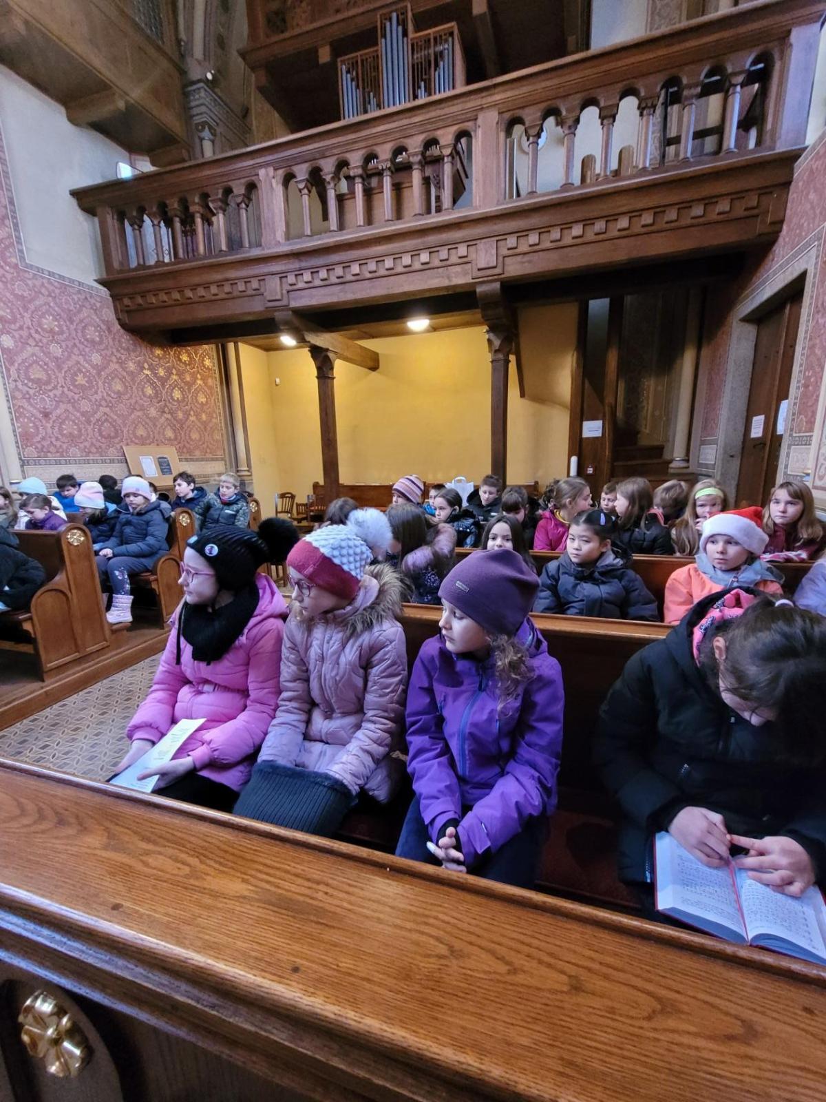 Ve čtvrtek jsme se na Vánoce naladili hudebně – jako každý rok totiž místní pan farář pozval břežanské děti na zpívání koled v kapli sv. Máří Magdalény, což si nenechala ujít ani 3.A. Za zvuků varhan jsme si zanotovali např. písně Narodil se Kristus Pán nebo Nesem vám noviny a osvěžili si tak jejich texty, abychom je 24. prosince měli v živé paměti.