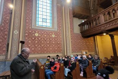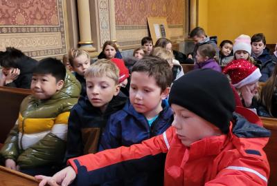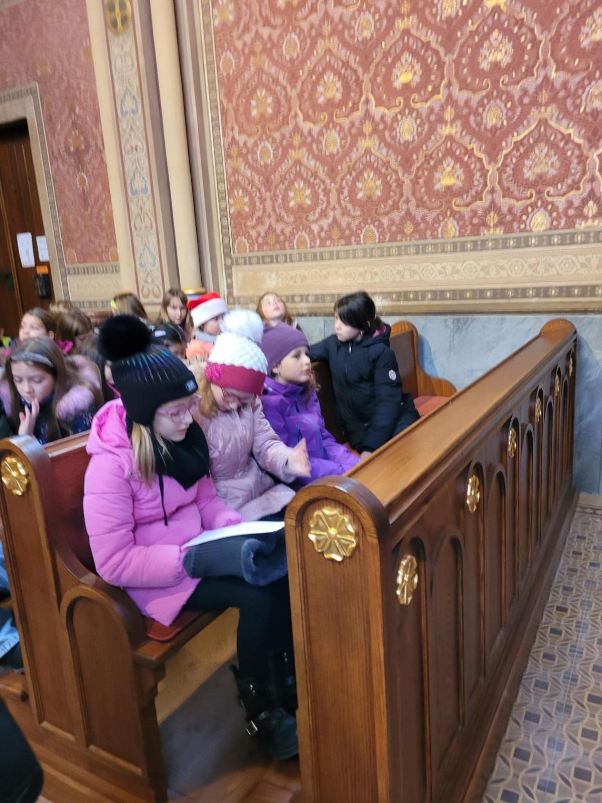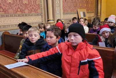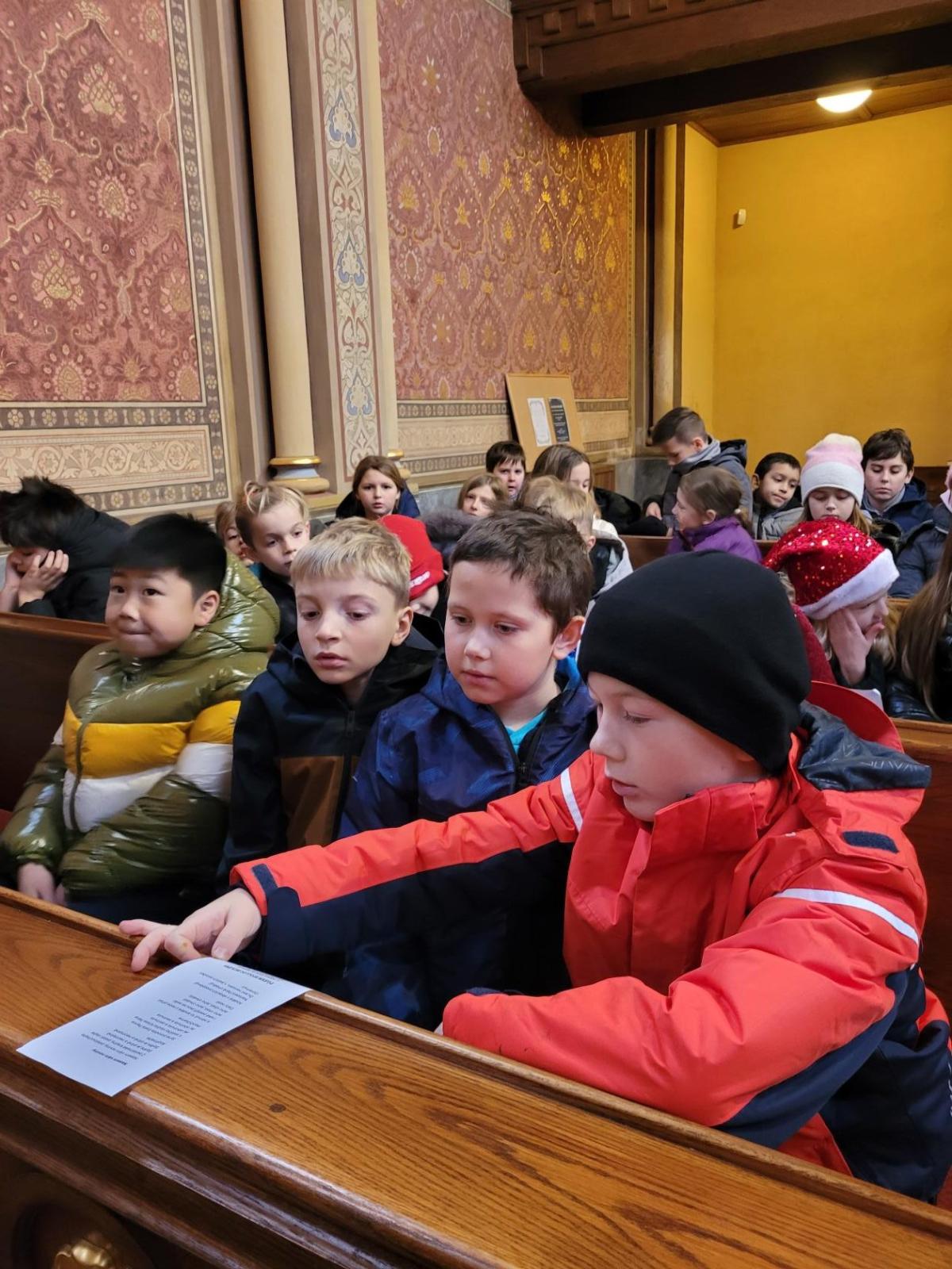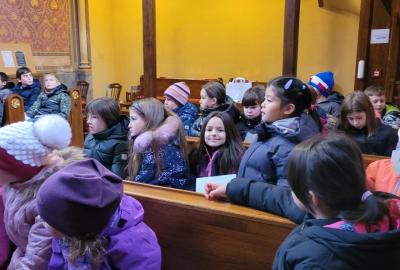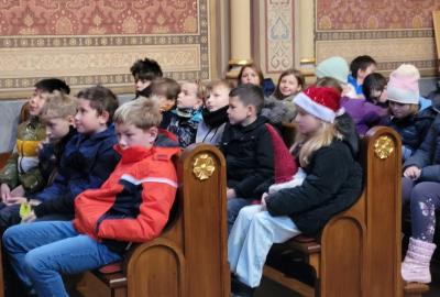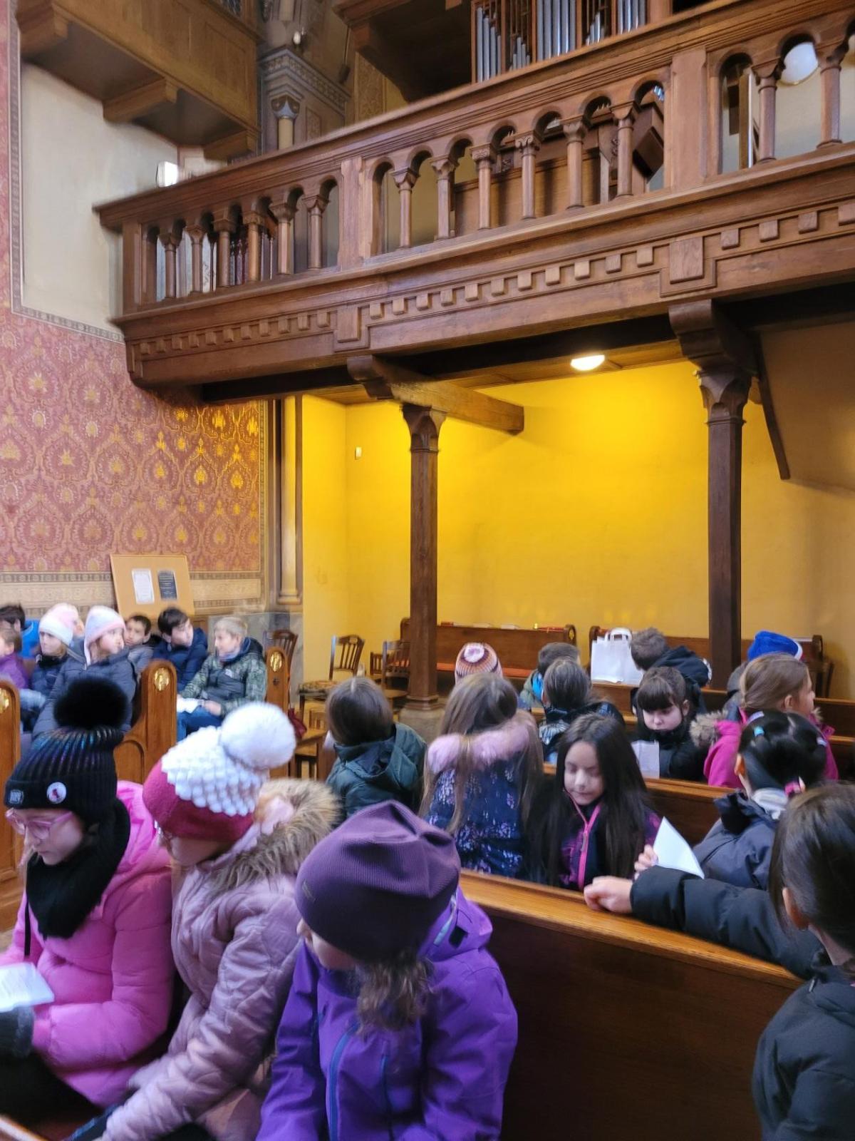 Ve čtvrtek jsme se na Vánoce naladili hudebně – jako každý rok totiž místní pan farář pozval břežanské děti na zpívání koled v kapli sv. Máří Magdalény, což si nenechala ujít ani 3.A. Za zvuků varhan jsme si zanotovali např. písně Narodil se Kristus Pán nebo Nesem vám noviny a osvěžili si tak jejich texty, abychom je 24. prosince měli v živé paměti.