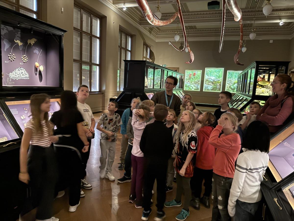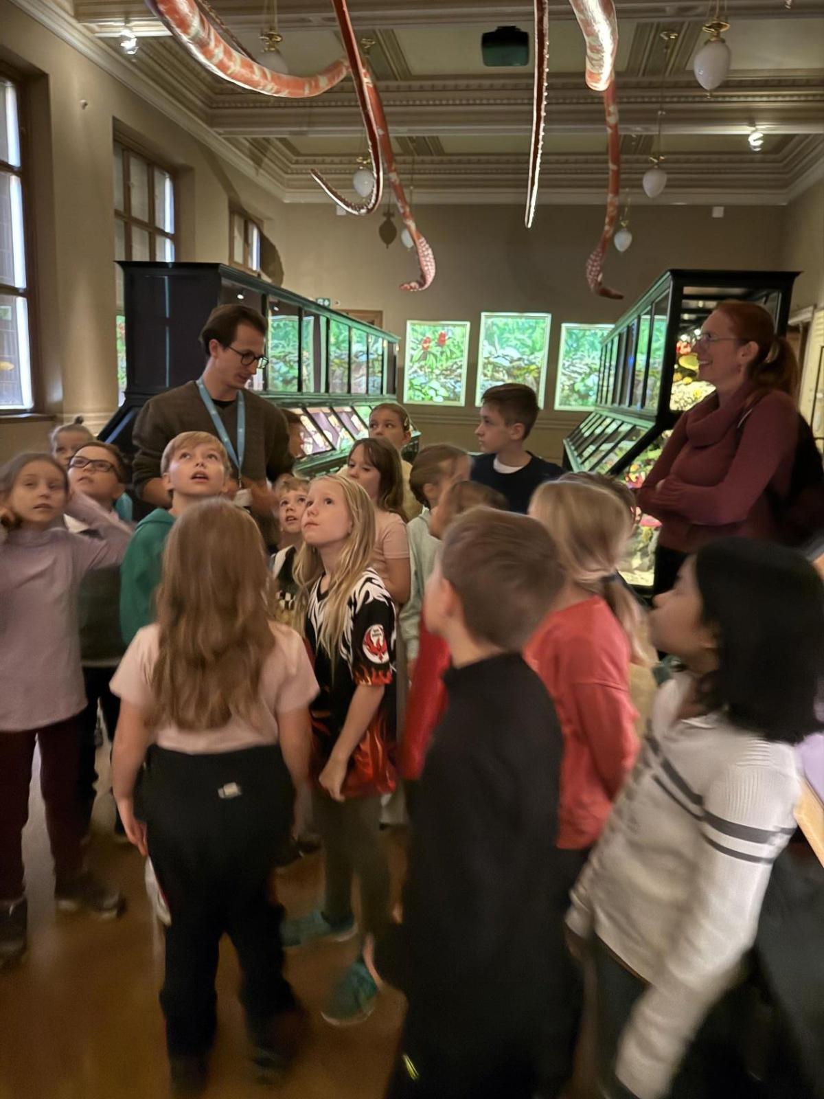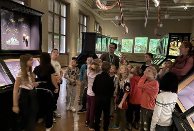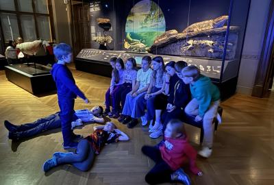 S dětmi jsme se vypravili do Národního muzea na komentovanou prohlídku Kdo je kdo v živočišné říši. Děti se seznámily s rozmanitostí živočišné říše a mohly si prohlédnout velkoformátové exponáty. Dozvěděly se mnoho informací o hlavních skupinách živočichů, seznámily se s jejich znaky, životním prostředím a způsobem života. Program tak doplnil naši předchozí práci ve třídě, kdy jsme před návštěvou muzea objevovali "Strom života", seznámili jsme se s pojmem evoluce i s osobností Charlese Darwina.