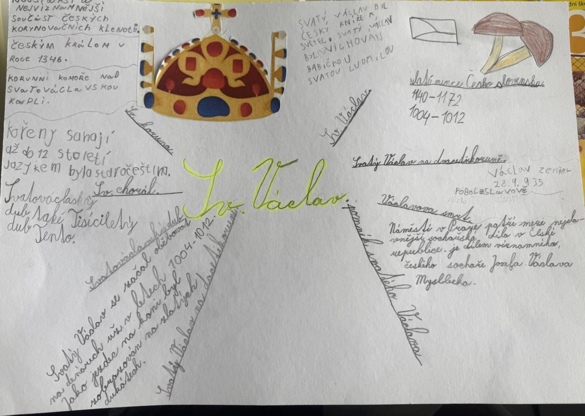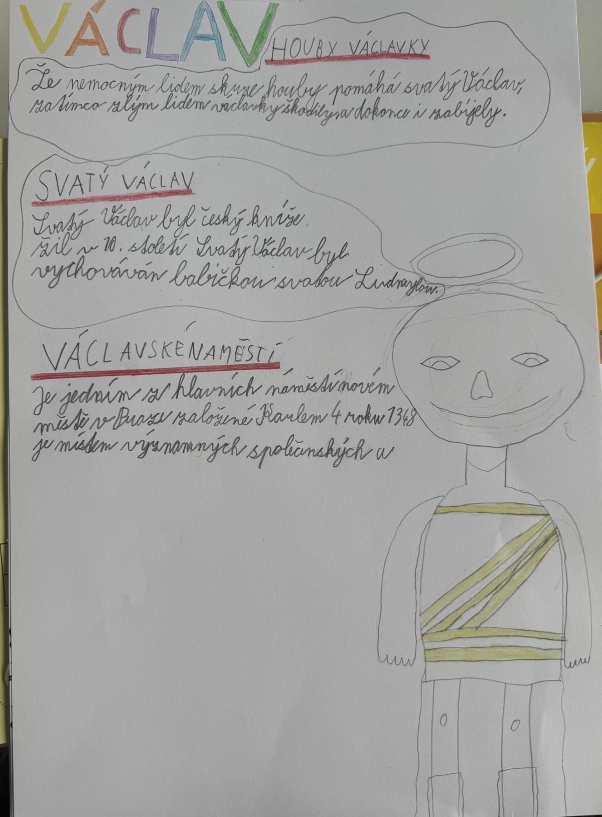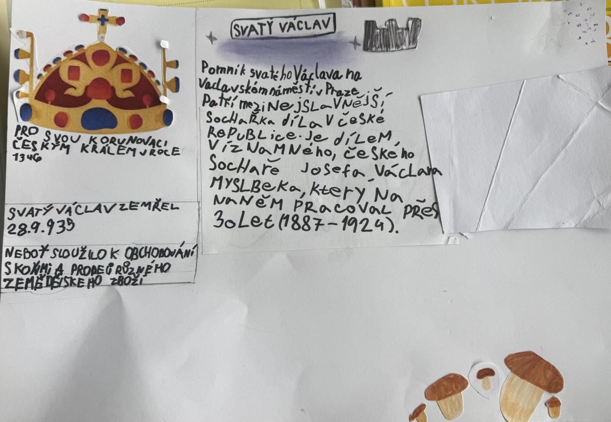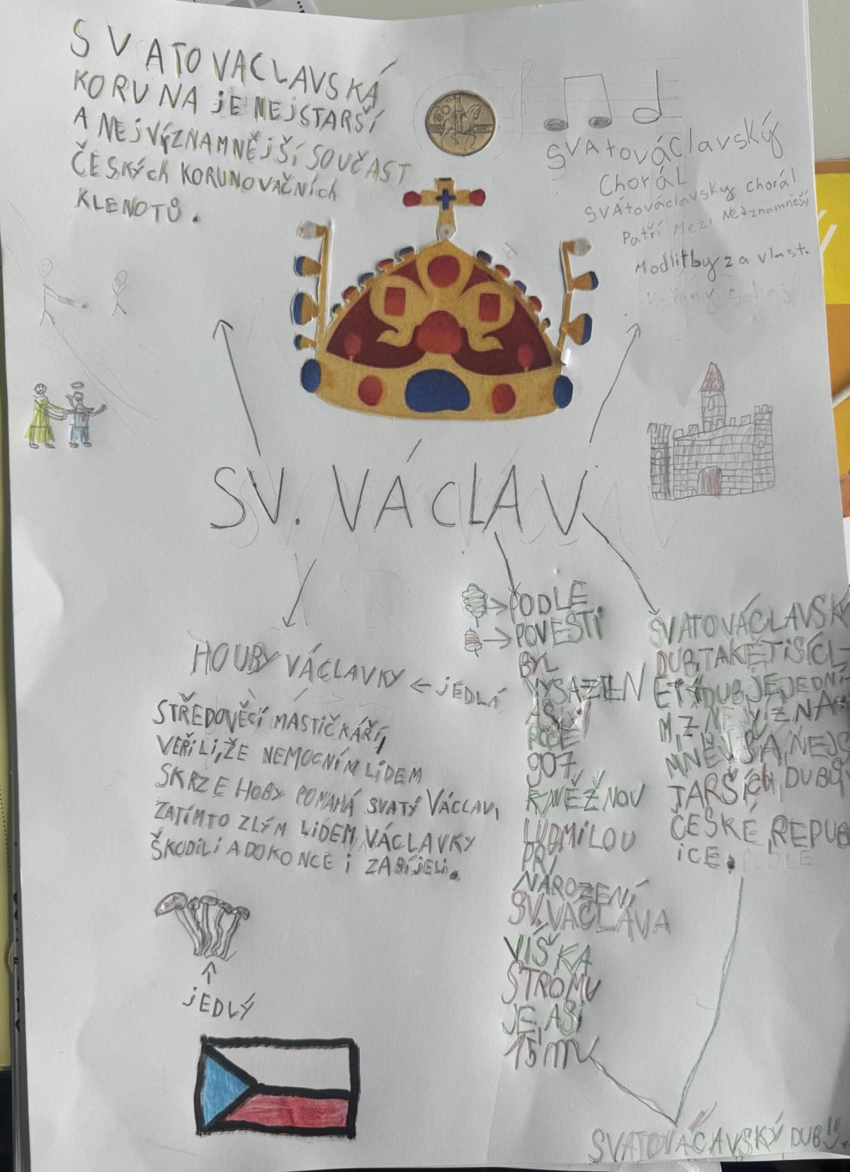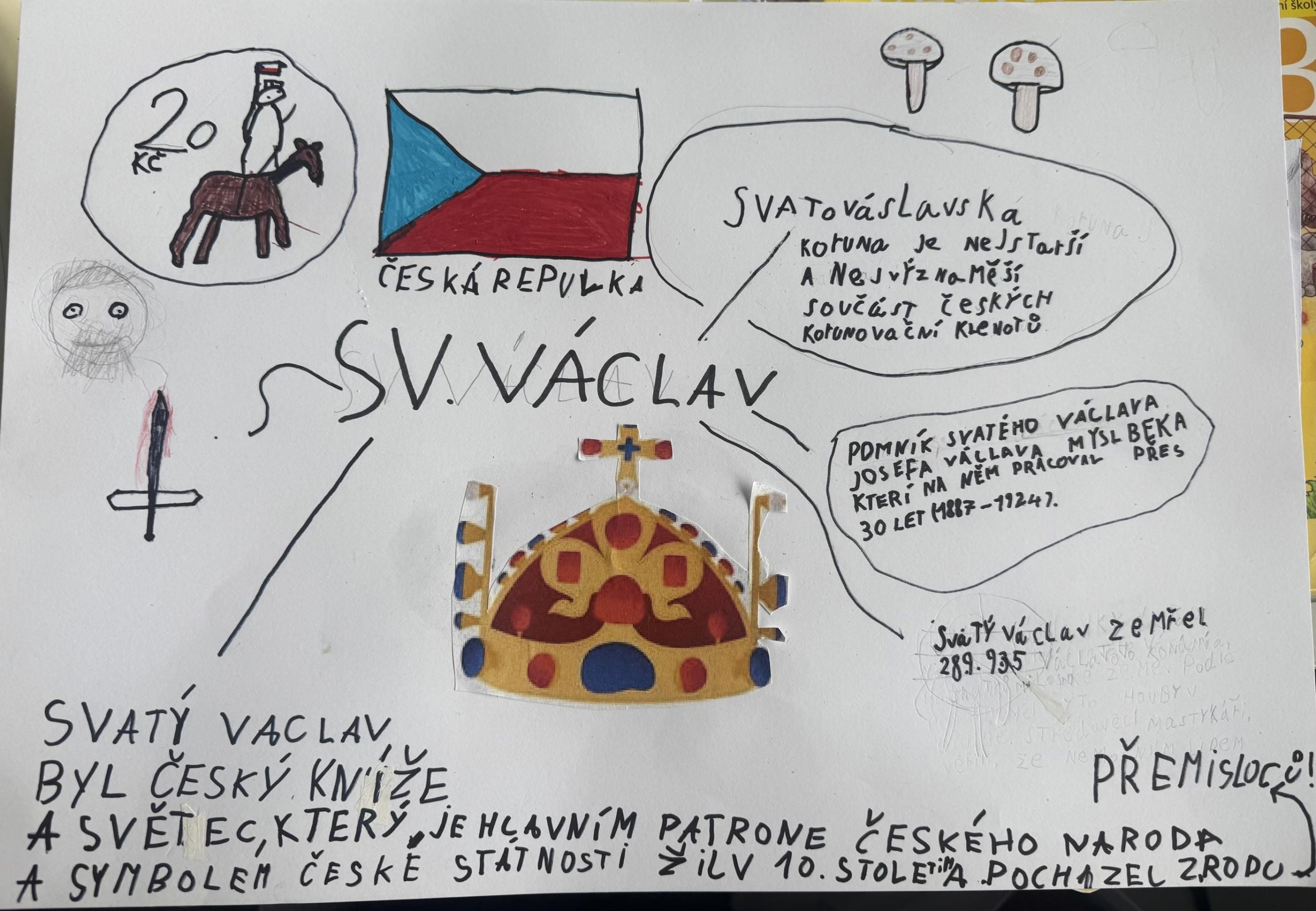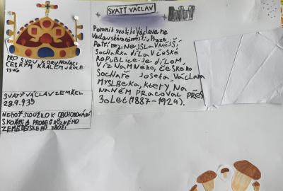S dětmi jsme si připomněli svátek svatého Václava. Děti si zopakovaly to, co už uměly, a dozvěděly se další nové informace. Poté měly za úkol všechny informace zpracovat do vlastních plakátů, na kterých ukázaly svou tvořivost a znalosti.