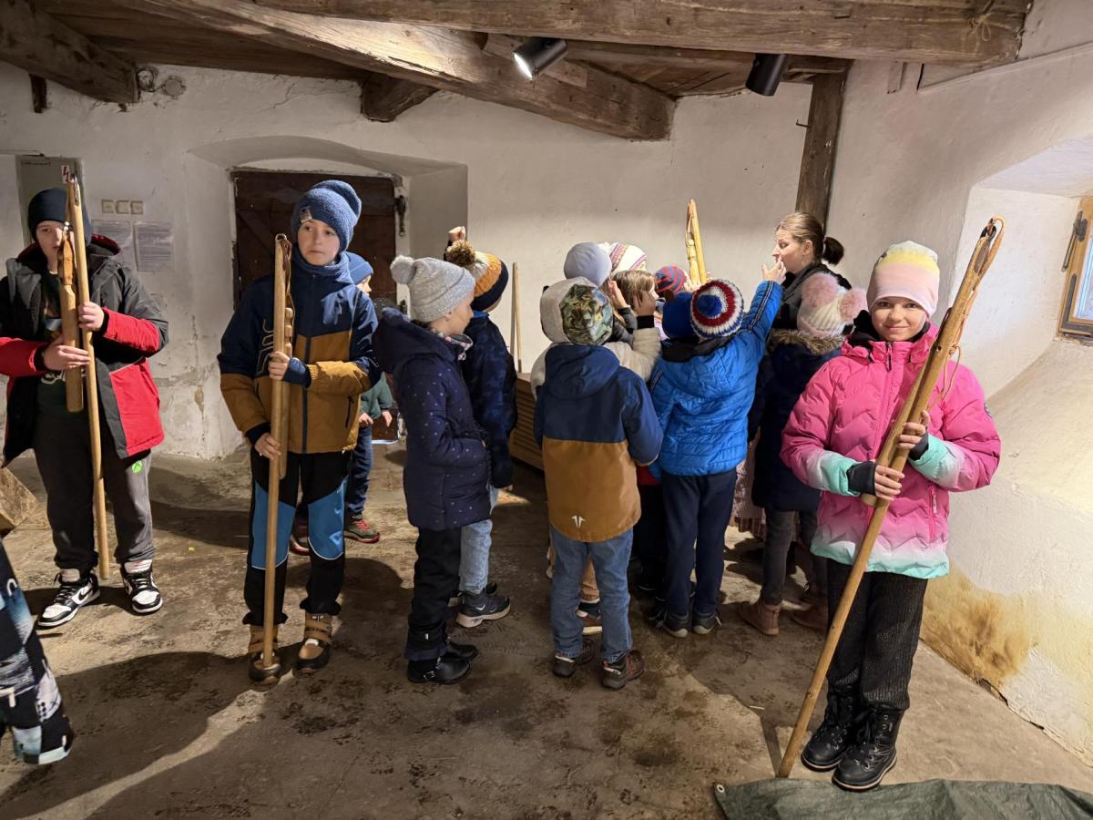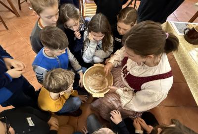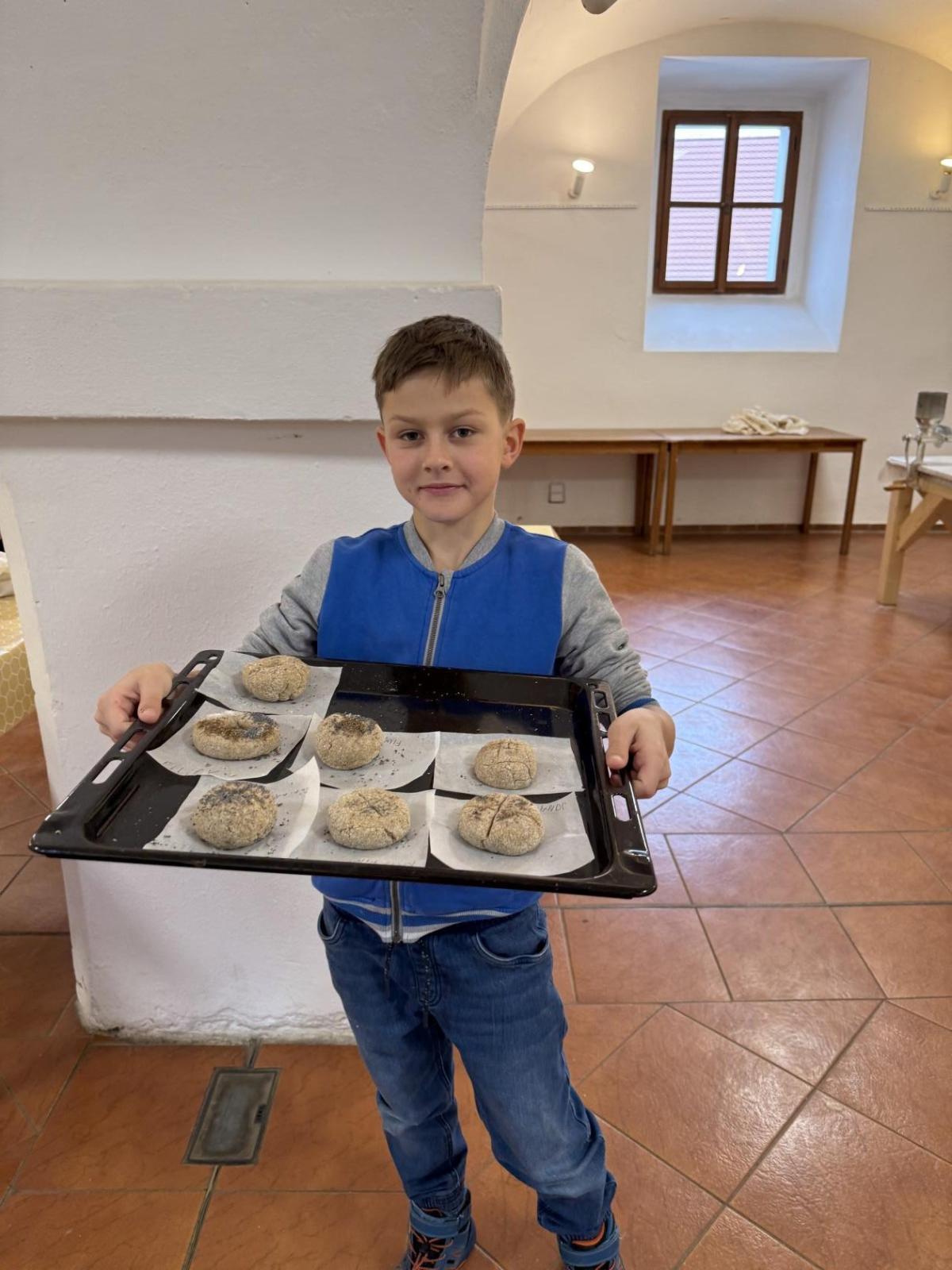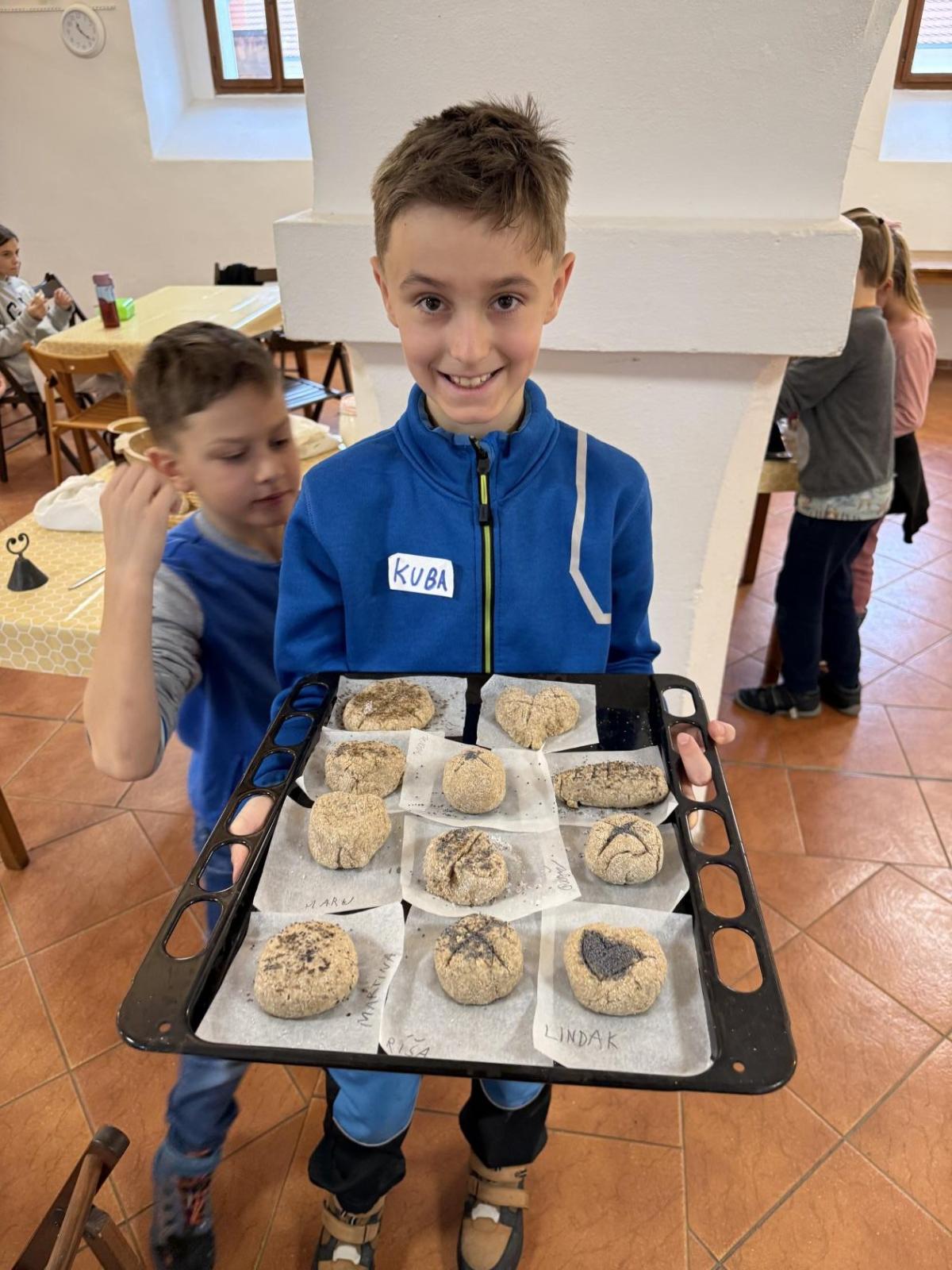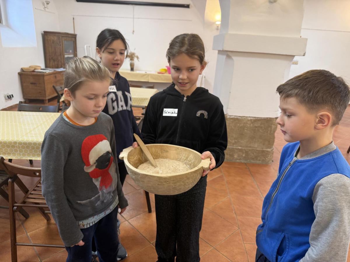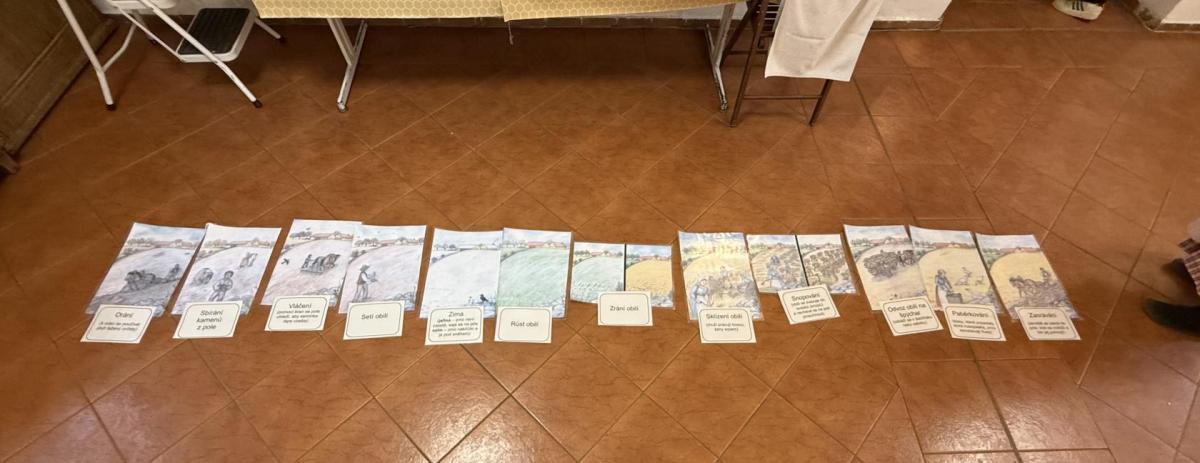 S dětmi jsme se vydali do Toulcova dvora na výukový program Cesta k chlebu, kde si děti mohly vyzkoušet, kolik práce se skrývá za jedním malým bochníkem chleba. Děti se nejprve seznámily, jak se z klasu obilí vymlátí zrno, tedy oddělí zrno od klasu. Následovalo mletí mouky, při kterém si uvědomily, jak je to těžká a poctivá práce. Umletou mouku přesely, aby byla jemná a připravená na samotné pečení. Poté zadělaly na těsto a upekly si svůj vlastní chleba. Některé děti nevydržely a chleba snědly už po cestě do školy. Ve škole jsme si ještě společně vysvětlili poměry surovin, aby si děti dokázaly představit, jak se liší chleba žitný a pšeničný a mohly si přizpůsobit chleba své chuti.