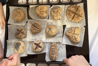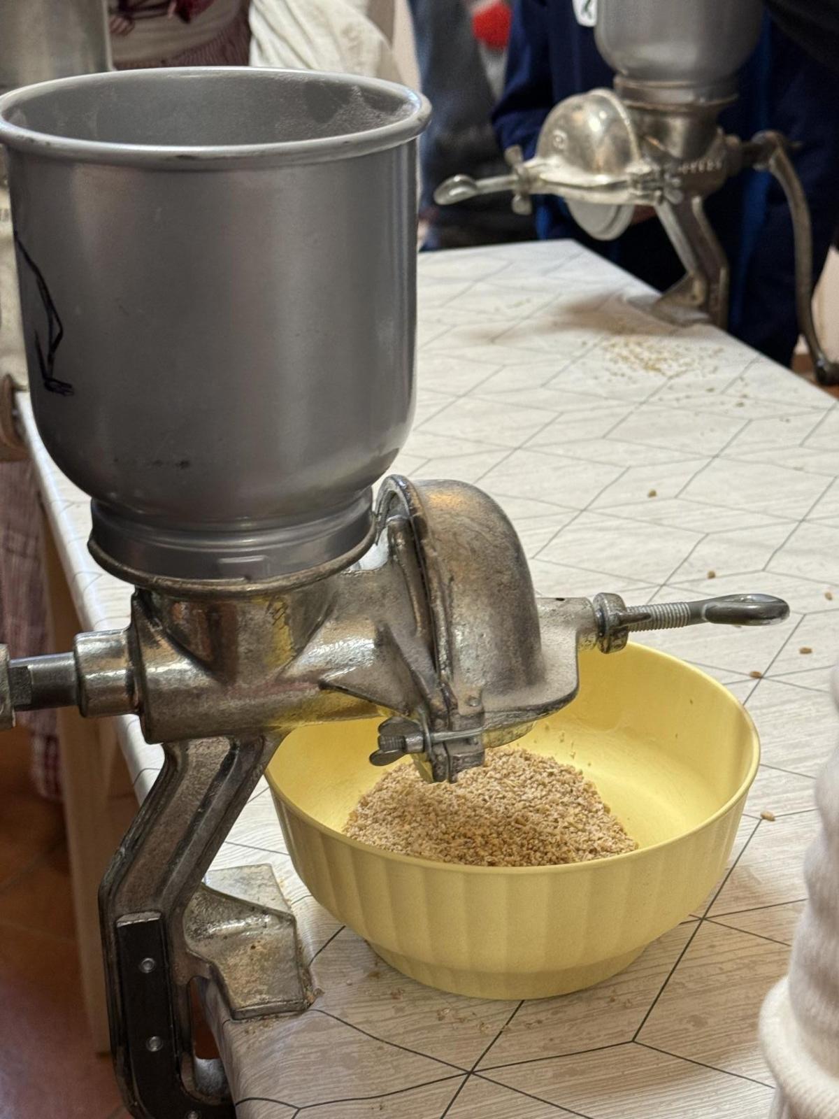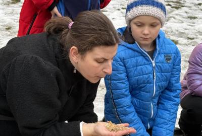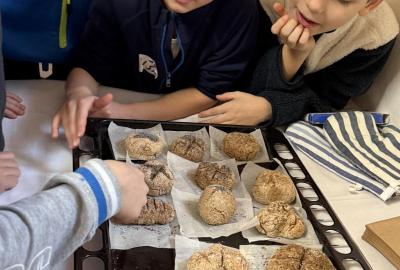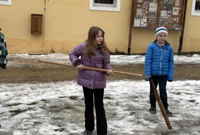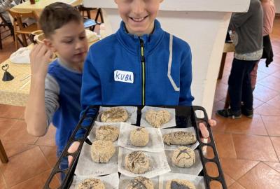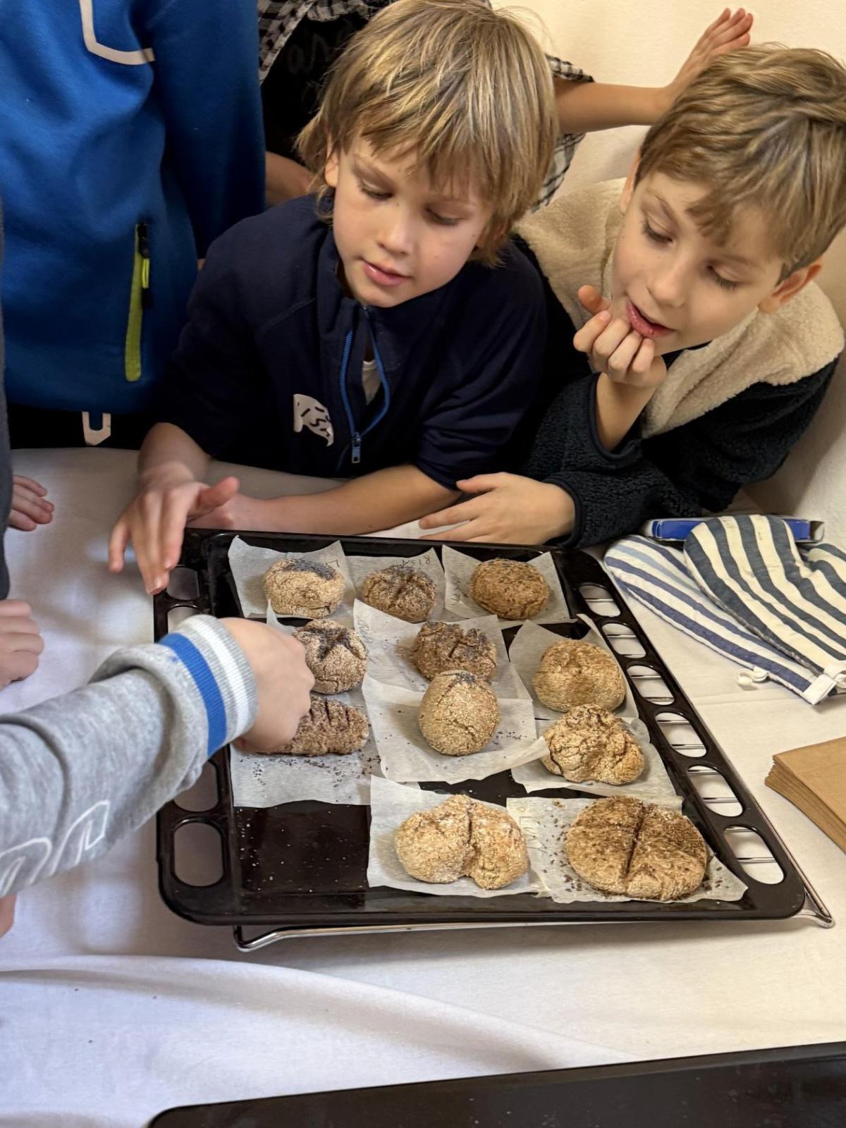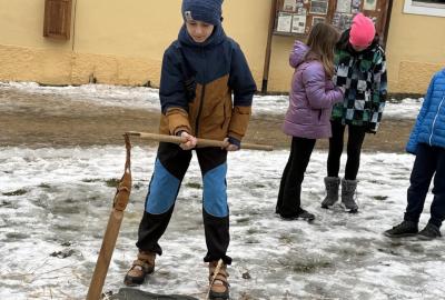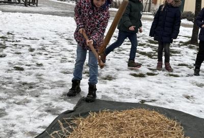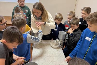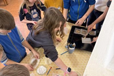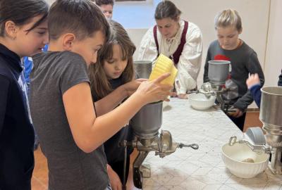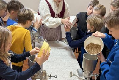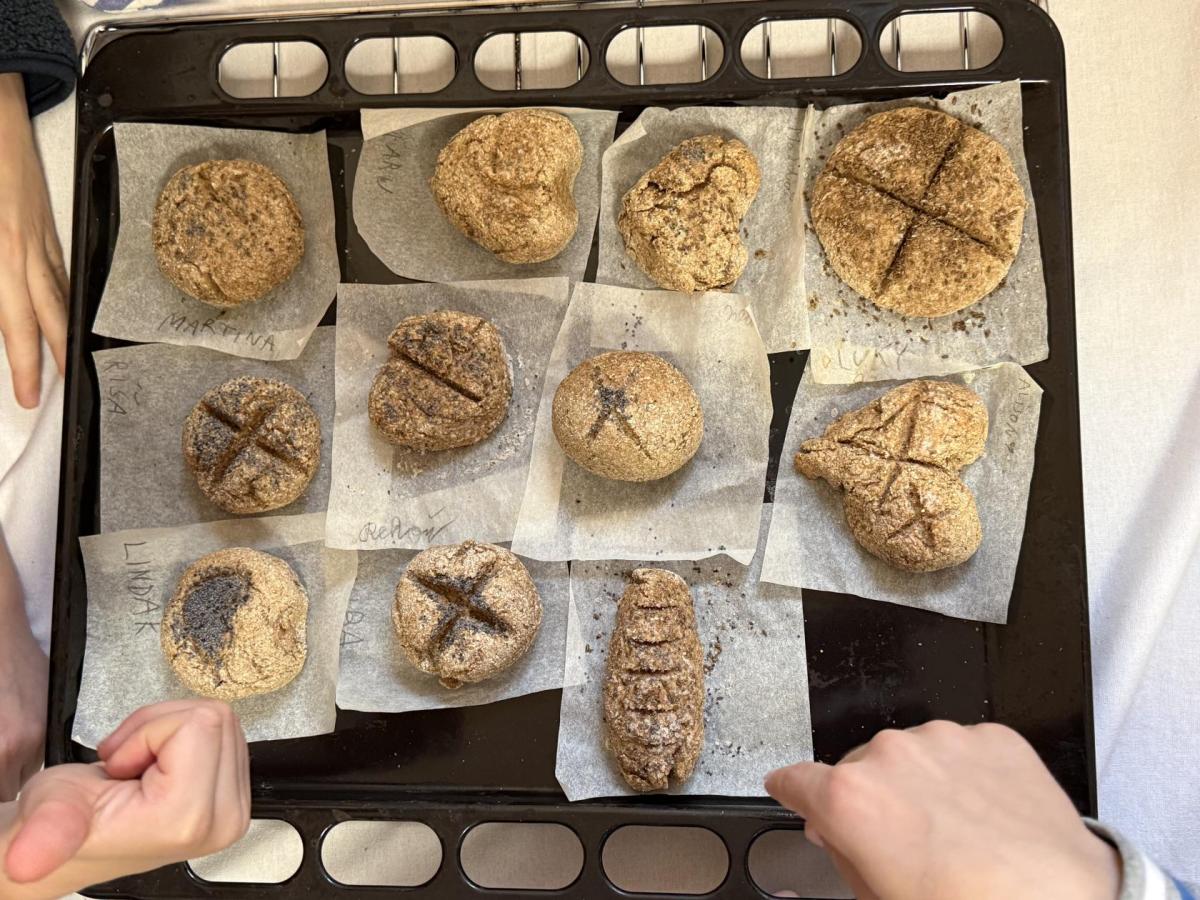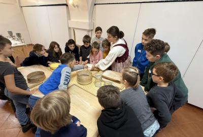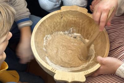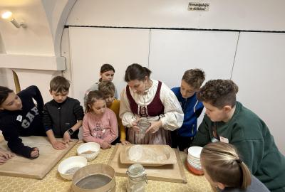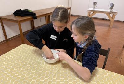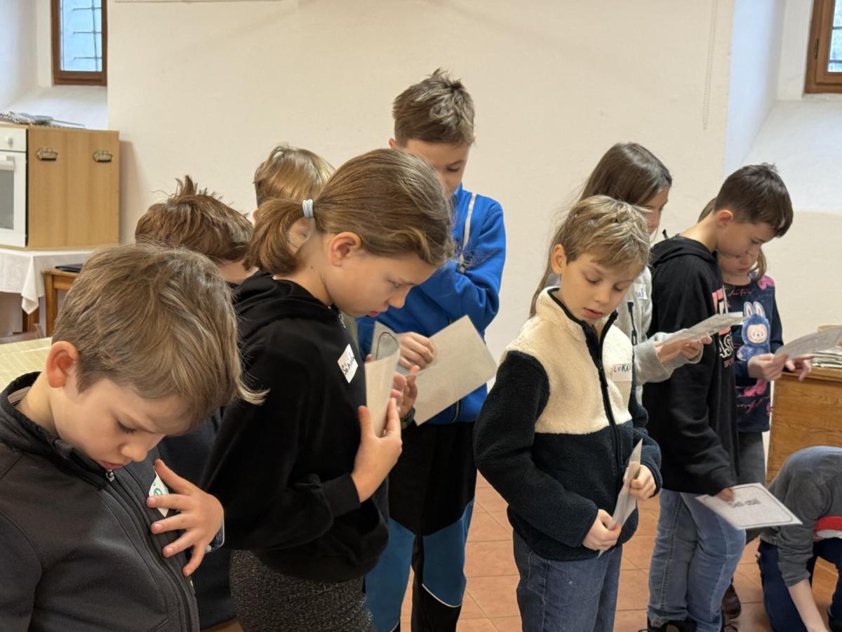 S dětmi jsme se vydali do Toulcova dvora na výukový program Cesta k chlebu, kde si děti mohly vyzkoušet, kolik práce se skrývá za jedním malým bochníkem chleba. Děti se nejprve seznámily, jak se z klasu obilí vymlátí zrno, tedy oddělí zrno od klasu. Následovalo mletí mouky, při kterém si uvědomily, jak je to těžká a poctivá práce. Umletou mouku přesely, aby byla jemná a připravená na samotné pečení. Poté zadělaly na těsto a upekly si svůj vlastní chleba. Některé děti nevydržely a chleba snědly už po cestě do školy. Ve škole jsme si ještě společně vysvětlili poměry surovin, aby si děti dokázaly představit, jak se liší chleba žitný a pšeničný a mohly si přizpůsobit chleba své chuti.