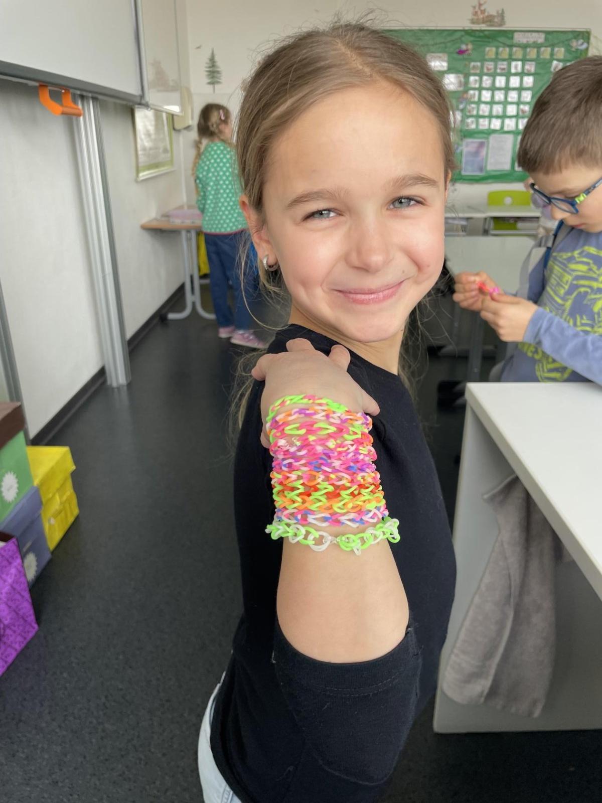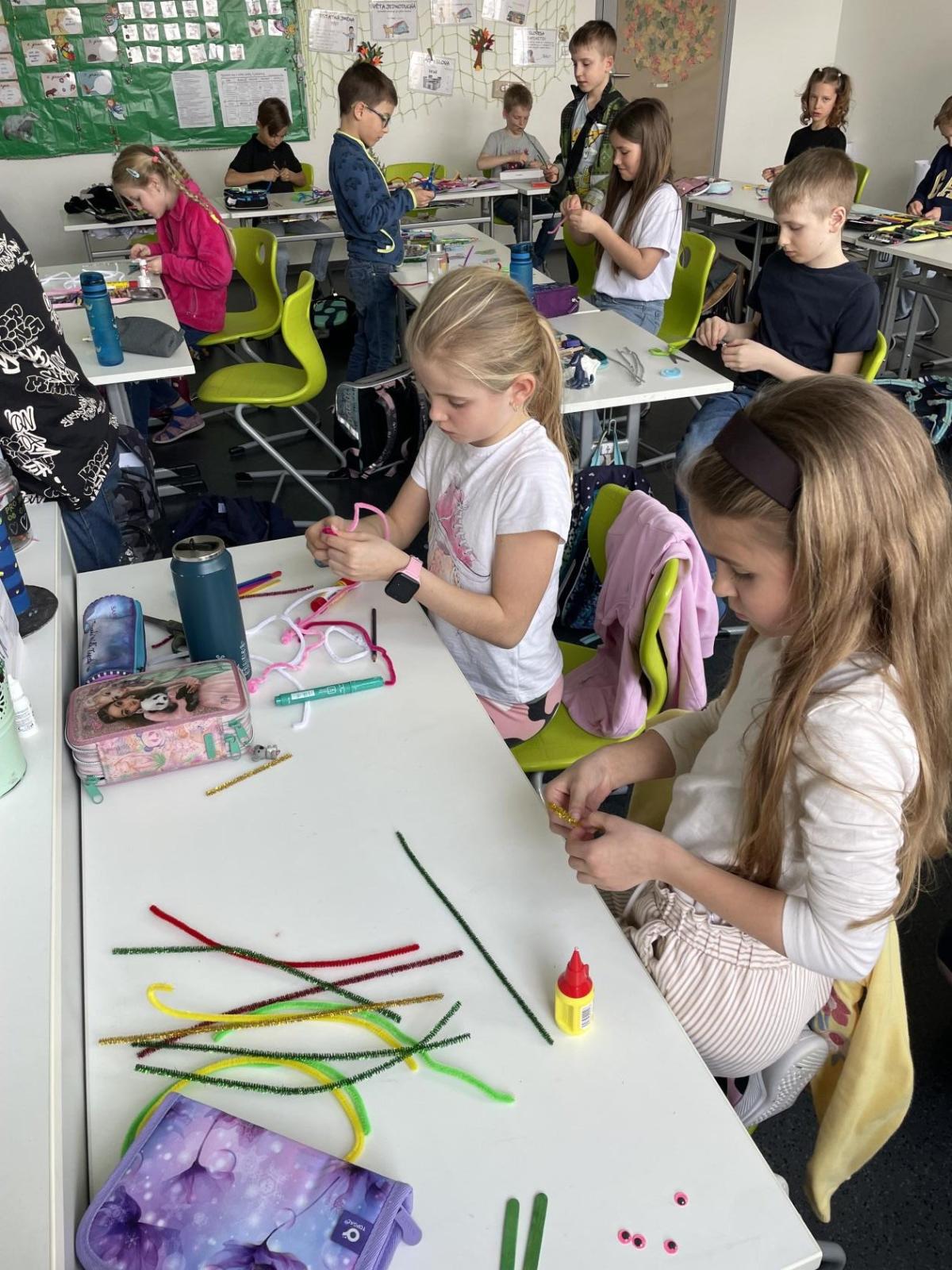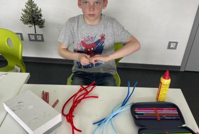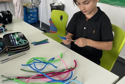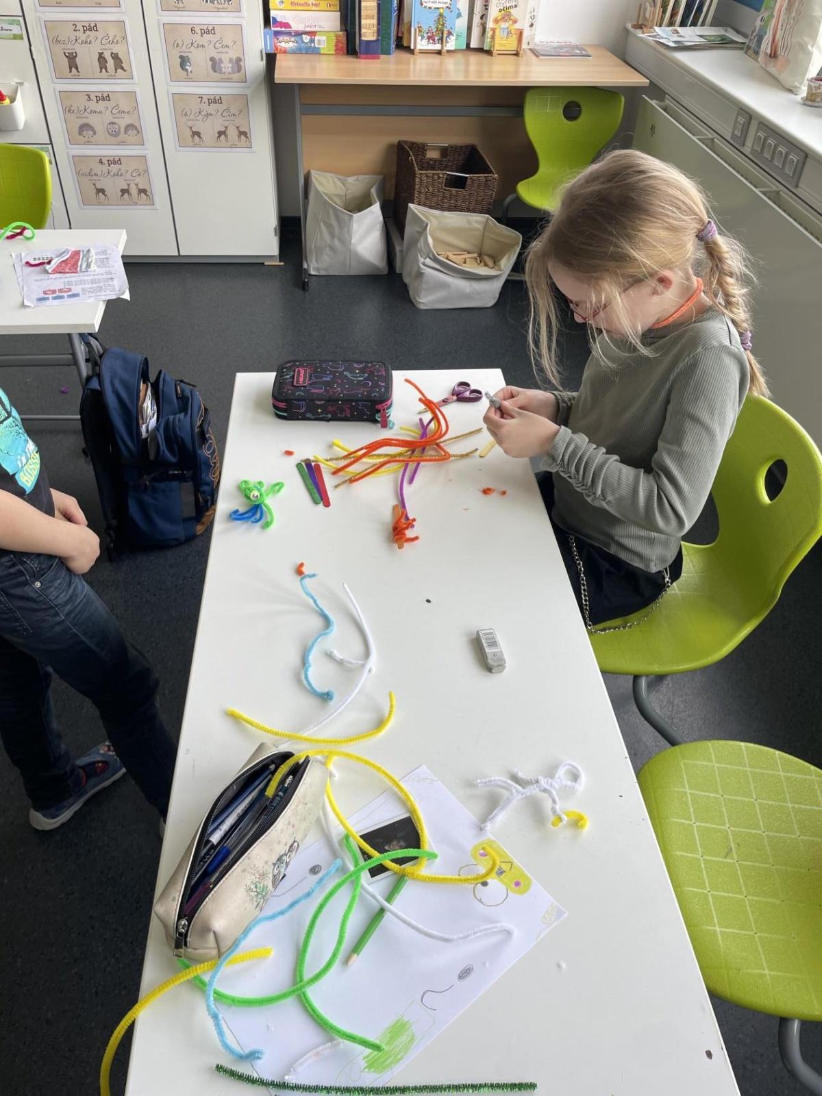 Jednou z oblíbených činností bylo vyrábění náramků z barevných gumiček. Děti si procvičily jemnou motoriku, trpělivost a zároveň si odnesly krásný vlastnoručně vyrobený doplněk. Velký úspěch mělo také tvoření z barevných drátků, kdy děti popustily uzdu fantazii a vytvářely originální tvary i dekorace.