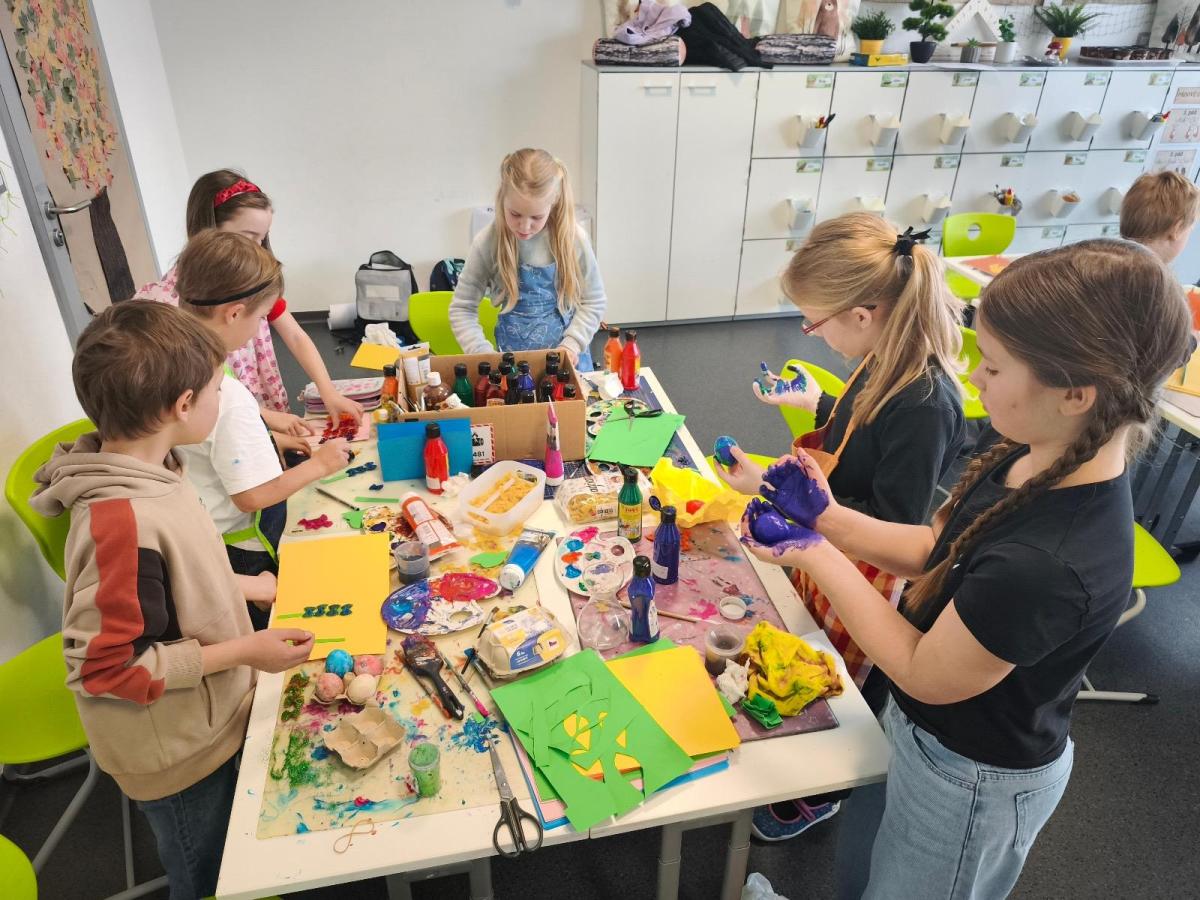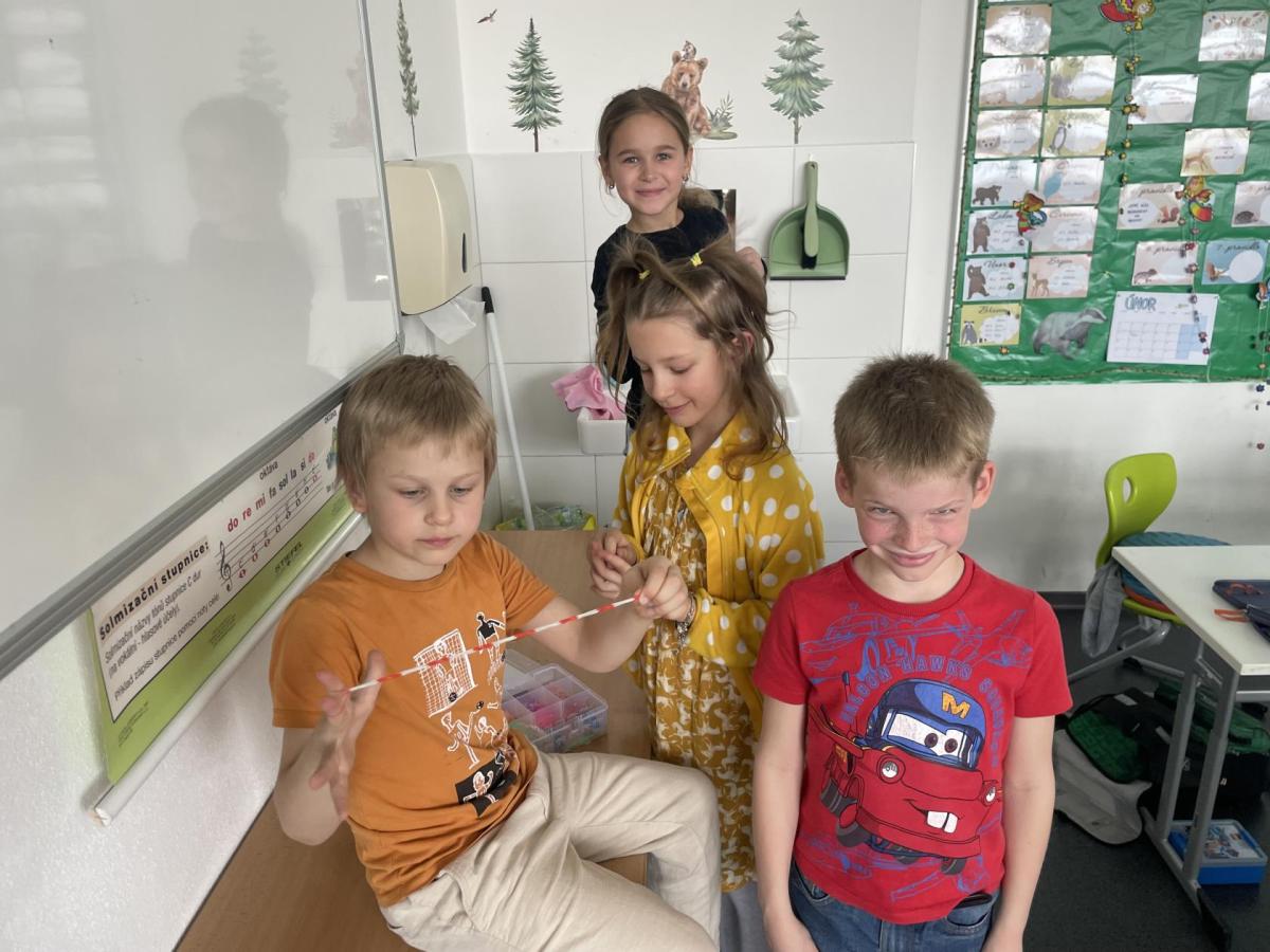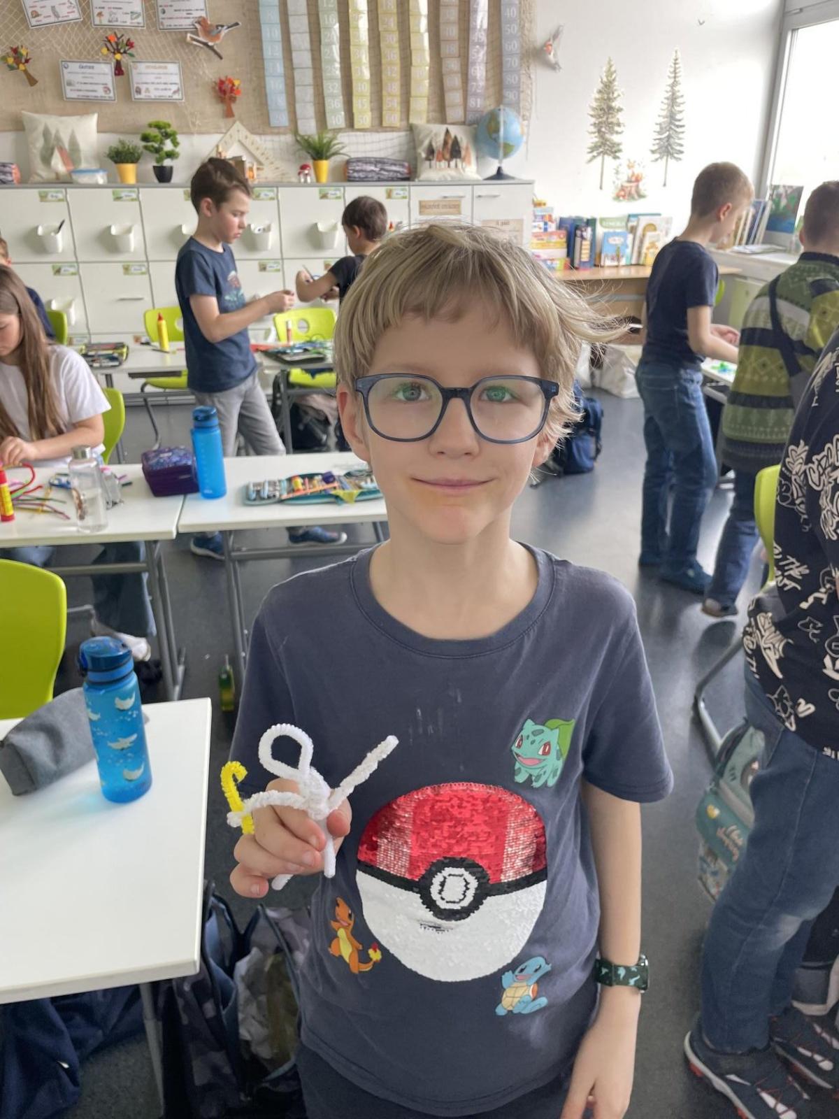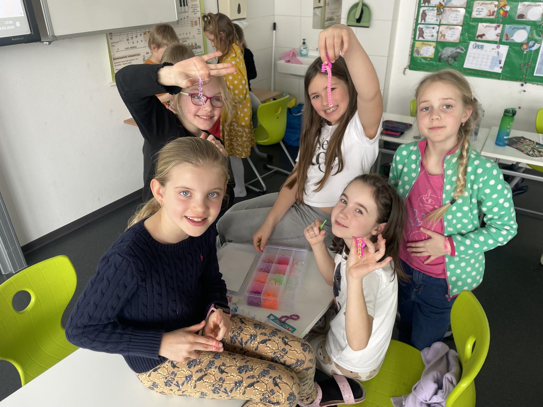 Jednou z oblíbených činností bylo vyrábění náramků z barevných gumiček. Děti si procvičily jemnou motoriku, trpělivost a zároveň si odnesly krásný vlastnoručně vyrobený doplněk. Velký úspěch mělo také tvoření z barevných drátků, kdy děti popustily uzdu fantazii a vytvářely originální tvary i dekorace.