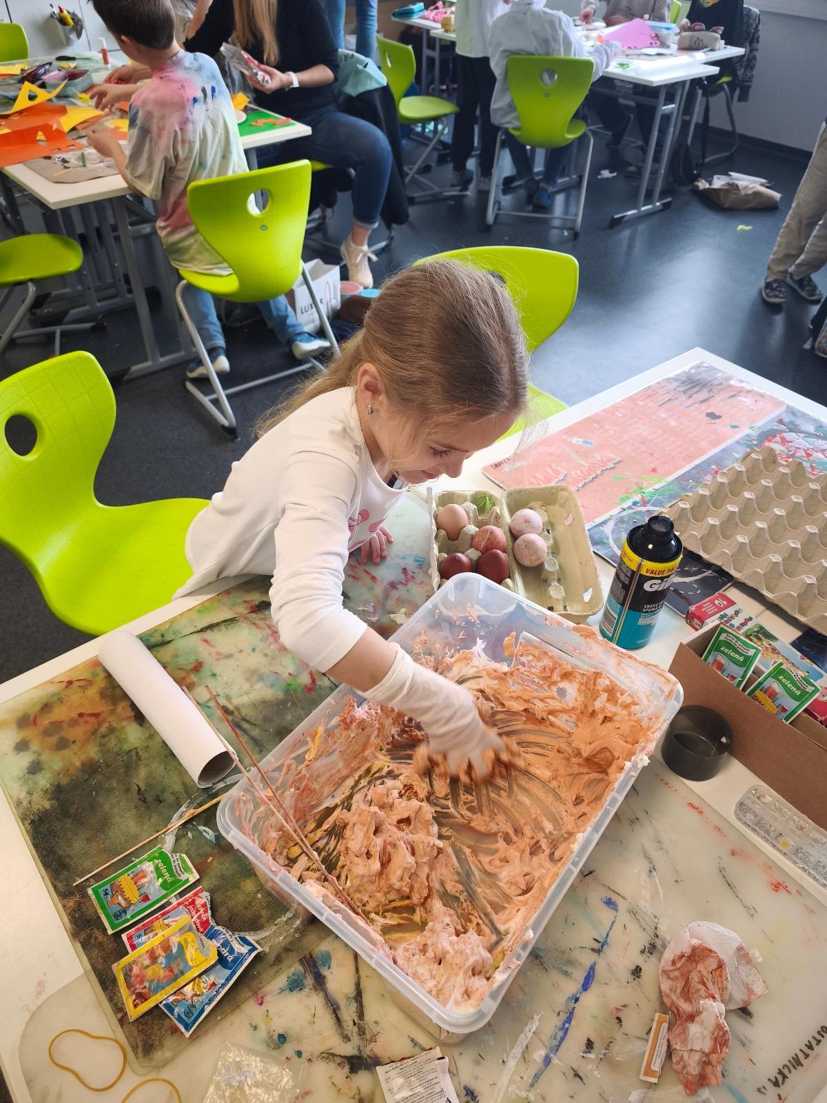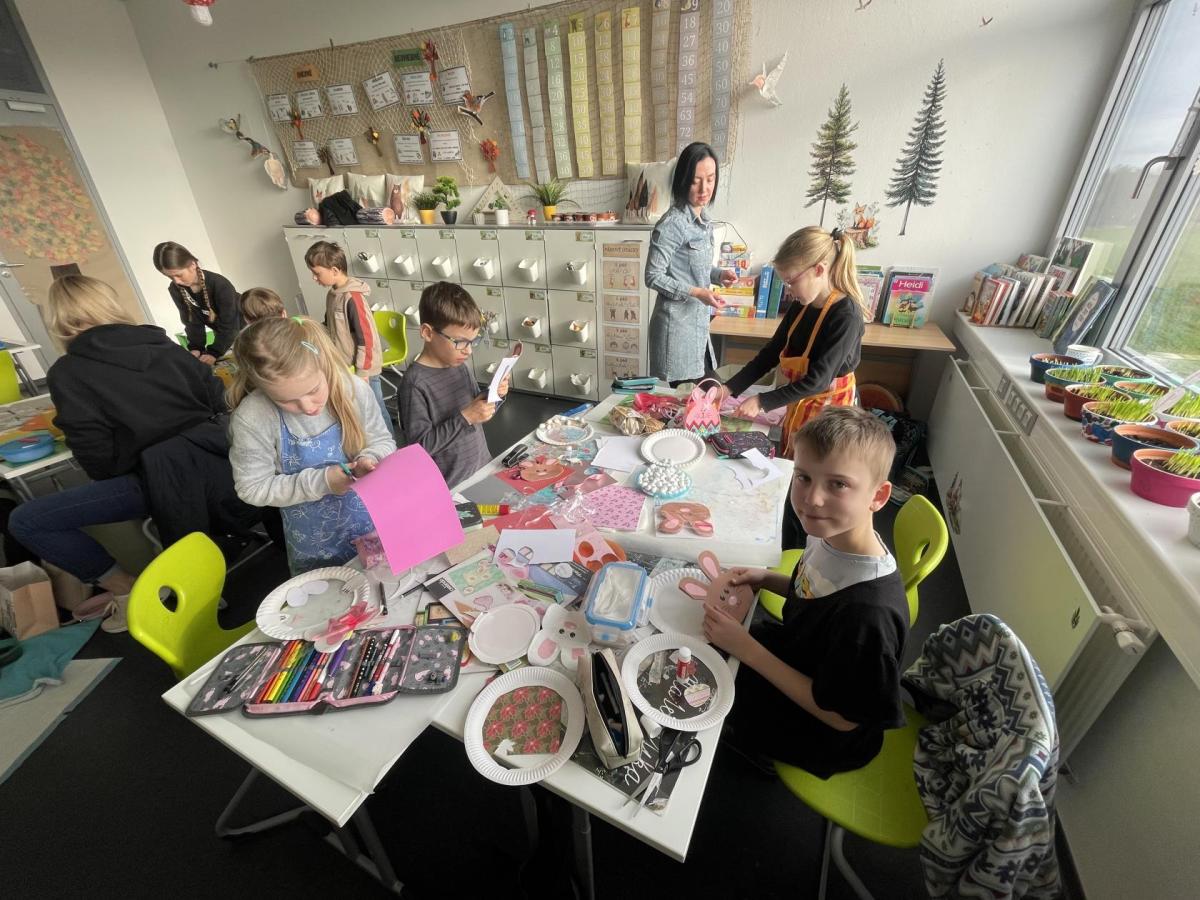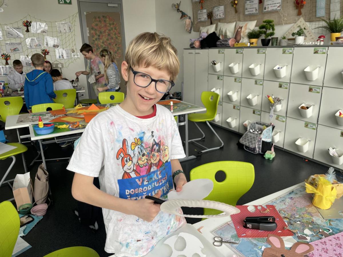 Vrcholnou akcí našeho březnového tvoření byly velikonoční tvořivé dílny, na kterých se k nám připojili i rodiče. Velmi si vážíme pomoci paní Bušové, Hubové, pana Petráše a Milfaitových, kteří se aktivně zapojili a pomohli vytvořit příjemnou a přátelskou atmosféru.