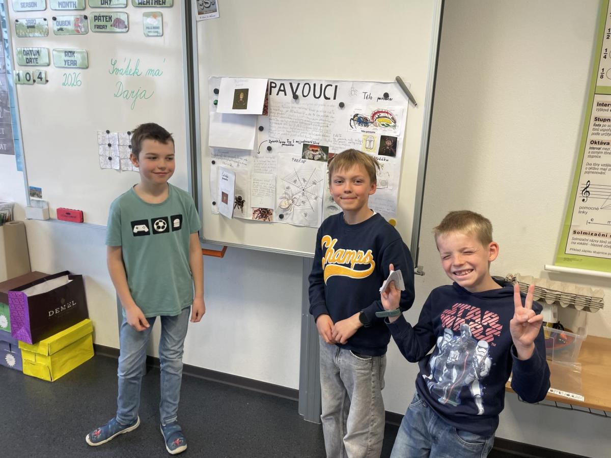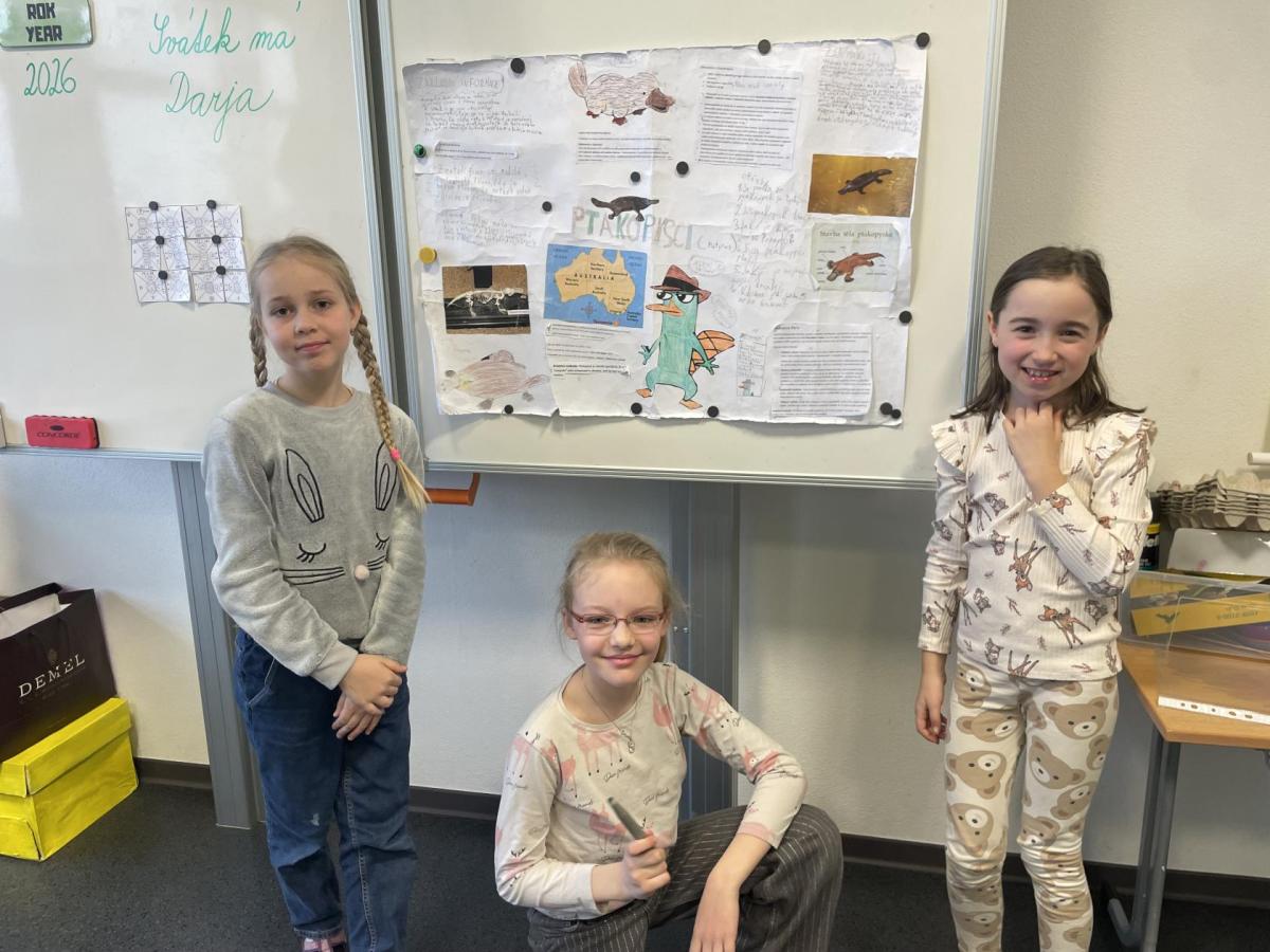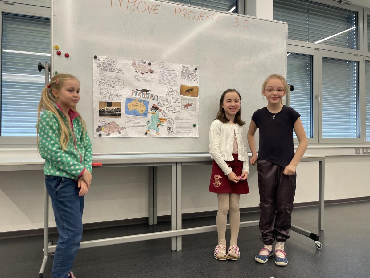 Největší úspěch měla nakonec skupinka ve složení Terka, Ema a Mája s projektem na téma PTAKOPYSK. Jejich práce zaujala nejen obsahem, ale i způsobem prezentace.