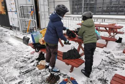 Tělocvik začíná! Nasazujeme brusle, helmy a rukavice, a učitelka Anna Sacha připomíná všechny zásady bezpečného chování na umělém kluzišti.
