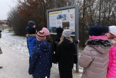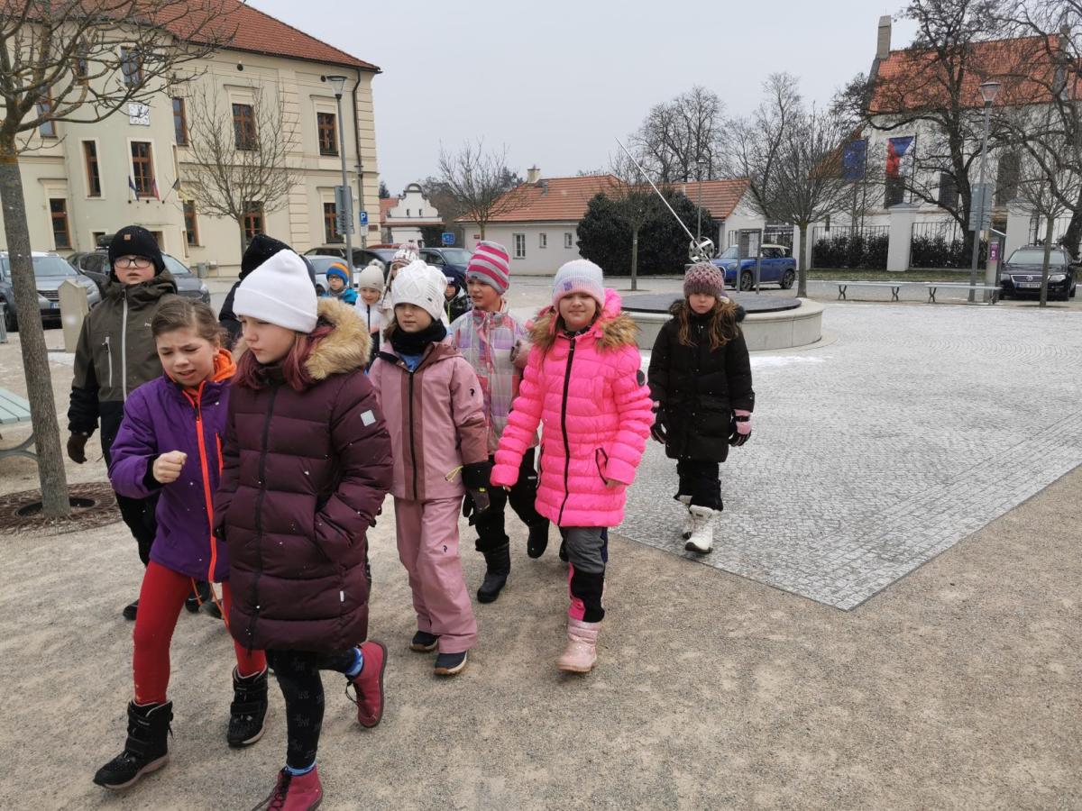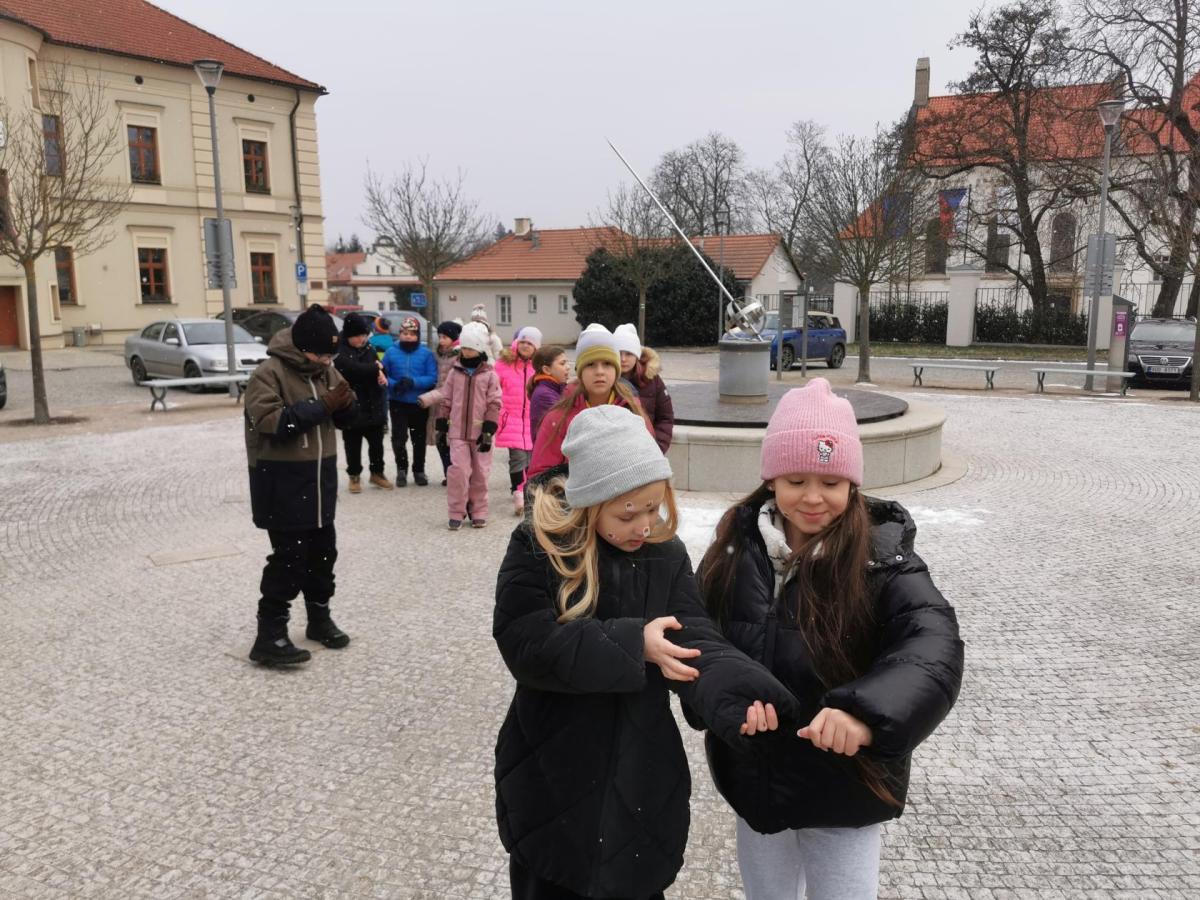 Procházka vedla přes náměstí V. Michalika, kde se nacházejí sluneční hodiny. Dozvěděli jsme se, že tento způsob měření času pochází už ze starověku, který se na území Čech neodehrával.