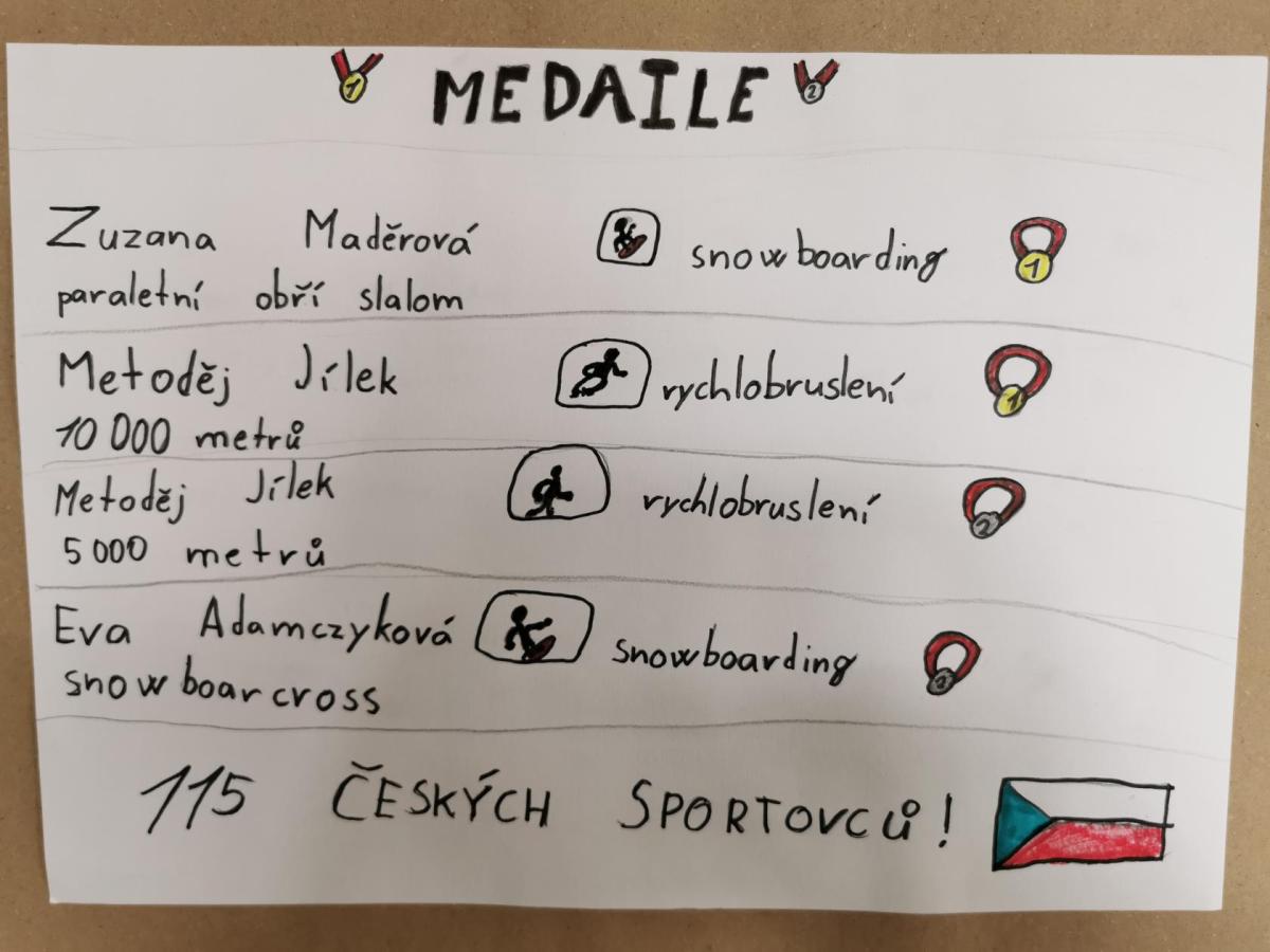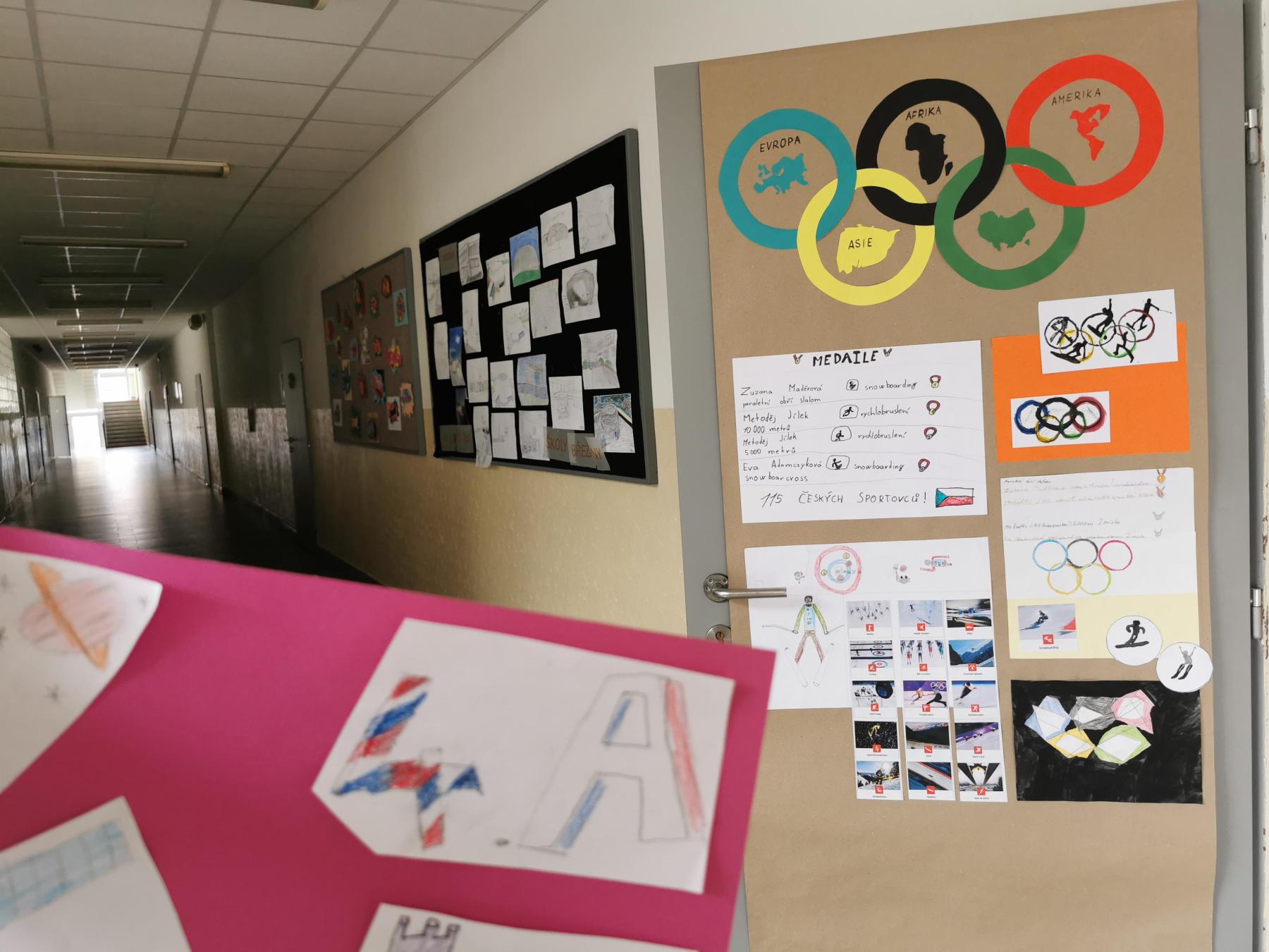 Titulní fotografie mluví za vše – otevřené dveře do naší třídy a na nich přehled medailových stavů zimních olympijských her v Itálii.