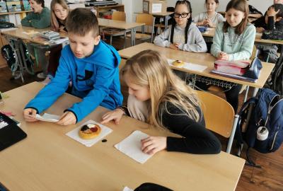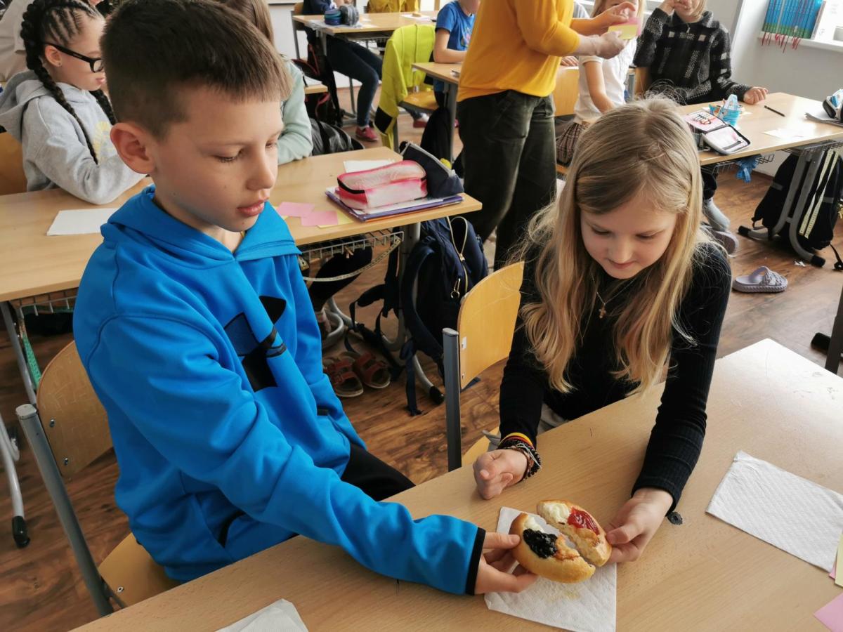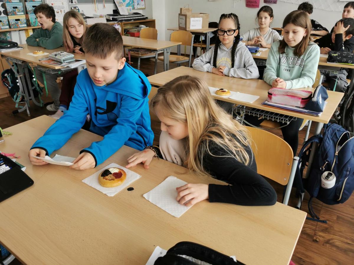 Masopust a s ním nové téma v matice – zlomky. Celek jsme nelámali jen obrazně, ale i doslova. Koláček se stal názornou pomůckou a zlomky najednou dávaly smysl. Rozklad čísla, když znám řád čísel, tak je opravdová hračka.