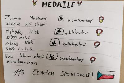 Čteme s porozuměním a luštíme tajenku o zimních sportech, v matematice počítáme nejen příklady, ale i medaile, které získávají čeští olympionici. Na letošní XXV. zimní olympijské hry vyrazilo 115 českých sportovců, a tak máme o čísla postaráno – rozkládáme je, sčítáme, dělíme i rýsujeme.