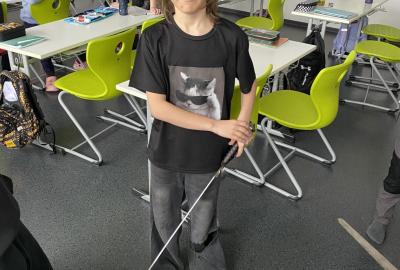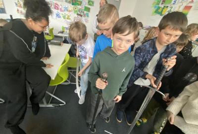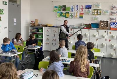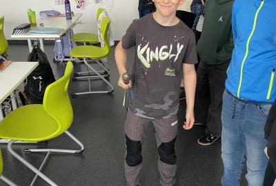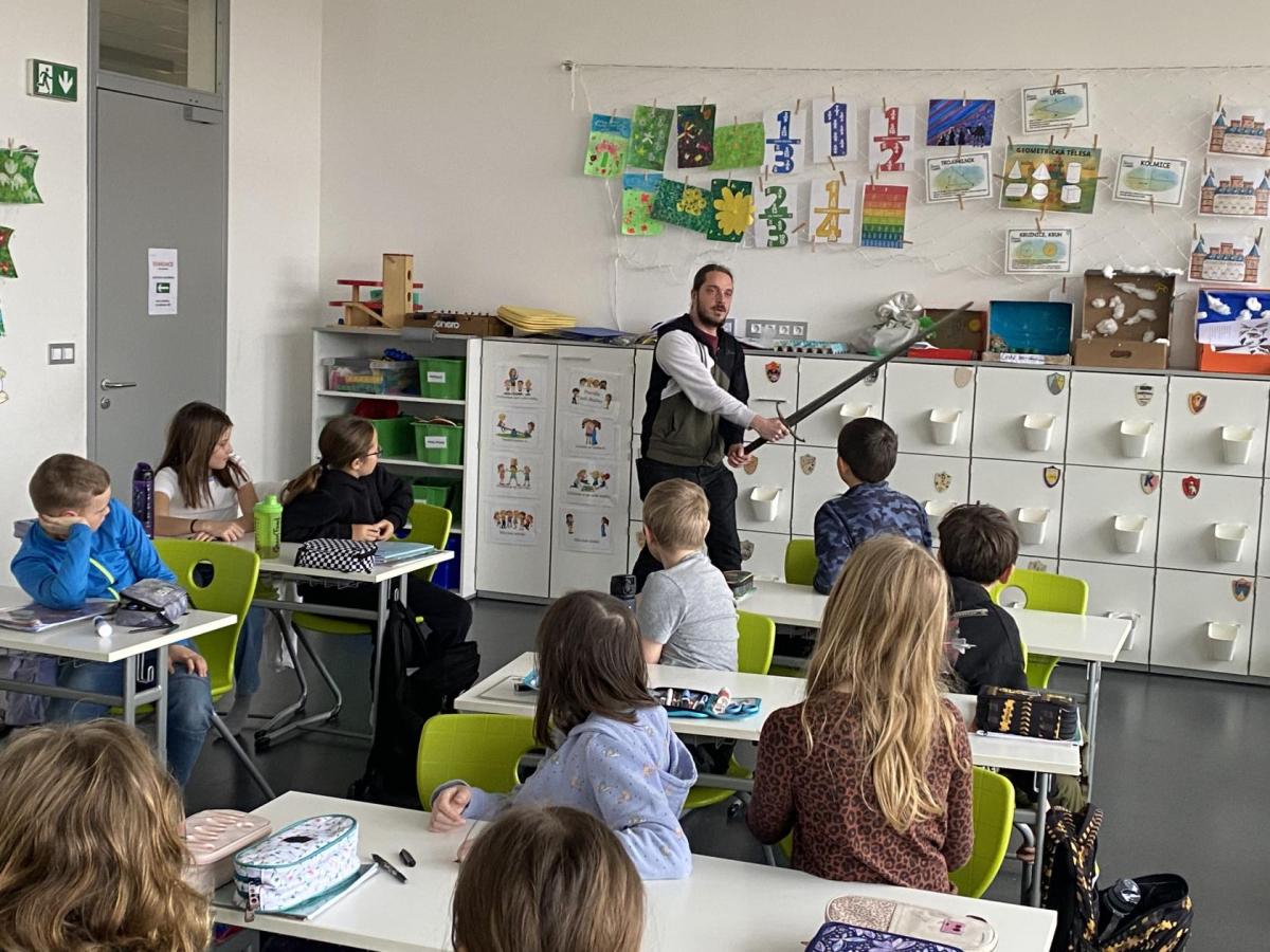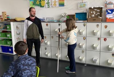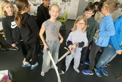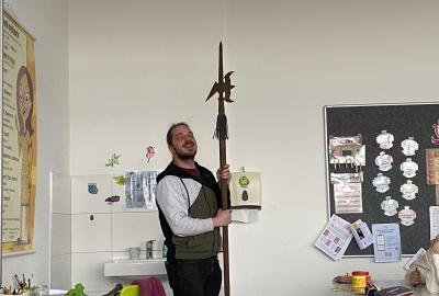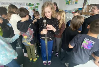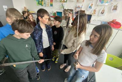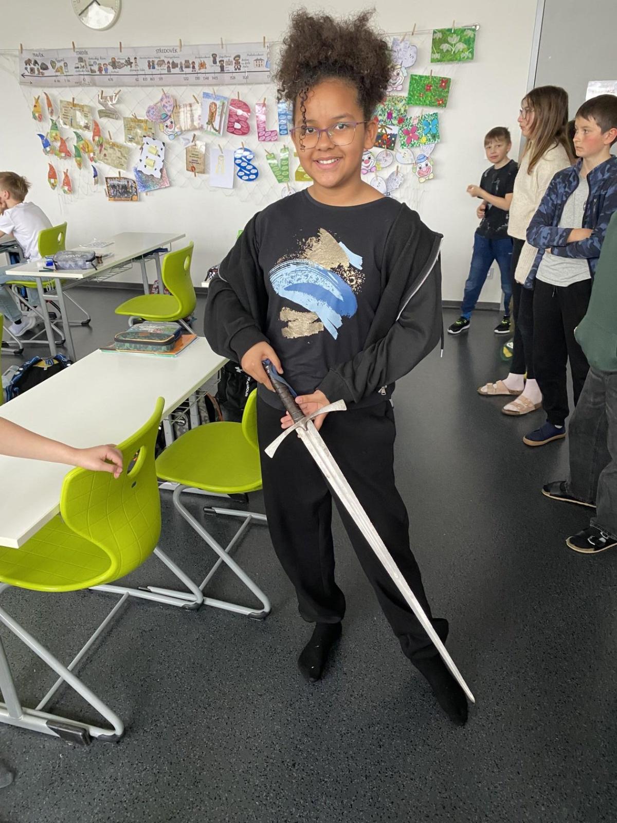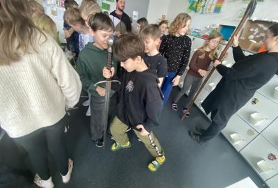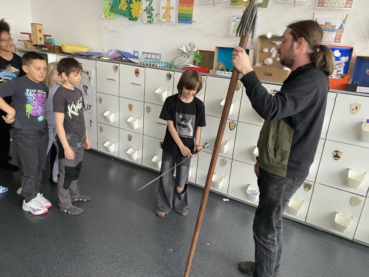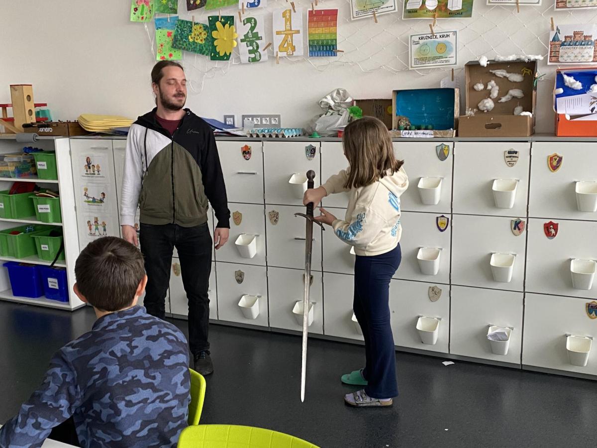 V naší třídě jsme zažili netradiční a velmi zajímavé zpestření výuky. Navštívil nás šermíř, který dětem přiblížil svět historických zbraní a rytířských soubojů.