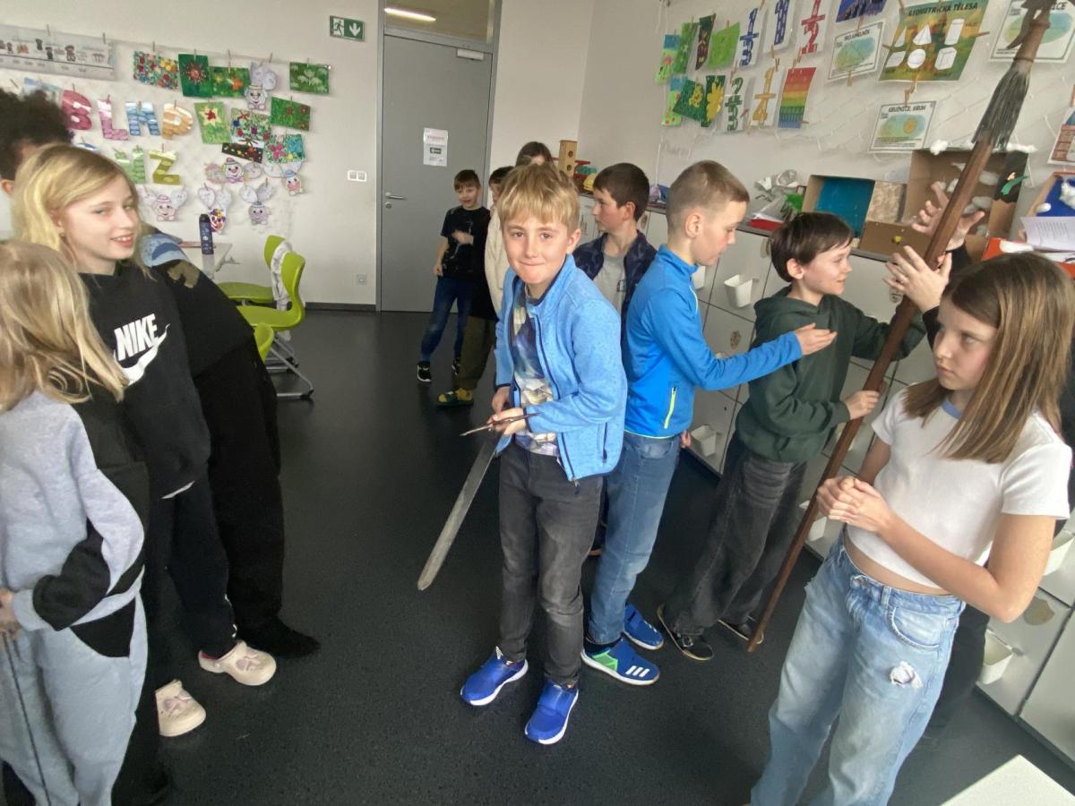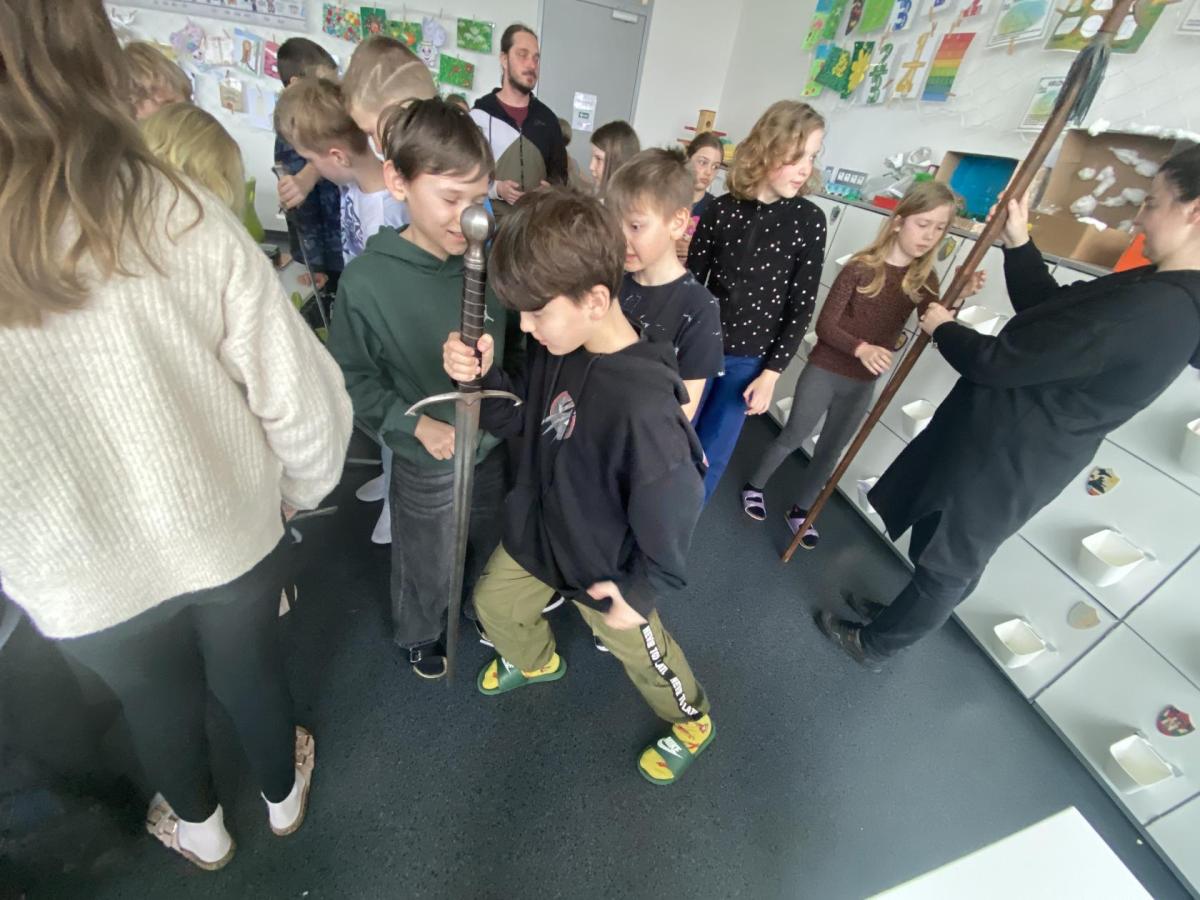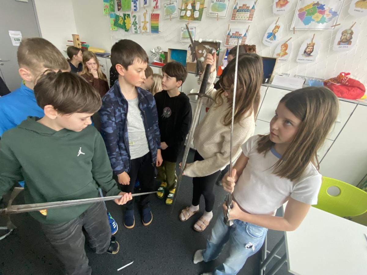 Během poutavého vyprávění se žáci dozvěděli mnoho zajímavostí o životě rytířů, jejich výzbroji i o tom, jak se v minulosti bojovalo. Měli možnost vidět různé druhy historických zbraní, dozvědět se, k čemu sloužily, a některé si dokonce mohli zblízka prohlédnout.