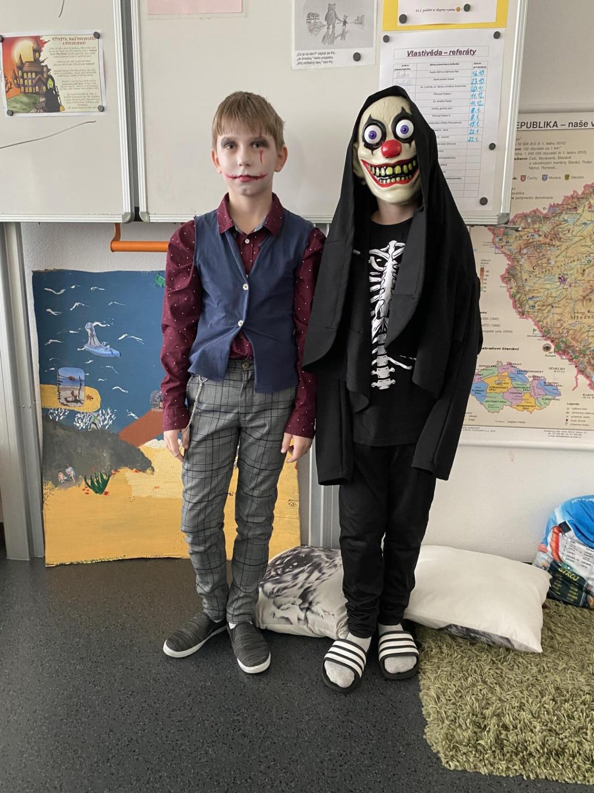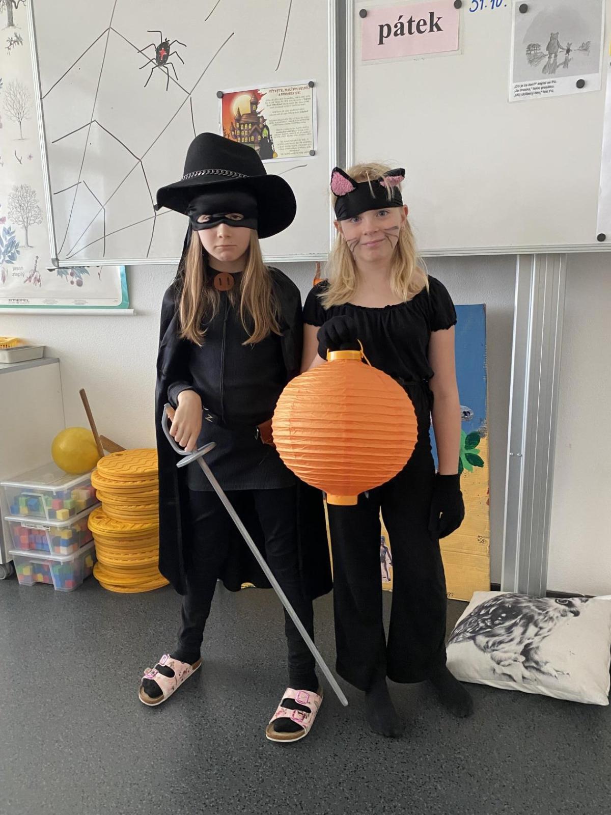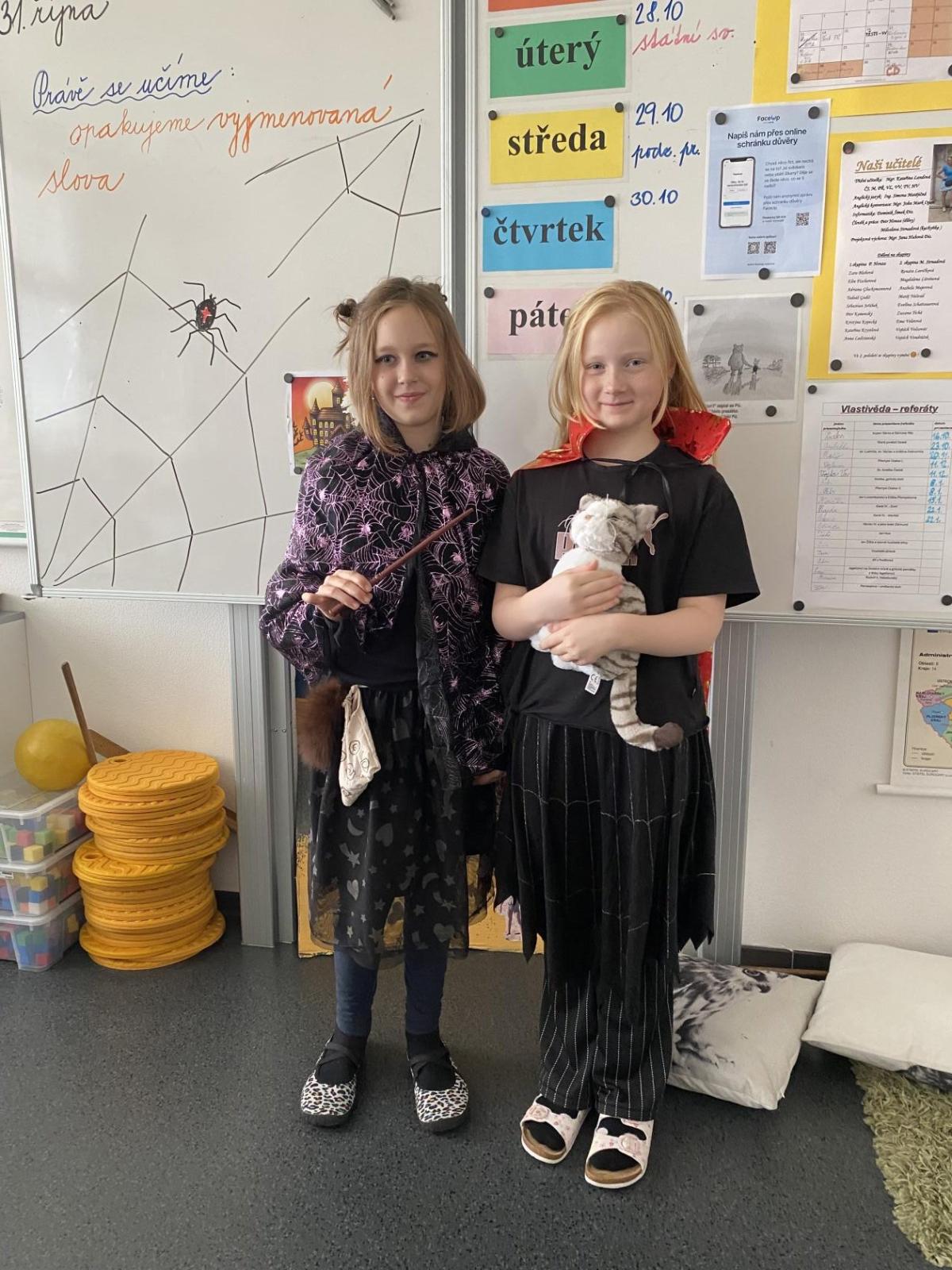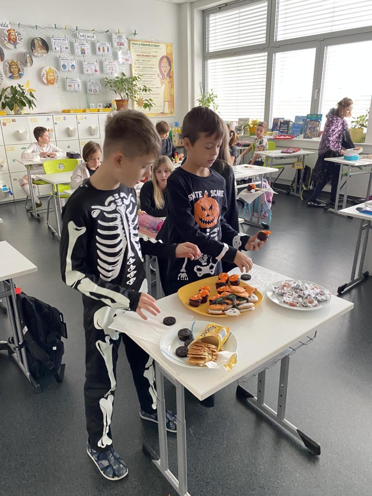 I tentokrát jsme pustili za dveře dávné Kelty a 31. říjen pojali jako jejich svátek s historií sahající až do doby před naším letopočtem. Hranici mezi létem a zimou, hranici mezi světem živých a mrtvých. My jsme u nás ve třídě zahráli na tu veselejší notu. Převlékli jsme se do rozpustile strašidelných kostýmů, plnili úkoly únikové hry, abychom vysvobodili naši paní učitelku z čarodějnického zakletí a pochutnali si na pravé halloweenské pochoutce! Nesměli jsme samozřejmě vynechat ani školní povinnosti - opakování vyjmenovaných slov, až se kostlivcům kosti třásly a trénovali jsme také rýsování kolmic a rovnoběžek, až z toho mumii povolily obvazy! Dnes dopoledne jsme si na Halloween jen zahráli, ale večer mnohé z nás čeká lampionový průvod vesnicí a v neděli potom tichá vzpomínka a zapálení svíček za všechny, které stále nosíme v našich srdcích, i když už tu s námi nejsou.
