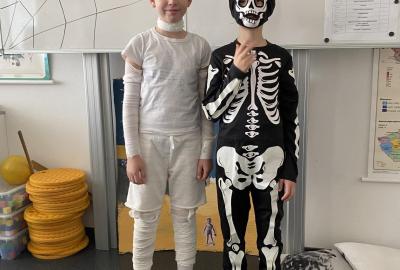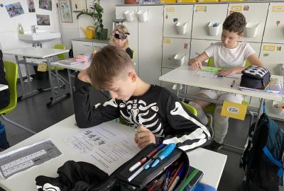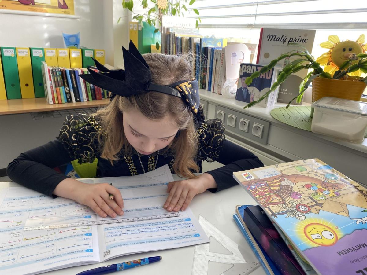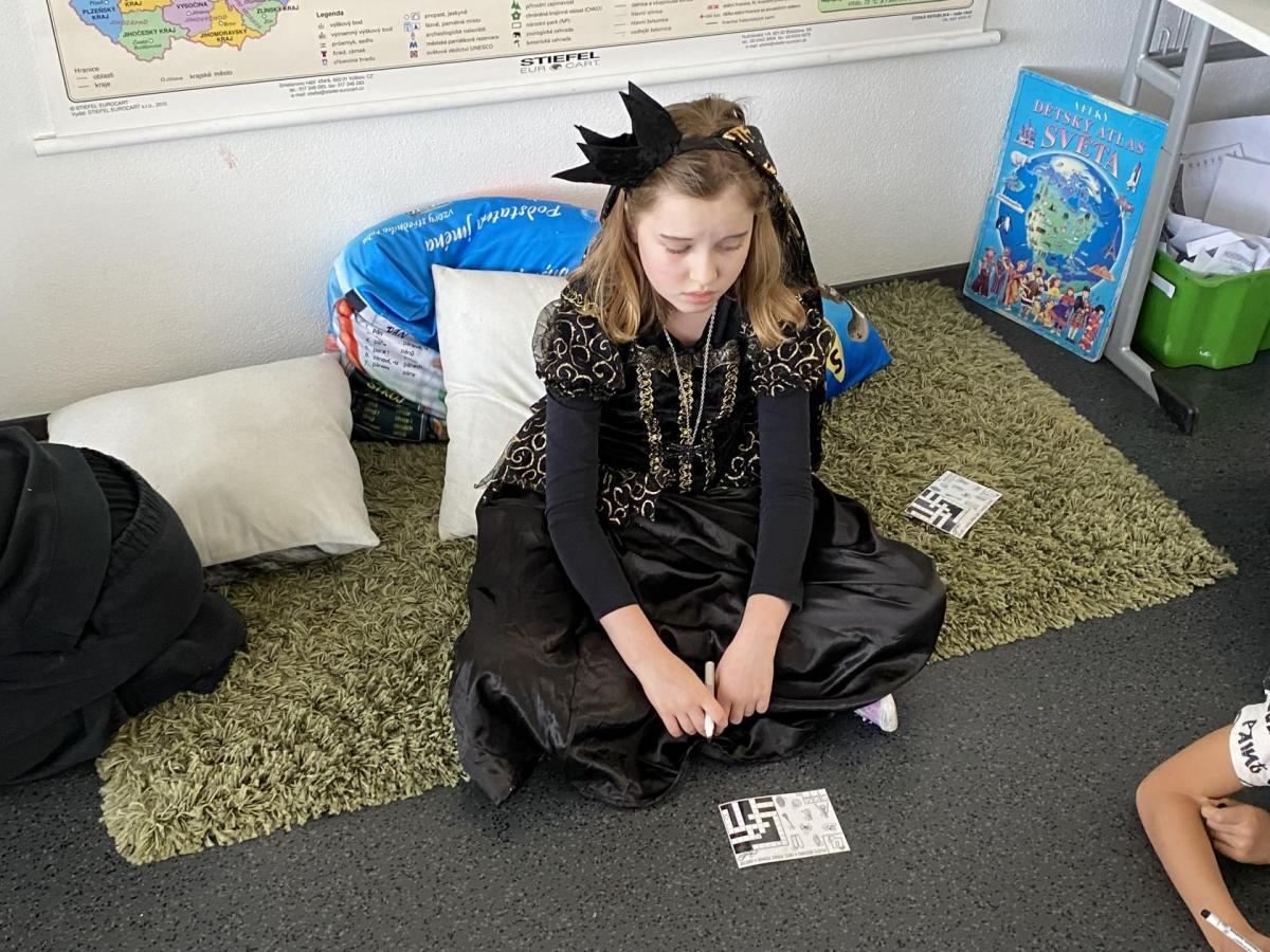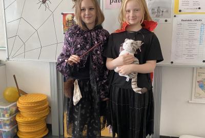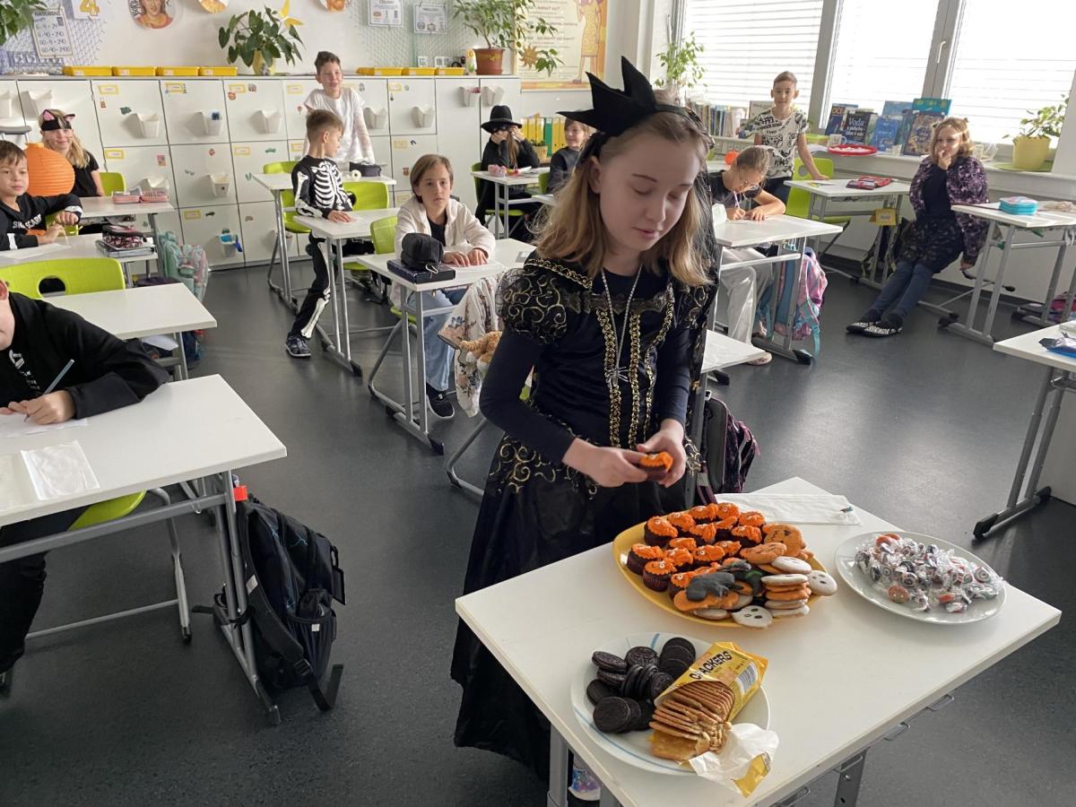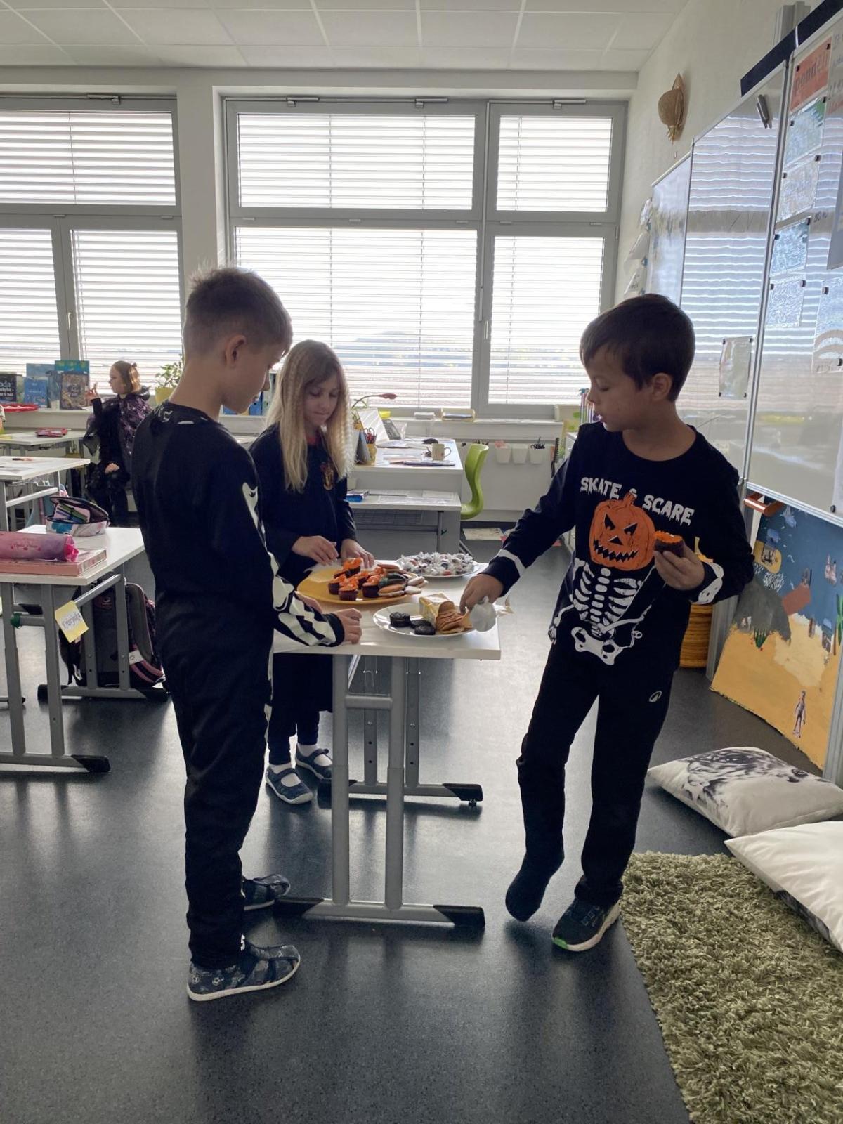 I tentokrát jsme pustili za dveře dávné Kelty a 31. říjen pojali jako jejich svátek s historií sahající až do doby před naším letopočtem. Hranici mezi létem a zimou, hranici mezi světem živých a mrtvých. My jsme u nás ve třídě zahráli na tu veselejší notu. Převlékli jsme se do rozpustile strašidelných kostýmů, plnili úkoly únikové hry, abychom vysvobodili naši paní učitelku z čarodějnického zakletí a pochutnali si na pravé halloweenské pochoutce! Nesměli jsme samozřejmě vynechat ani školní povinnosti - opakování vyjmenovaných slov, až se kostlivcům kosti třásly a trénovali jsme také rýsování kolmic a rovnoběžek, až z toho mumii povolily obvazy! Dnes dopoledne jsme si na Halloween jen zahráli, ale večer mnohé z nás čeká lampionový průvod vesnicí a v neděli potom tichá vzpomínka a zapálení svíček za všechny, které stále nosíme v našich srdcích, i když už tu s námi nejsou.