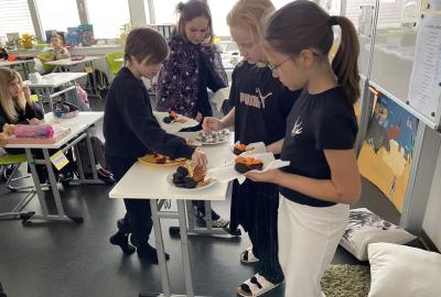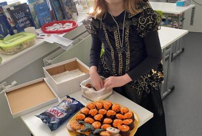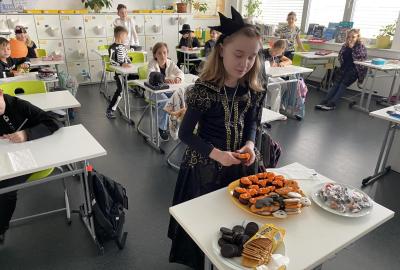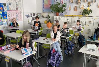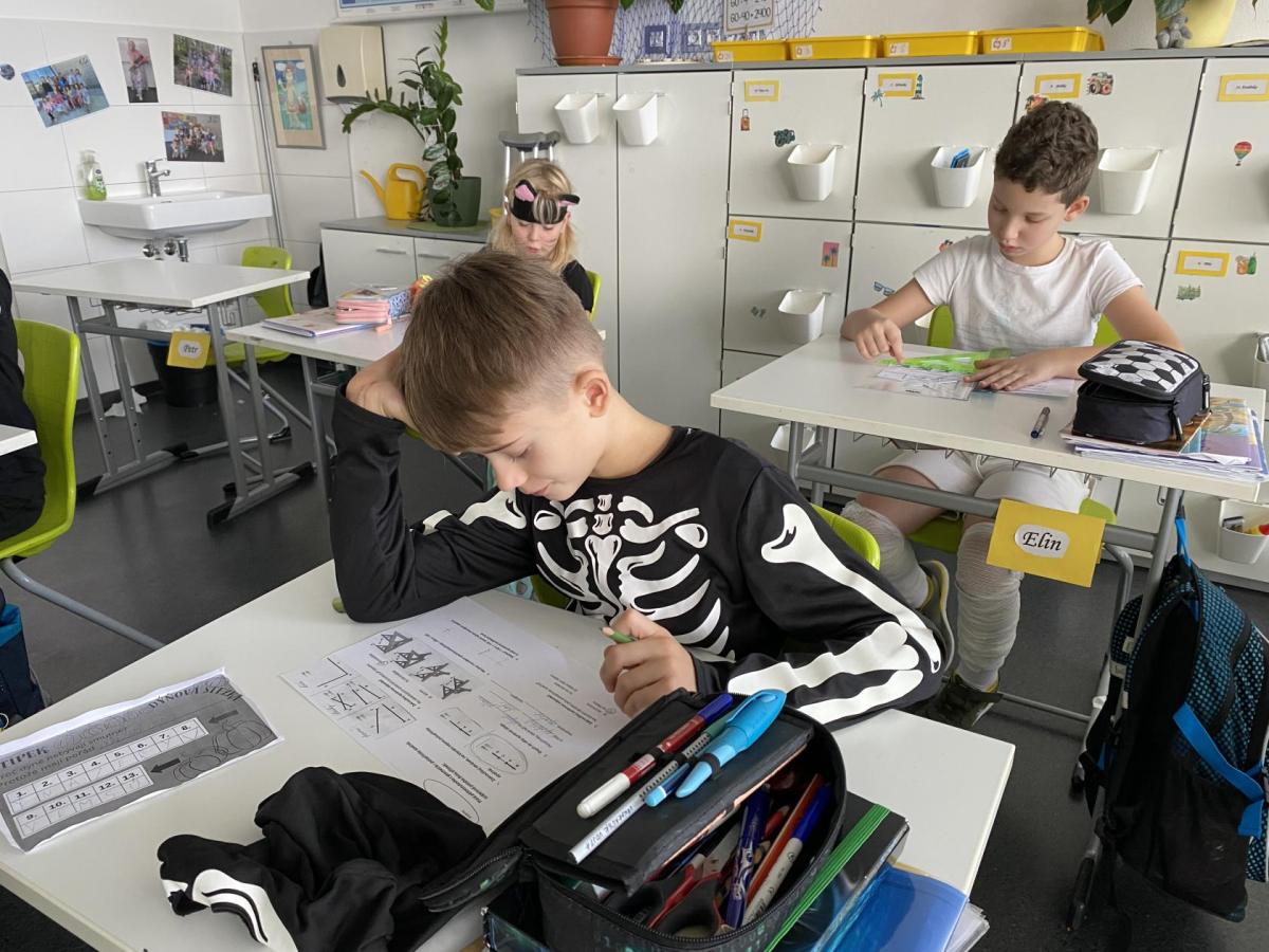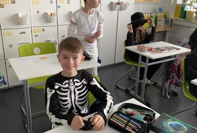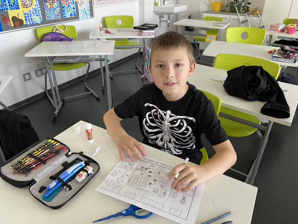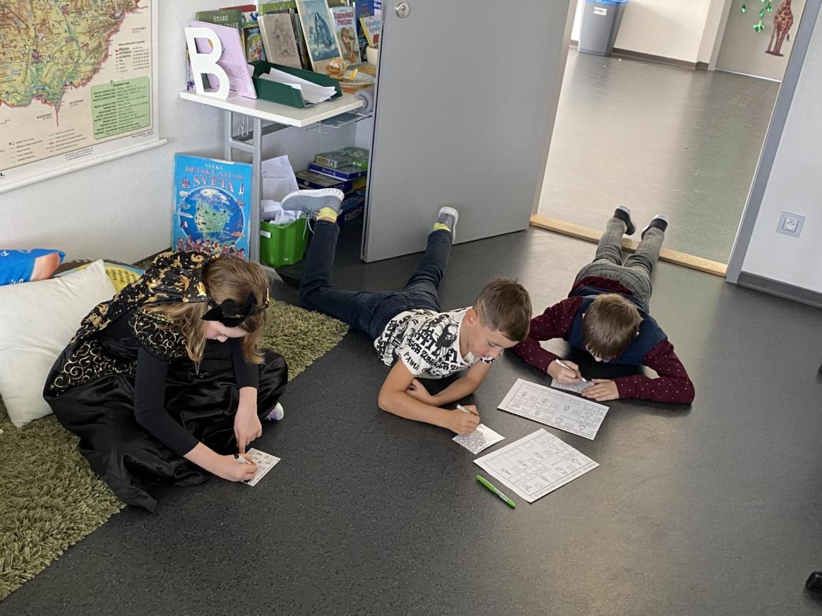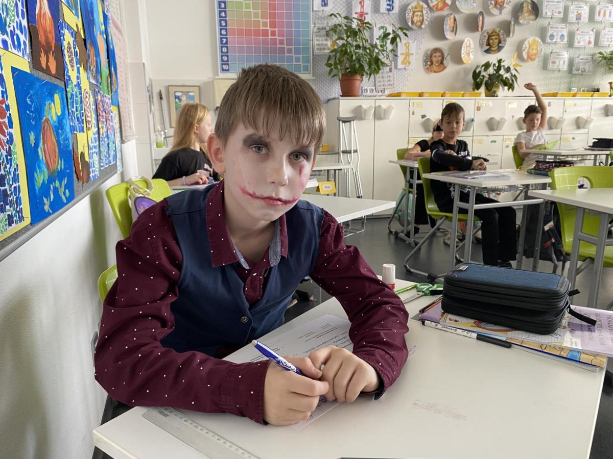 I tentokrát jsme pustili za dveře dávné Kelty a 31. říjen pojali jako jejich svátek s historií sahající až do doby před naším letopočtem. Hranici mezi létem a zimou, hranici mezi světem živých a mrtvých. My jsme u nás ve třídě zahráli na tu veselejší notu. Převlékli jsme se do rozpustile strašidelných kostýmů, plnili úkoly únikové hry, abychom vysvobodili naši paní učitelku z čarodějnického zakletí a pochutnali si na pravé halloweenské pochoutce! Nesměli jsme samozřejmě vynechat ani školní povinnosti - opakování vyjmenovaných slov, až se kostlivcům kosti třásly a trénovali jsme také rýsování kolmic a rovnoběžek, až z toho mumii povolily obvazy! Dnes dopoledne jsme si na Halloween jen zahráli, ale večer mnohé z nás čeká lampionový průvod vesnicí a v neděli potom tichá vzpomínka a zapálení svíček za všechny, které stále nosíme v našich srdcích, i když už tu s námi nejsou.