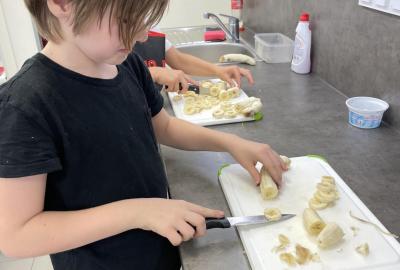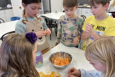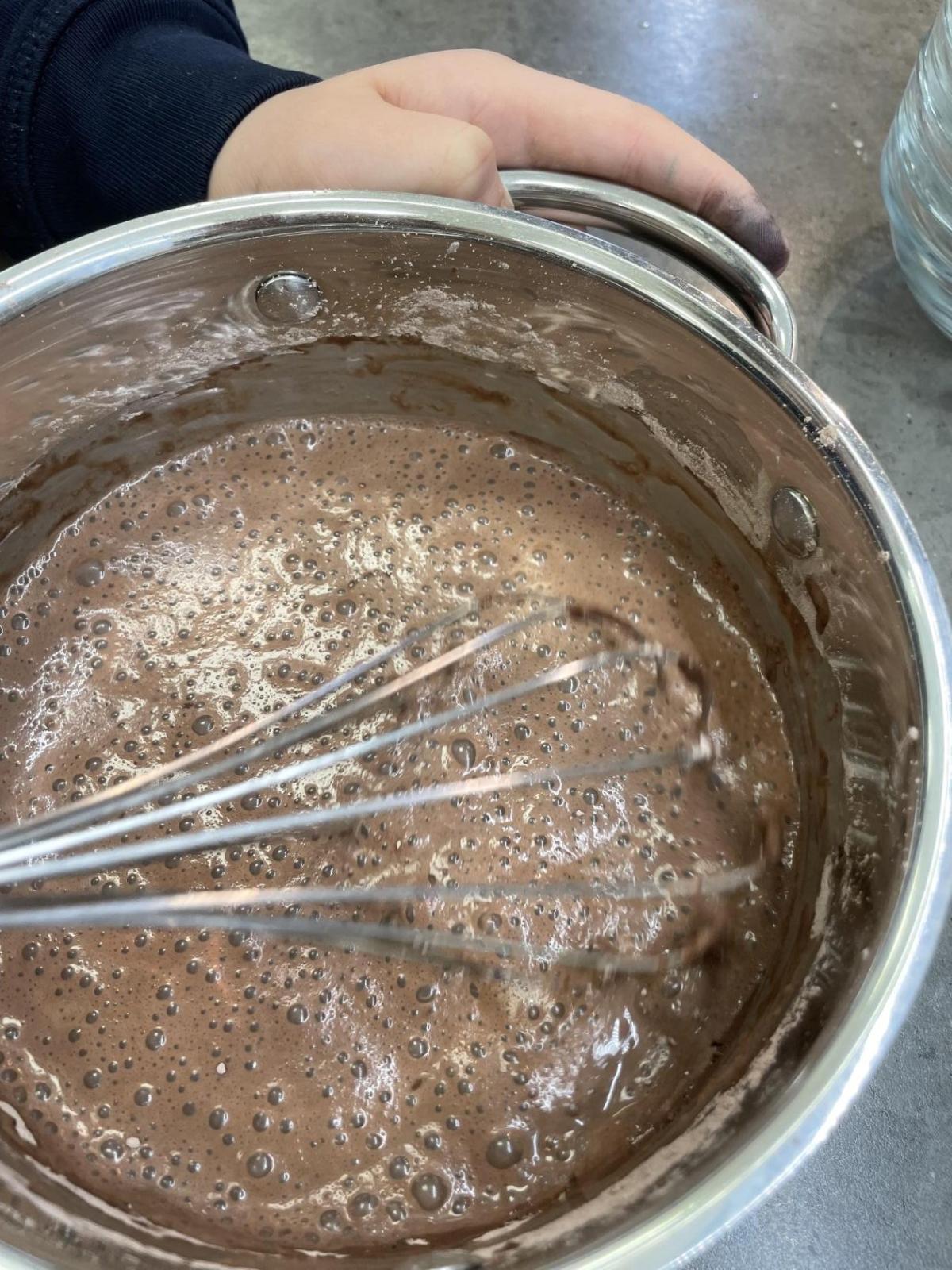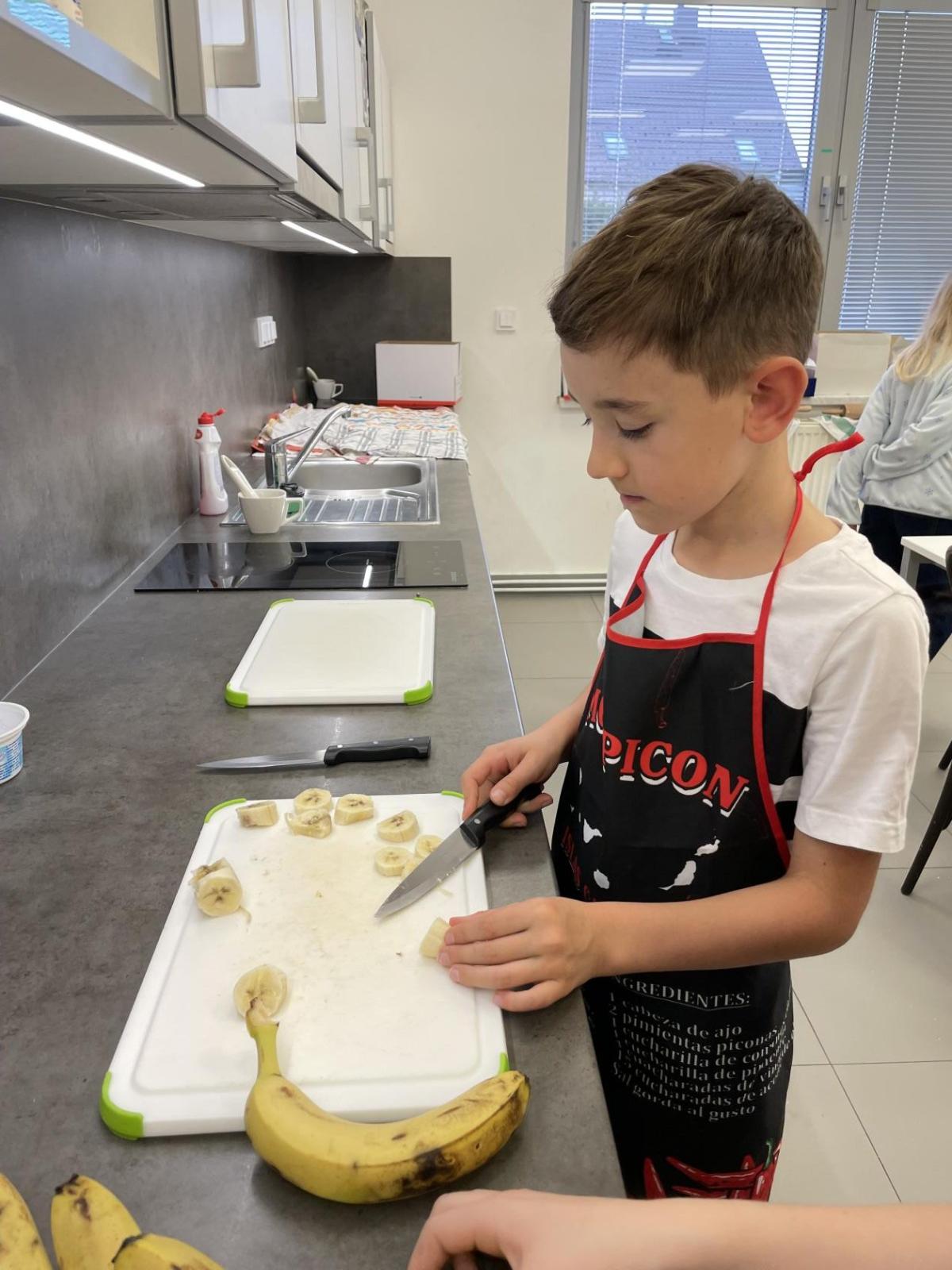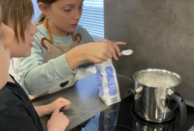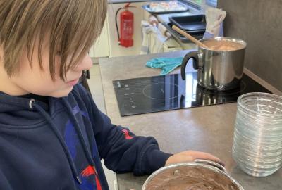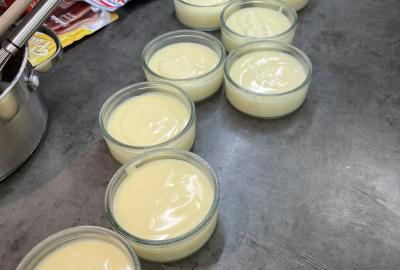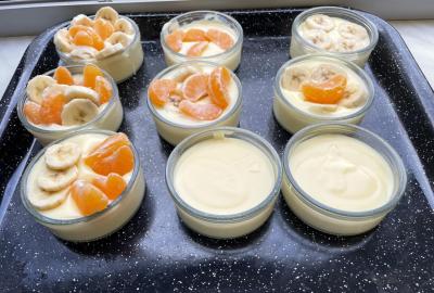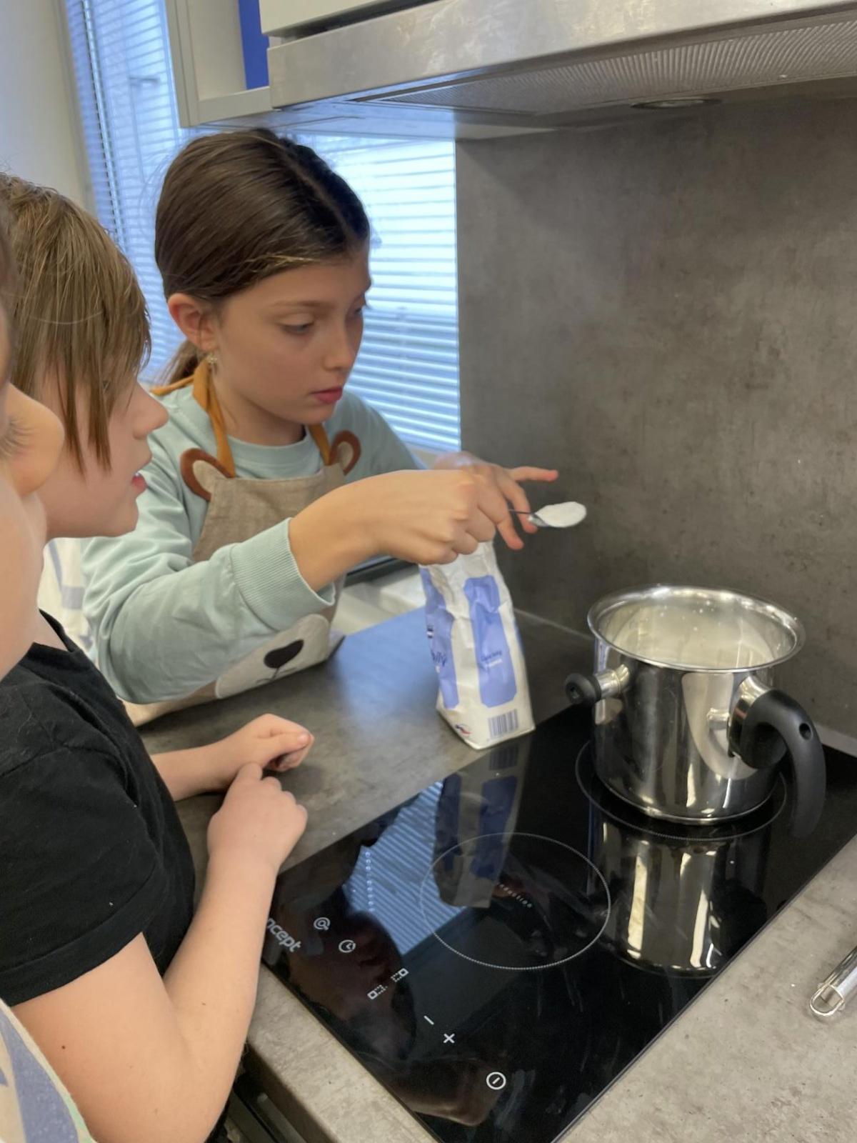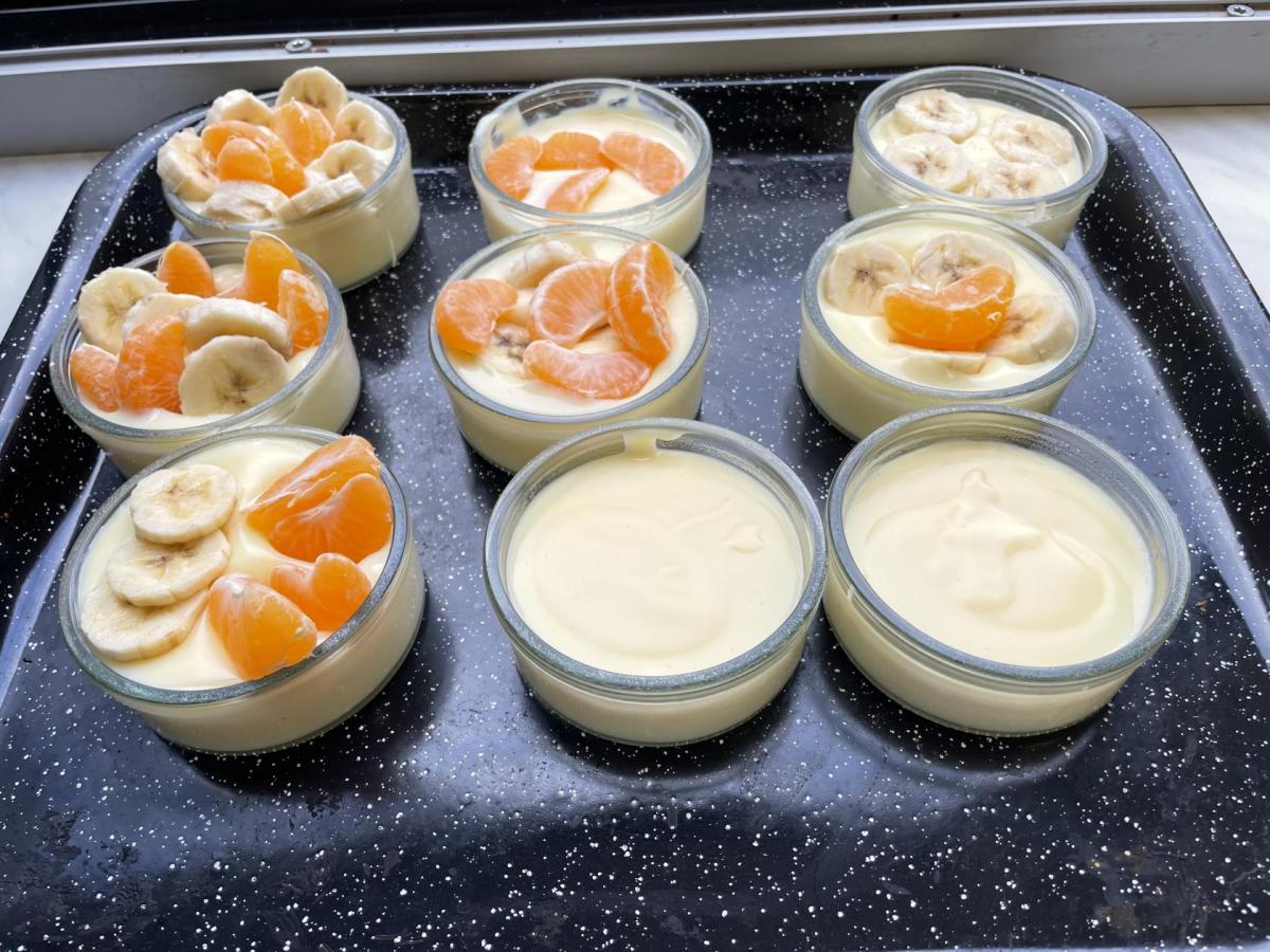 Dnes jsme v kuchyňce připravovali vanilkový i čokoládový puding. Na přípravu jsme použili hrnec - zvaný mlékovar. Ten hrnec je báječnou pomůckou, když se vaří mléko, neb v této nádobě se vám mléko nepřipálí. Hrnec je dvoustěnný, což znamená, že mezi stěny hrnce se hubičkou naleje voda, hubička se uzavře píšťalkou, do nádoby se naleje mléko a hrnec dáte na plotýnku. Když začne mléko vařit, voda mezi stěnami vytvoří páru, která stoupá přes uzávěr tzv. píšťalku. Píšťalka vydá pískavý signál, což znamená, že mléko vaří......Podle návodu na sáčku zvládne uvařit puding každý. Nalít puding do mističek, dozdobit ovocem, nechat vychladit, dozdobit šlehačkou a dílo je hotové. Byla to dobrá svačina pro všechny.