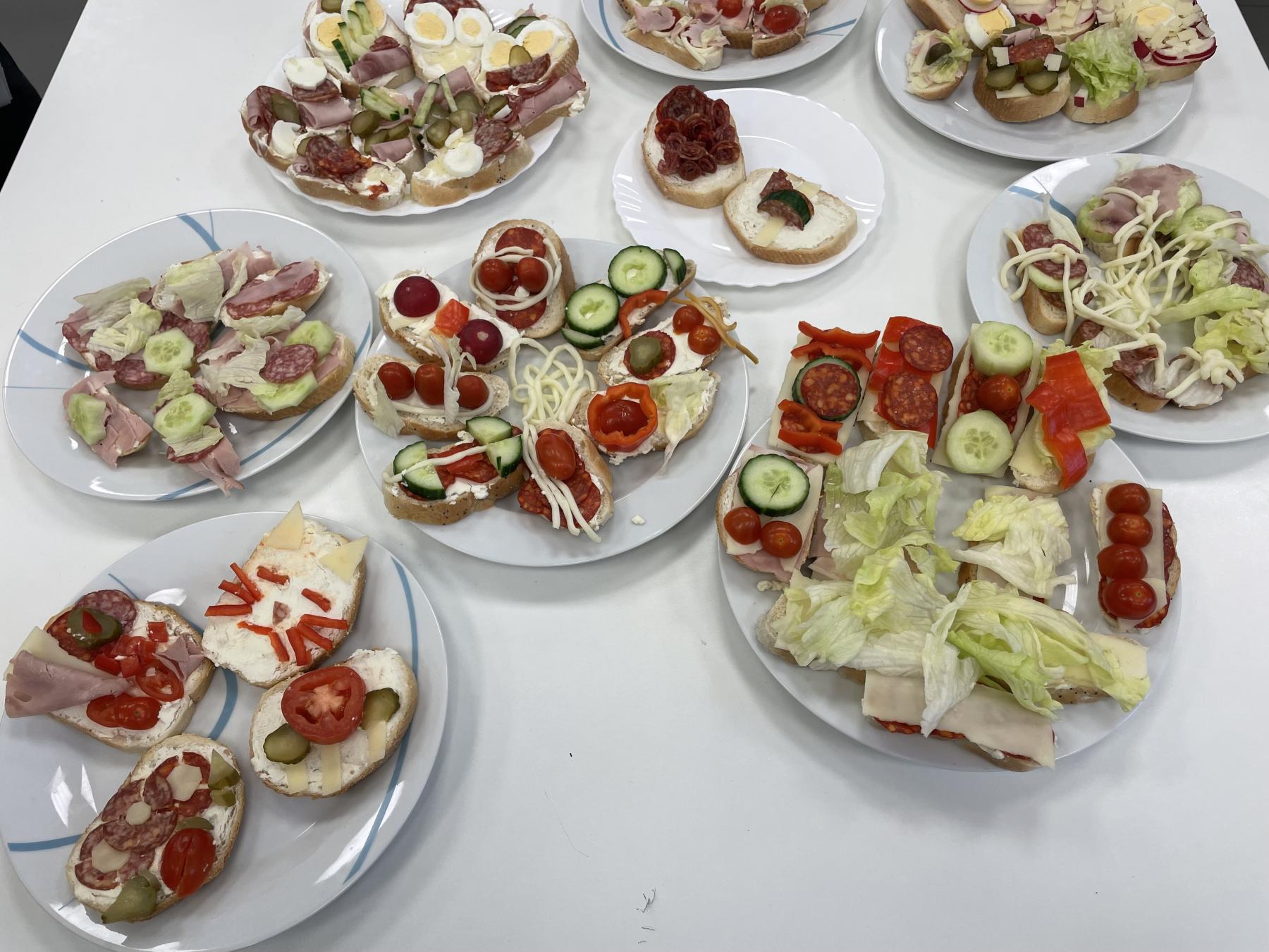 S chlebíčky nic nezkazíte, tak hurá a jdeme na to. Jak úhledně naskládat suroviny na veku, aby již při pohledu na talíř plný chlebíčků se sbíhaly sliny? Pojďte se podívat, jak to vymyslely děti. Každý dal do toho svého tvoření chlebíčků svoji myšlenku, všichni se snažili, aby ty jejich chlebíčky zaujaly na první pohled.