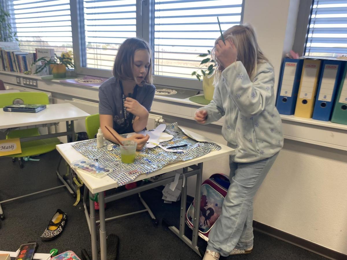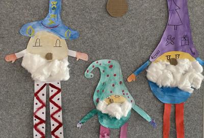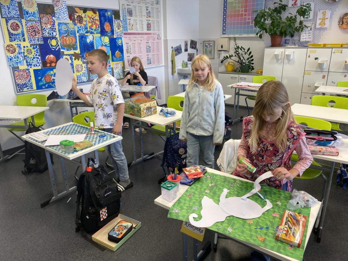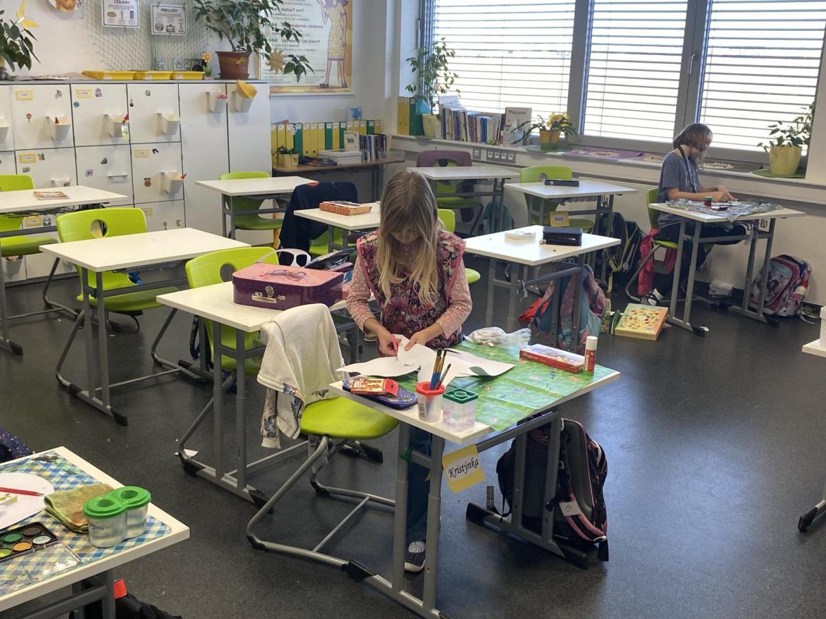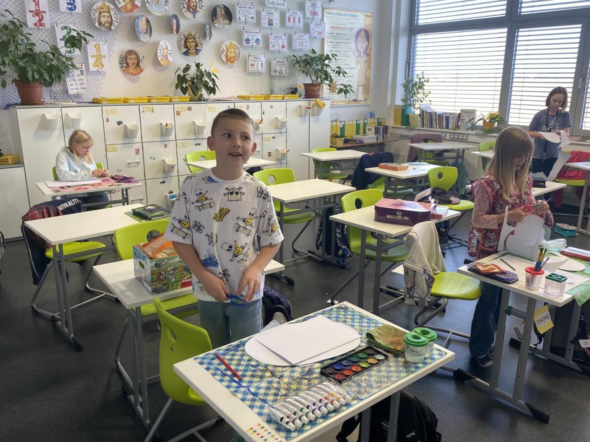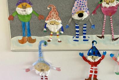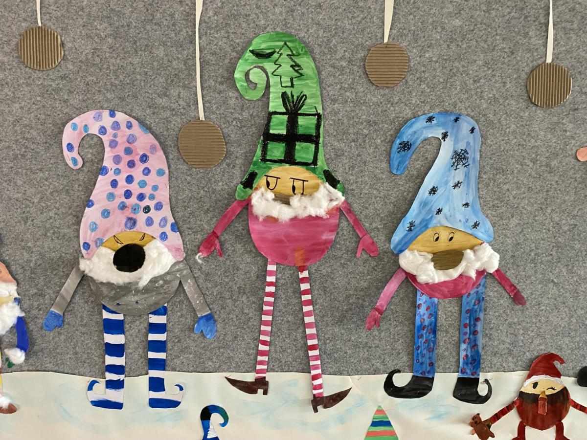 Výtvarku jsme tento čtvrtek pojali hodně předvánočně. Sotva jsme zamávali sv. Martinovi a jeho doprovodu, začali jsme přemýšlet, jak vyzdobit třídu a chodbu, abychom se rozloučili s podzimem a pomalu se začali chystat na to nejkrásnější období - na Vánoce. Výtvarnou výchovu máme letos jen jednou za čtrnáct dní, takže času moc nezbývá. Paní učitelka tedy navrhla, že bychom si mohli namalovat a vyrobit malého skřítka, který zamává podzimu a později přivítá advent. A tak jsme se do toho dali! Připravili jsme si čtvrtky, barvy, nůžky, vatu...... a další potřebný materiál. Vybrali si ten správný prostor a začali kreslit, stříhat a barvit skřítkovo tělíčko. Po dvou hodinách se to naší chodbou začalo mihotat různými podižvíky. To se naši skřítkové čile hlásili k světu! Zuzka navrhla, že bychom jim mohli udělat z role papíru sněhovou cestičku, aby se jim na naší nástěnce líbilo :). Paní učitelka ji za nápad pochválila a dala se do jeho realizace. A když jsme přišli v pátek ráno do školy, už se na nás skřítci z nástěnky hezky usmívali.