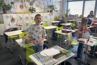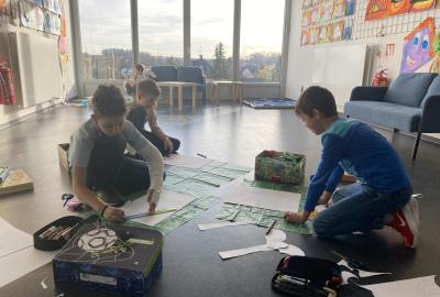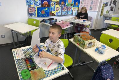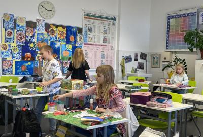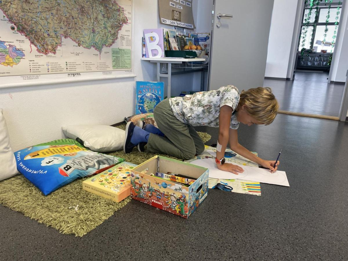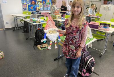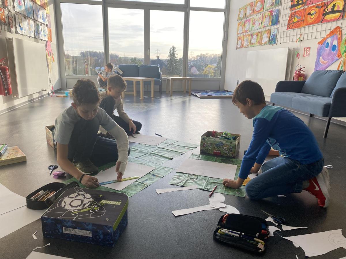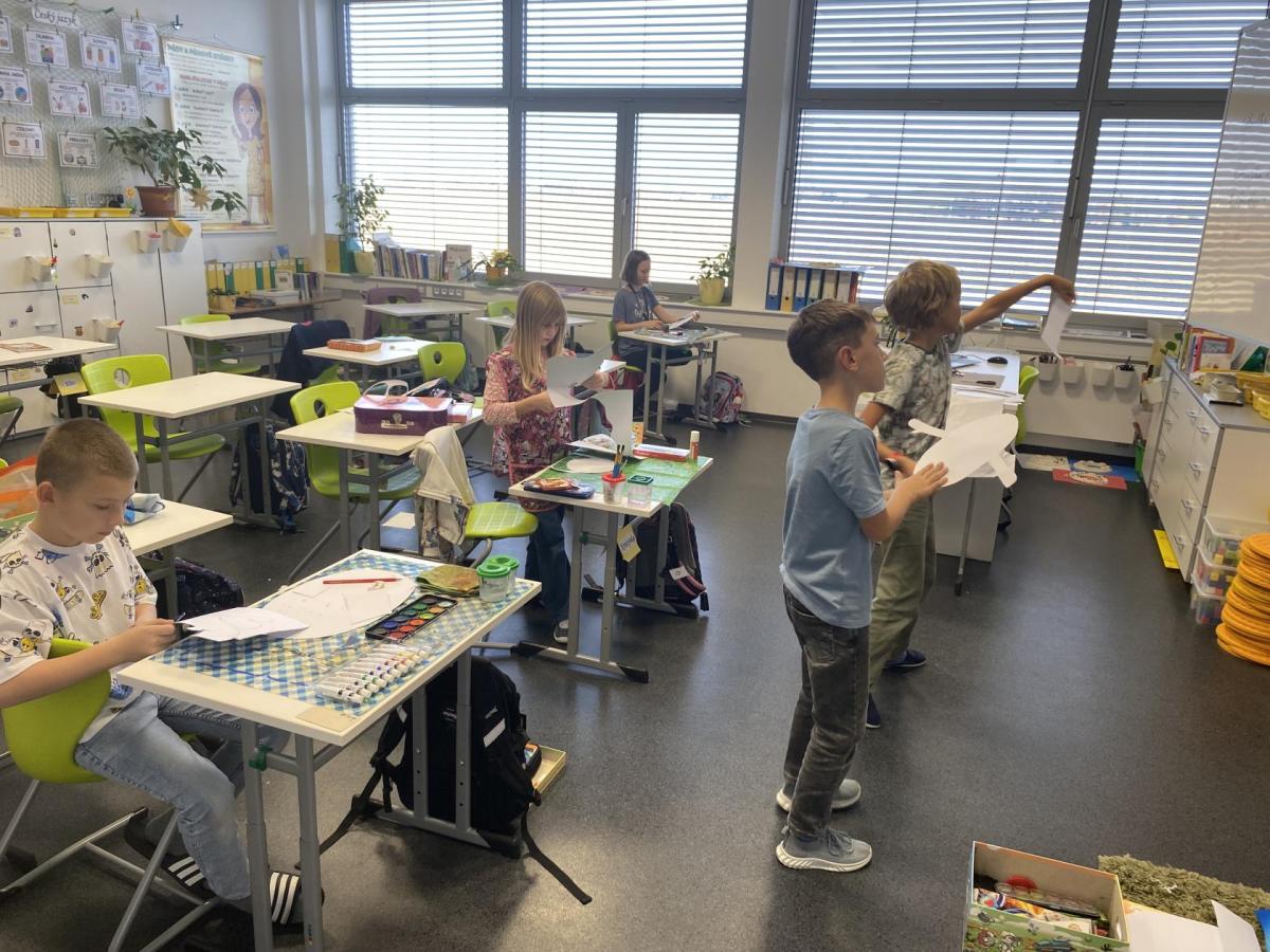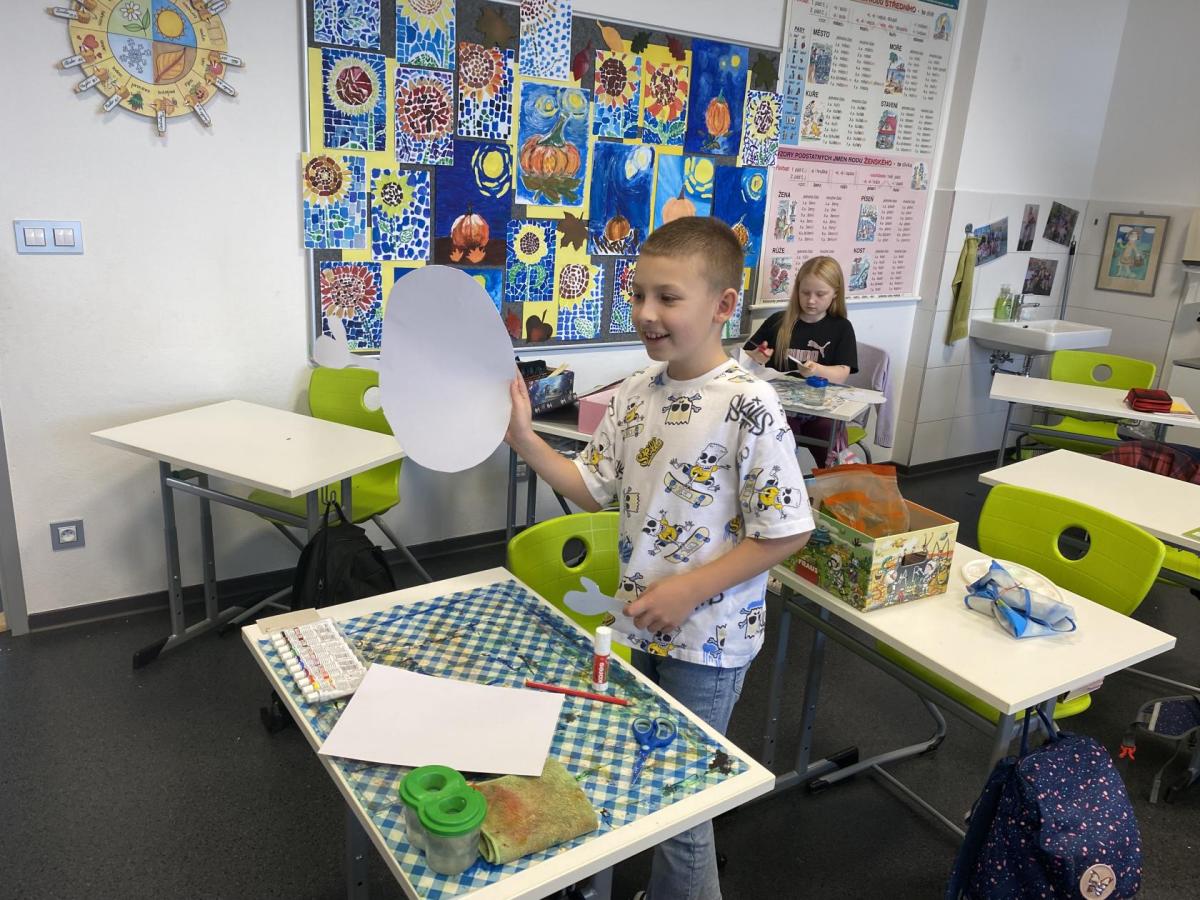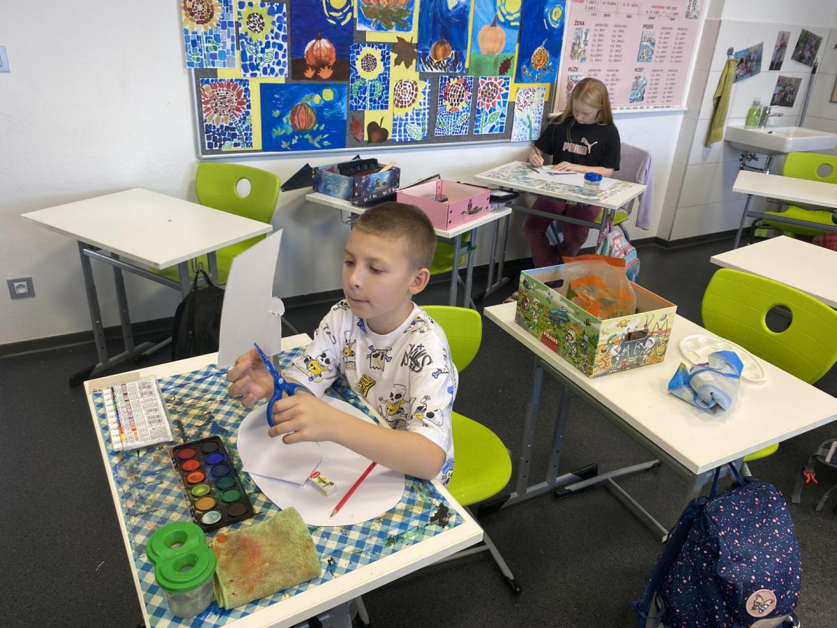 Výtvarku jsme tento čtvrtek pojali hodně předvánočně. Sotva jsme zamávali sv. Martinovi a jeho doprovodu, začali jsme přemýšlet, jak vyzdobit třídu a chodbu, abychom se rozloučili s podzimem a pomalu se začali chystat na to nejkrásnější období - na Vánoce. Výtvarnou výchovu máme letos jen jednou za čtrnáct dní, takže času moc nezbývá. Paní učitelka tedy navrhla, že bychom si mohli namalovat a vyrobit malého skřítka, který zamává podzimu a později přivítá advent. A tak jsme se do toho dali! Připravili jsme si čtvrtky, barvy, nůžky, vatu...... a další potřebný materiál. Vybrali si ten správný prostor a začali kreslit, stříhat a barvit skřítkovo tělíčko. Po dvou hodinách se to naší chodbou začalo mihotat různými podižvíky. To se naši skřítkové čile hlásili k světu! Zuzka navrhla, že bychom jim mohli udělat z role papíru sněhovou cestičku, aby se jim na naší nástěnce líbilo :). Paní učitelka ji za nápad pochválila a dala se do jeho realizace. A když jsme přišli v pátek ráno do školy, už se na nás skřítci z nástěnky hezky usmívali.