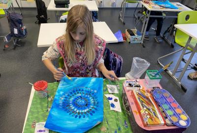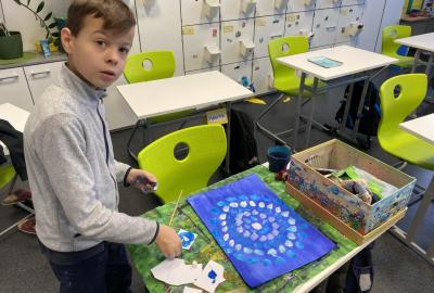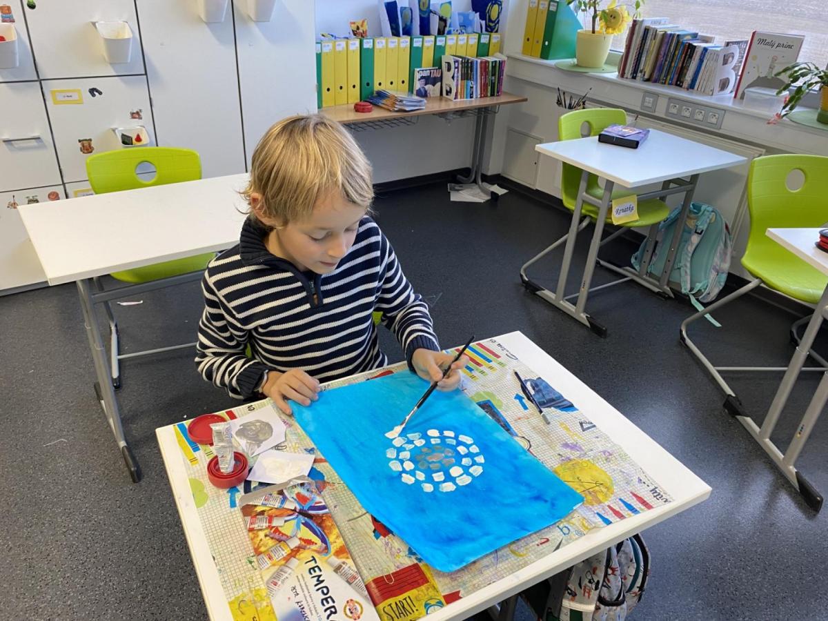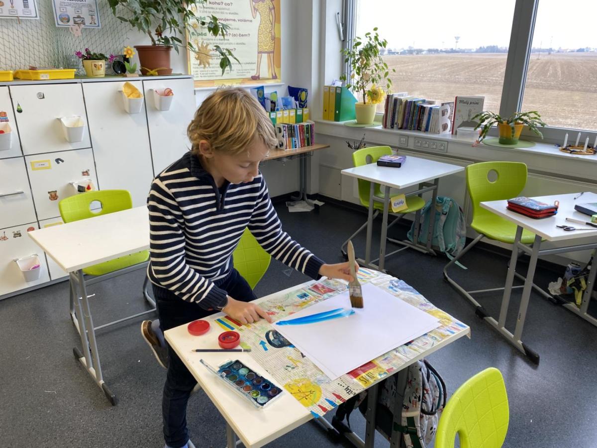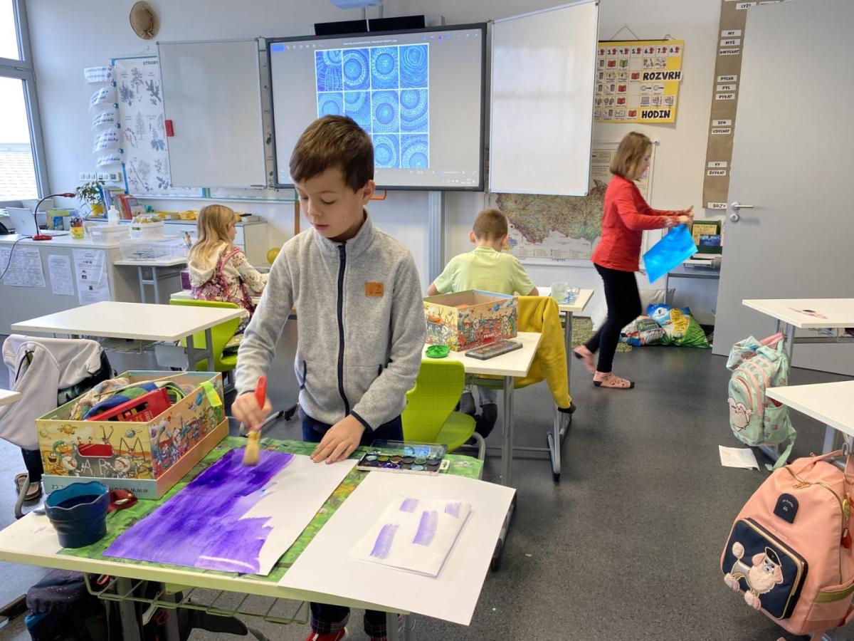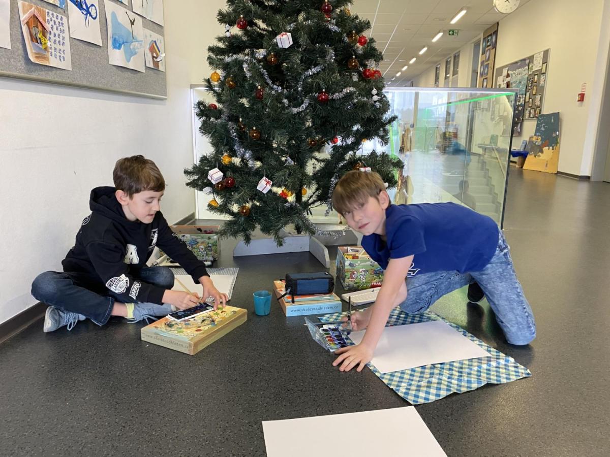 Během výtvarné výchovy se nám podařilo přivolat tu pravou zimu - sníh, led a mráz.