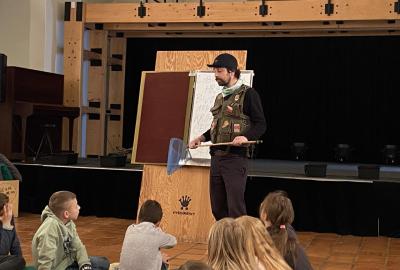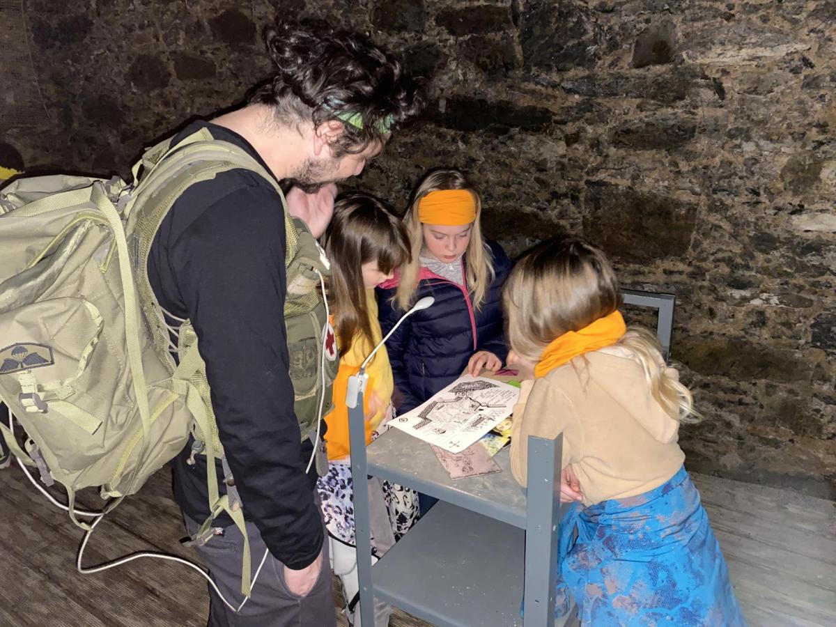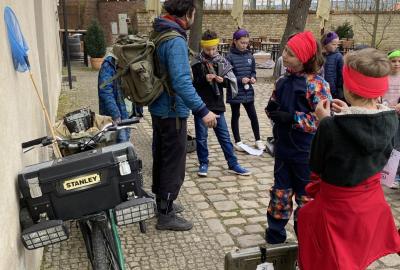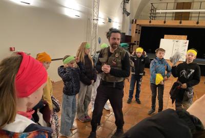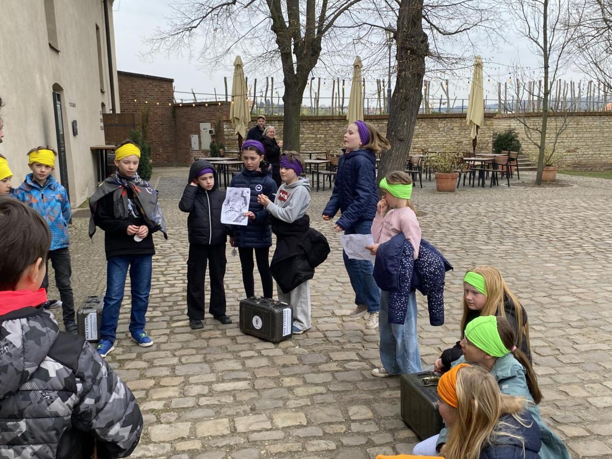 Zajímavý program s názvem "Mise Vyšehrad" jsme zahájili v prostorách starého purkrabství dávného Královského okrsku. Průvodce našeho dopoledne, Vítek Maštalíř, za námi přijel na koloběžce, obtěžkán různými nezbytnými rekvizitami a bez dlouhých okolků přešel k věci.....