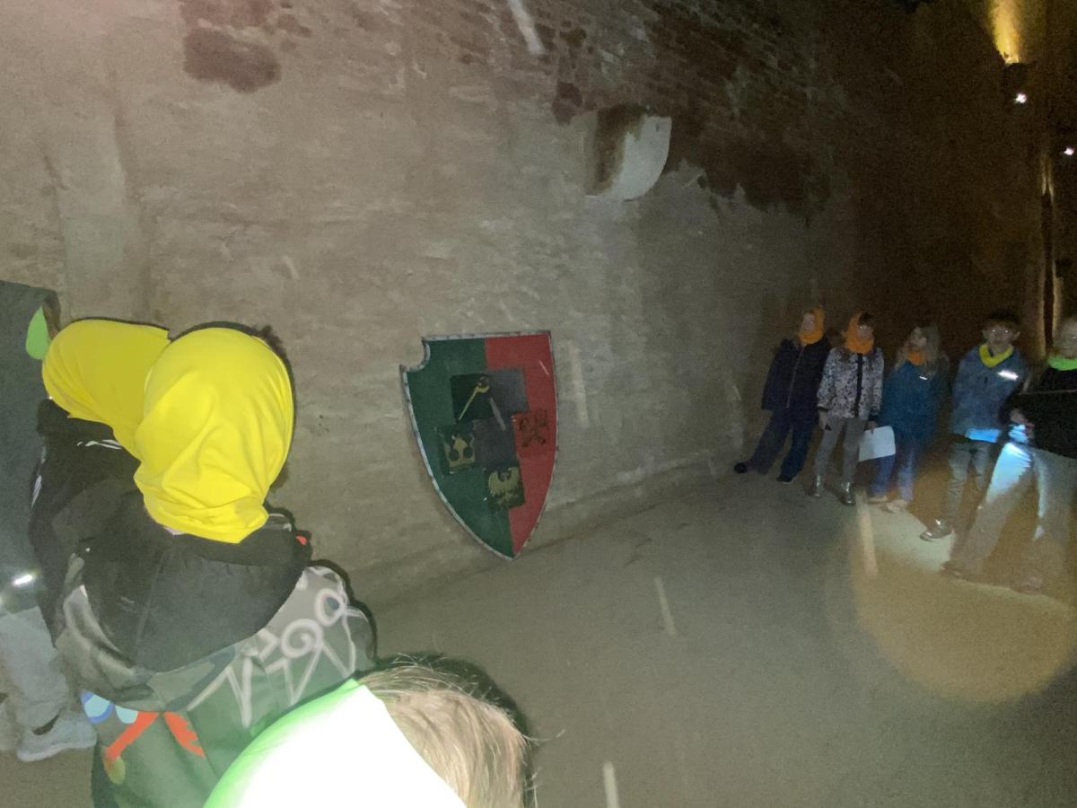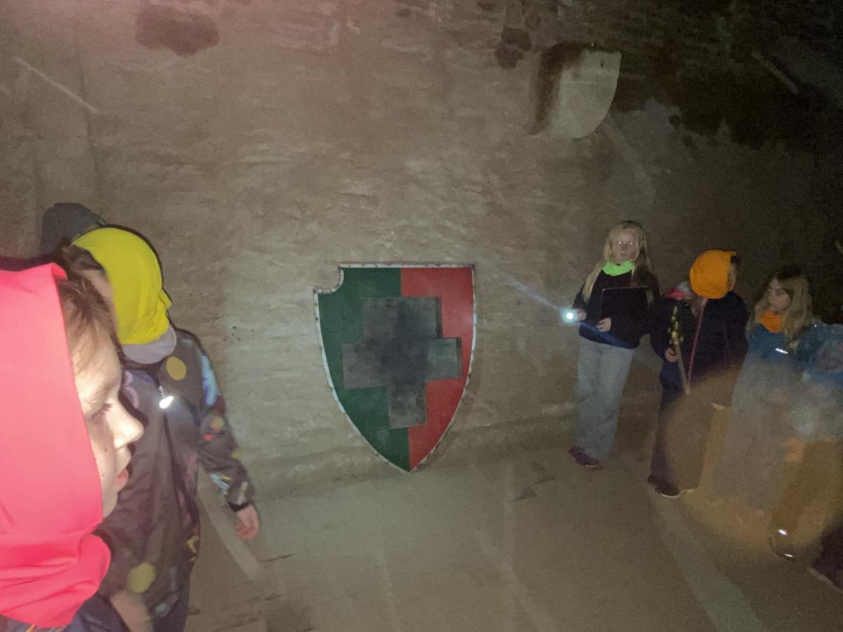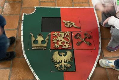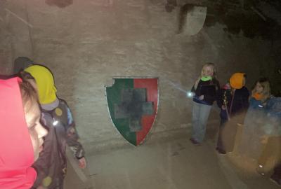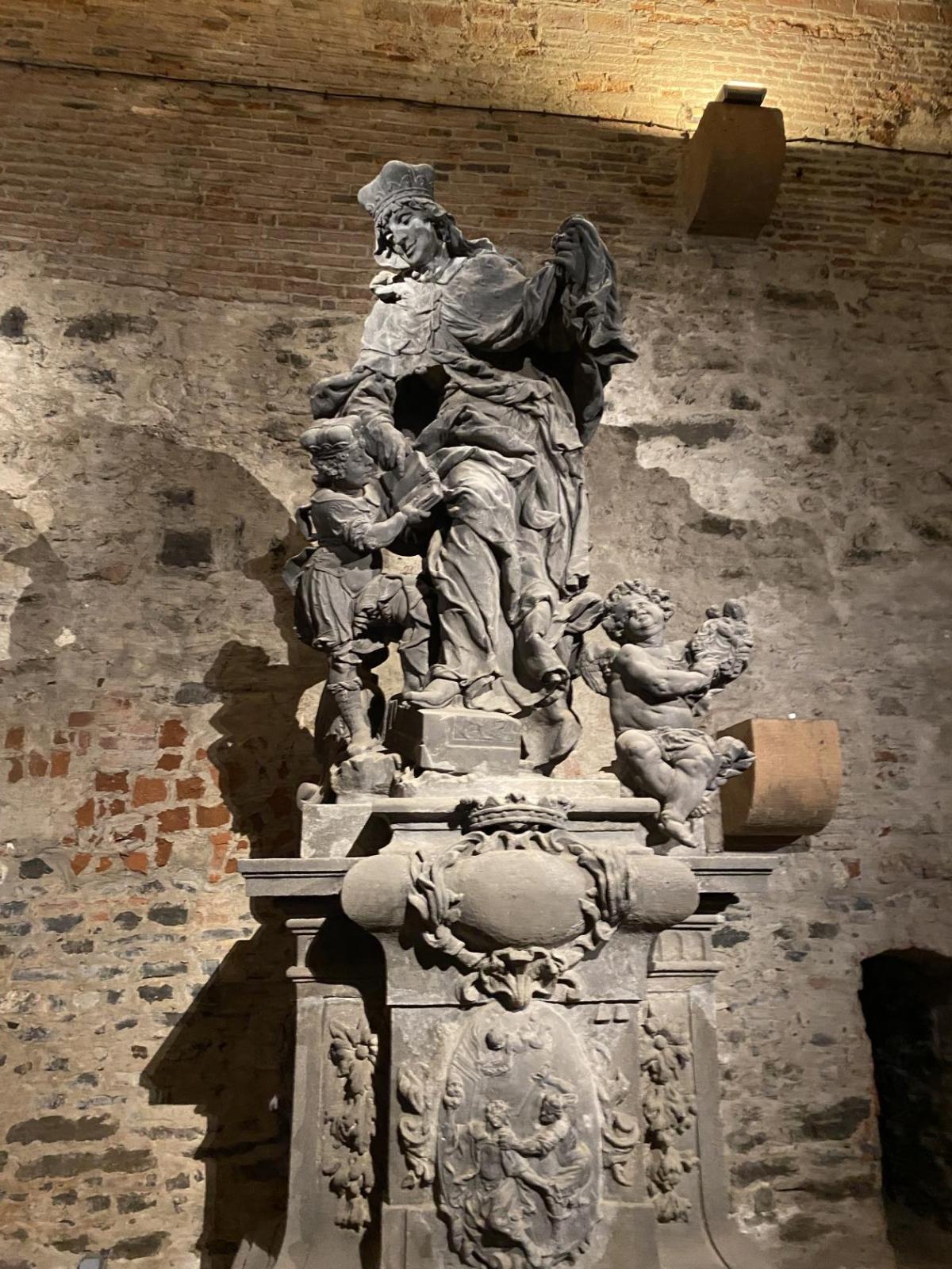 Na konci celého programu jsme ze všech postupně sesbíraných indícií - znaků sestavili erb. Ztemnělá Gorlice postupně vystupovala ze tmy, jak jsme přikládali do erbu jednotlivé dílky. Teprve s posledním kouskem jsme se mohli rozhlédnout a obdivovat originály soch z Karlova mostu, které vznikly kdysi dávno v dílně Matyáše Brauna.