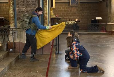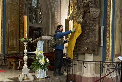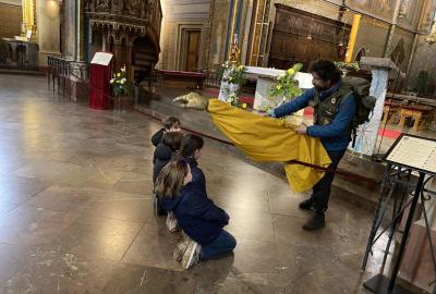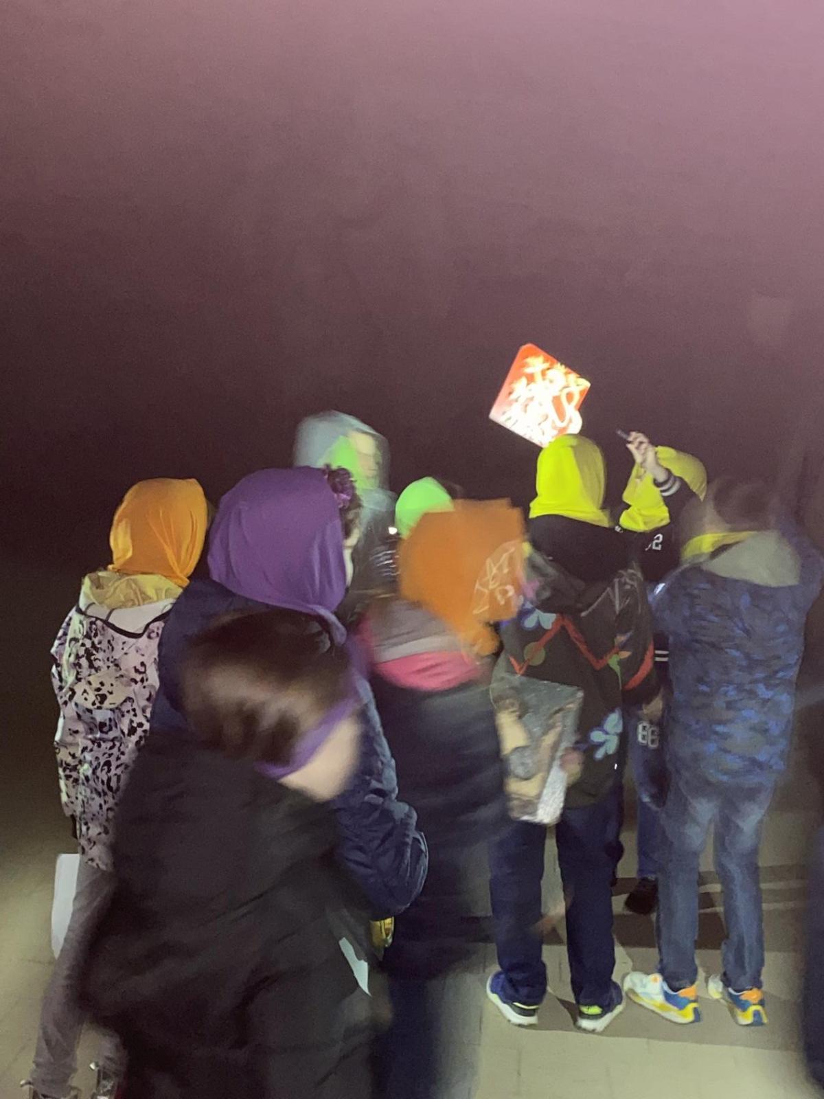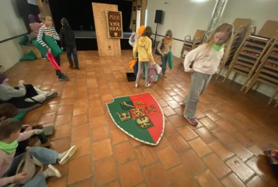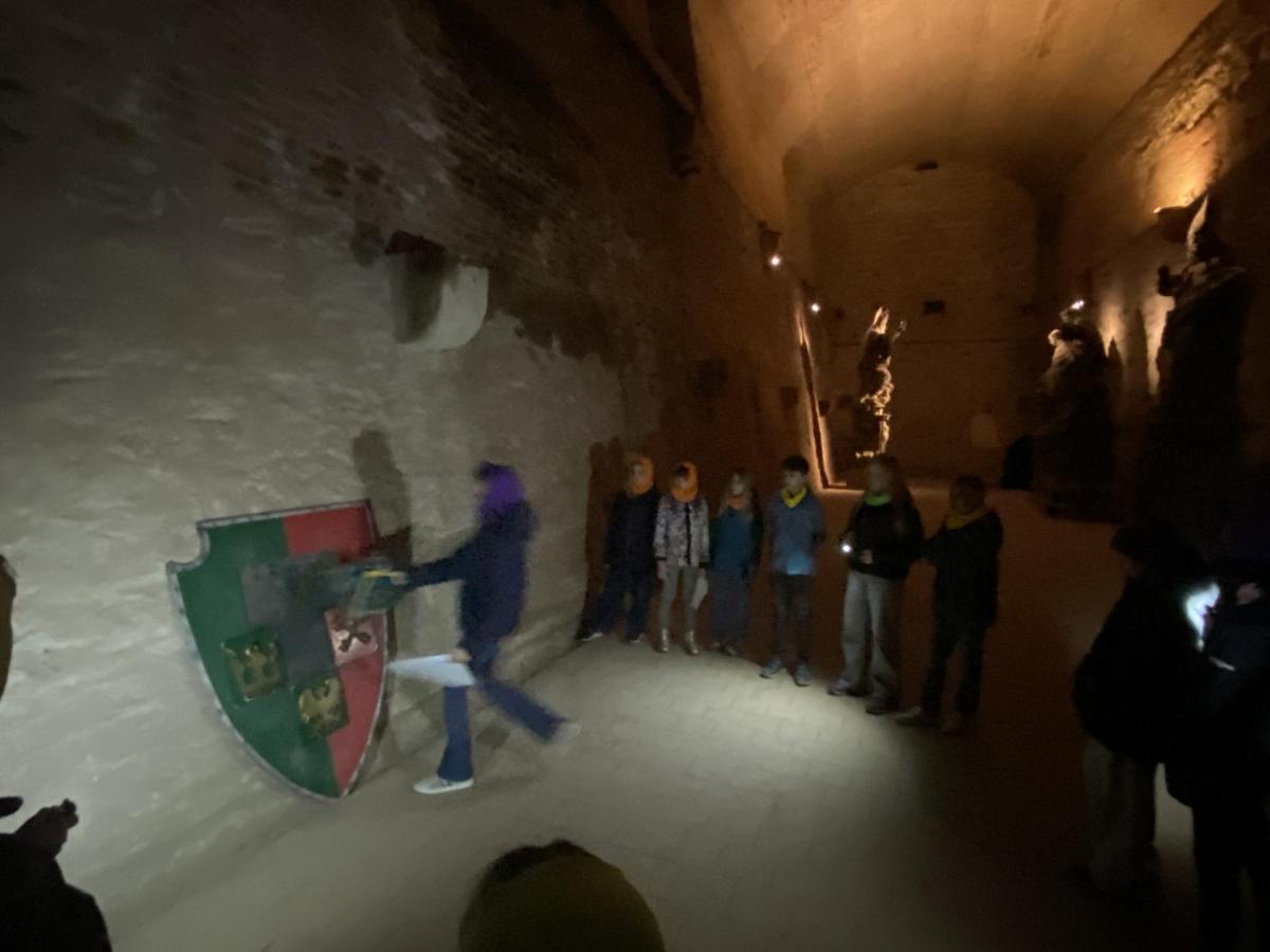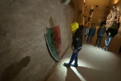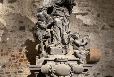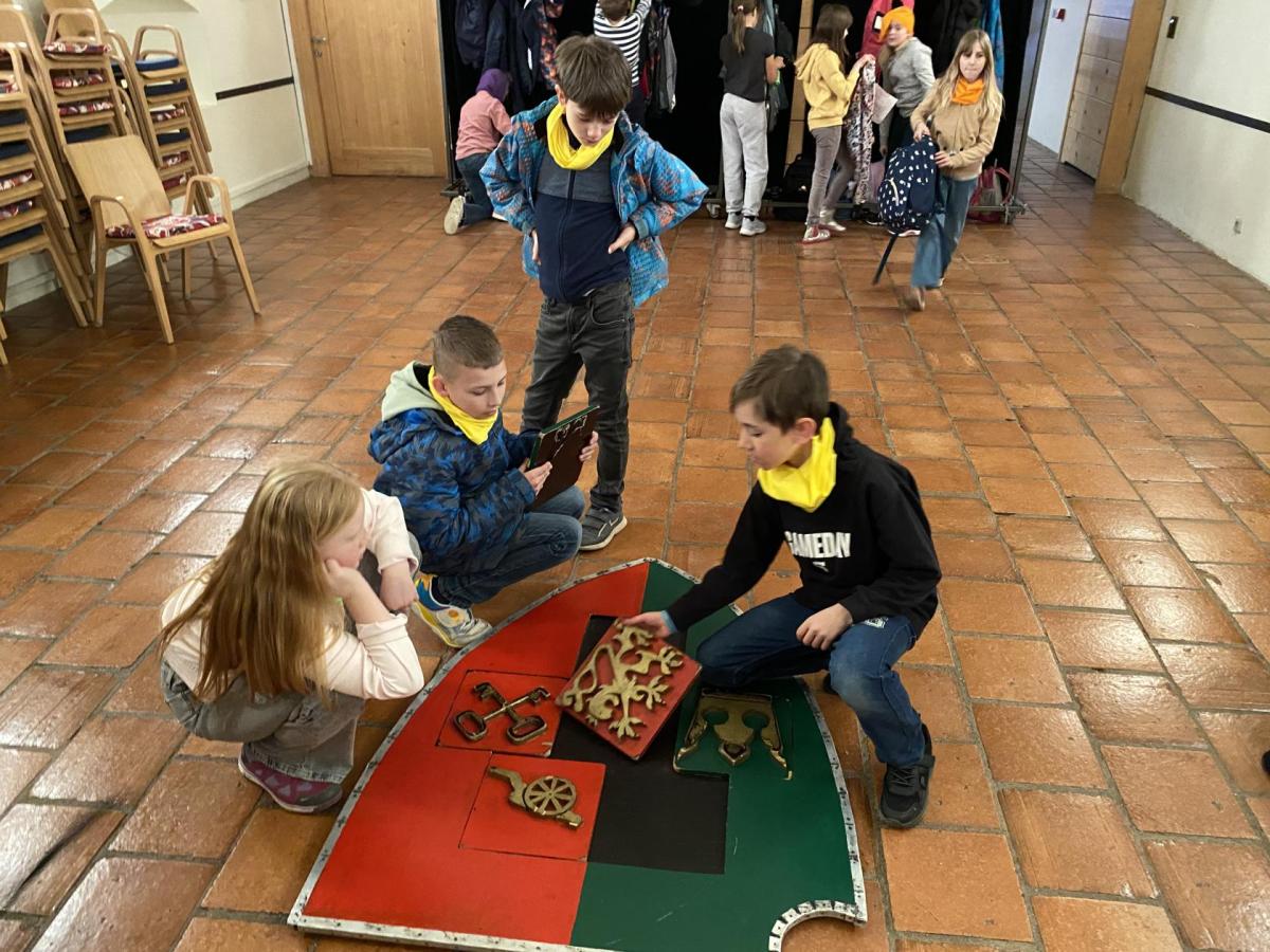 Na konci celého programu jsme ze všech postupně sesbíraných indícií - znaků sestavili erb. Ztemnělá Gorlice postupně vystupovala ze tmy, jak jsme přikládali do erbu jednotlivé dílky. Teprve s posledním kouskem jsme se mohli rozhlédnout a obdivovat originály soch z Karlova mostu, které vznikly kdysi dávno v dílně Matyáše Brauna.