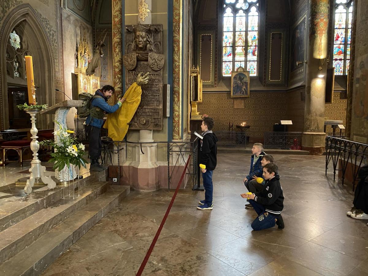 Během programu jsme také navštívili baziliku sv. Petra a Pavla, která nás zaujala svou historií a výzdobou. Sám král Vratislav I. si na nás udělal čas, aby si vyslechl to, co bychom v dnešní době přáli naší krásné zemi. Uznale při tom pokyvoval svou dlouhatánskou rukou a uznale brumlal.